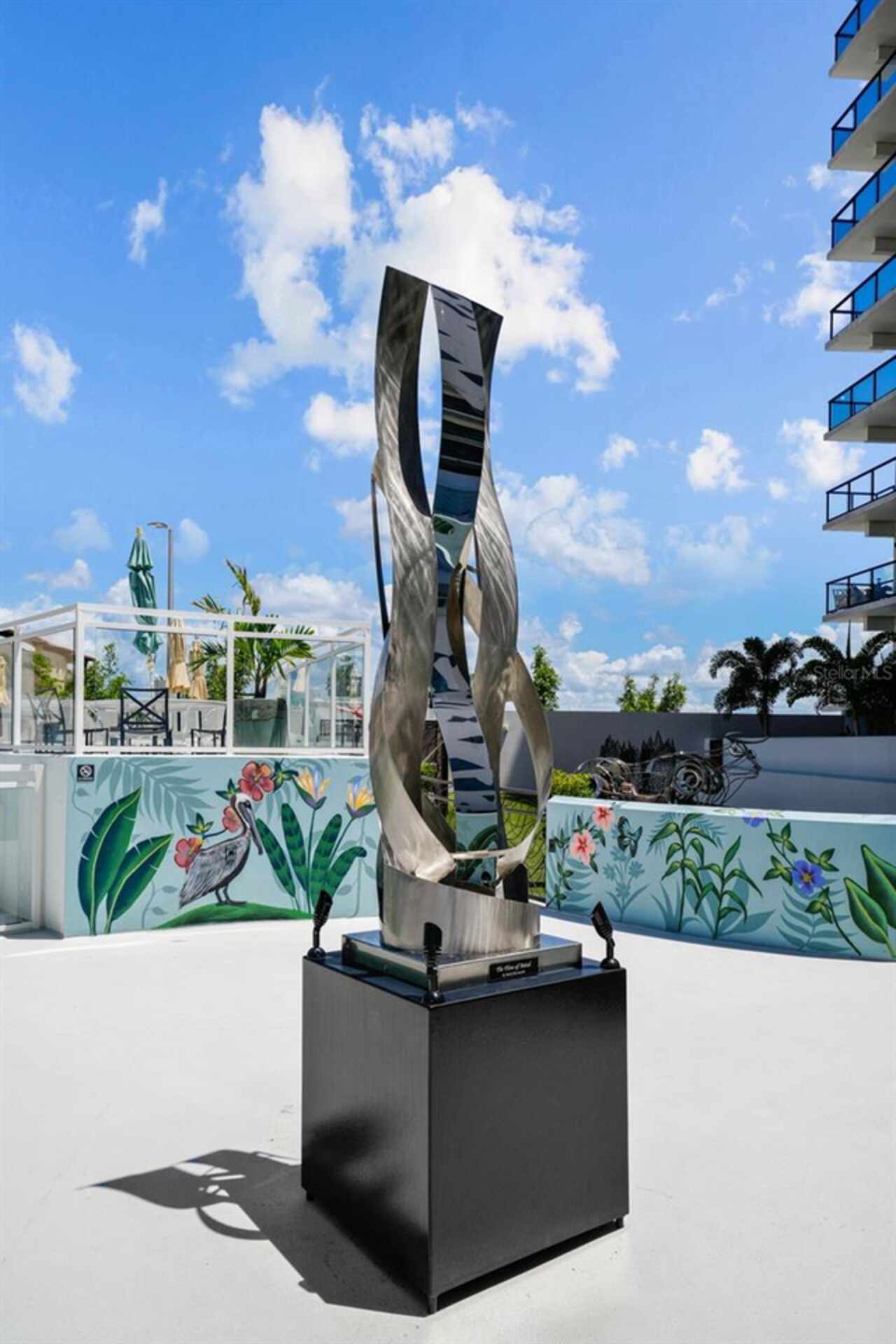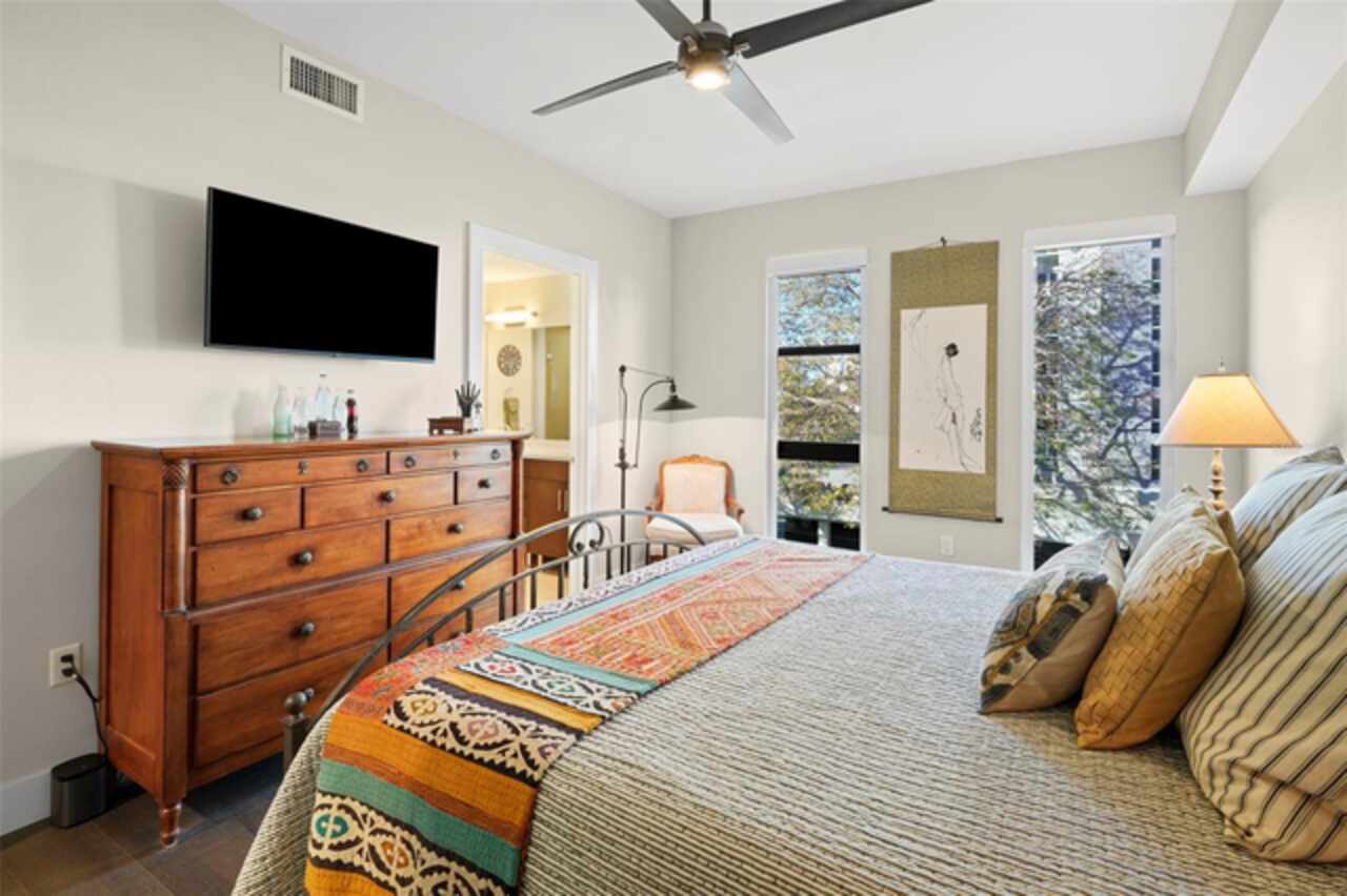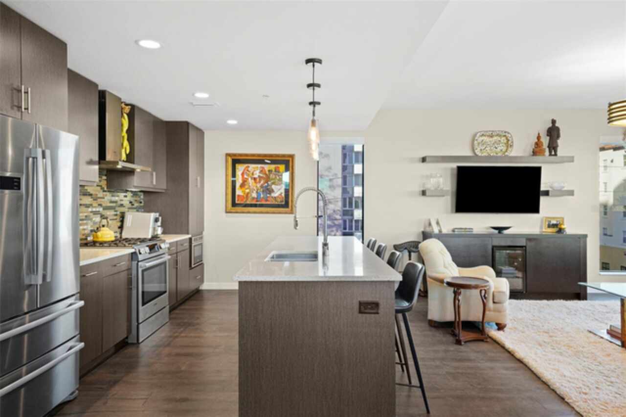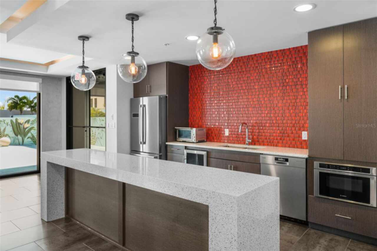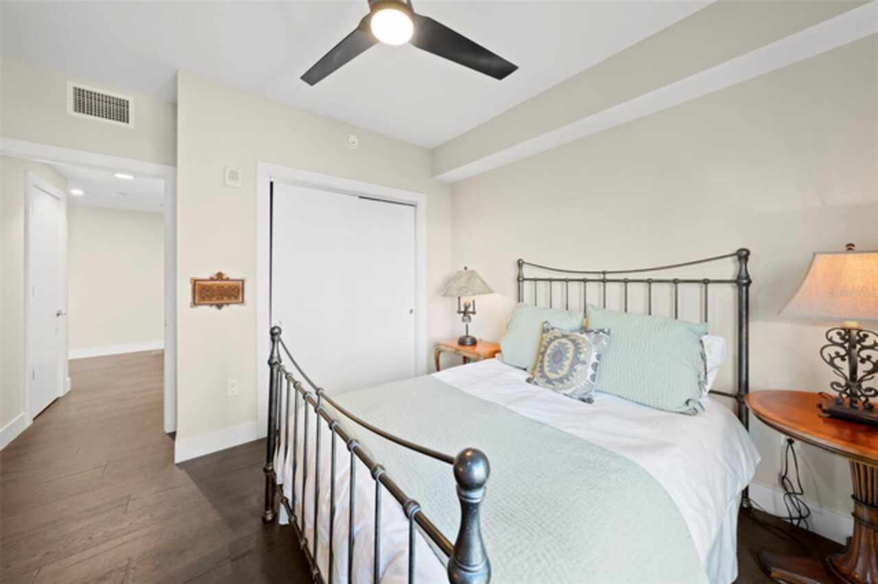 *** One of a Kind Condo *** This home offers a very special opportunity, the ease of metropolitan condo living with the feel of a gorgeous backyard. Truly one of a kind at the Salvador and perhaps in all of St Pete, this home offers a 1000+ SF terrace covered in artificial turf that's made with heat-reflective technology, providing a cool, maintenance free area for dining and relaxing outdoors. The terrace overlooks the 3rd floor amenities deck, downtown, the Dali museum, and Tampa Bay. An open floor plan with the Kitchen, Dining, and Living rooms all overlooking the terrace through floor to ceiling windows provide a most elegant space to entertain, in and out of doors. This condo sets out from the rest of the building and therefore has no adjacent units next to it, providing the ultimate in privacy. Engineered hardwood floors flow throughout the 1555sf of this home. A large, open, contemporary kitchen with Quartz countertops, Bosch appliances, Gas Range, and Wine Cooler has abundant natural light. The living room features a built-in entertainment center with an additional beverage cooler and motorized blinds. The primary bedroom with an oversized walk-in closet, is en-suite with a deep soak tub, dual sinks, and large shower. The guest bath has a tub/shower with shower door and both bedrooms have tall windows with blackout shades.The home has two parking spaces and a climate controlled storage unit. The Salvador, a LEEDS certified green 74 unit building has great amenities in a pool, spa, state-of-the-art fitness center, social room, grilling station, gated dog park with dog washing station, sculpture garden and outdoor fire pit area. Concierge and on-site management are convenient features for the owners. All located within easy access to all that downtown living offers and yet, located in a quiet part of town when you’re ready to wind down. Call for your private tour of this exquisite and unique home.
