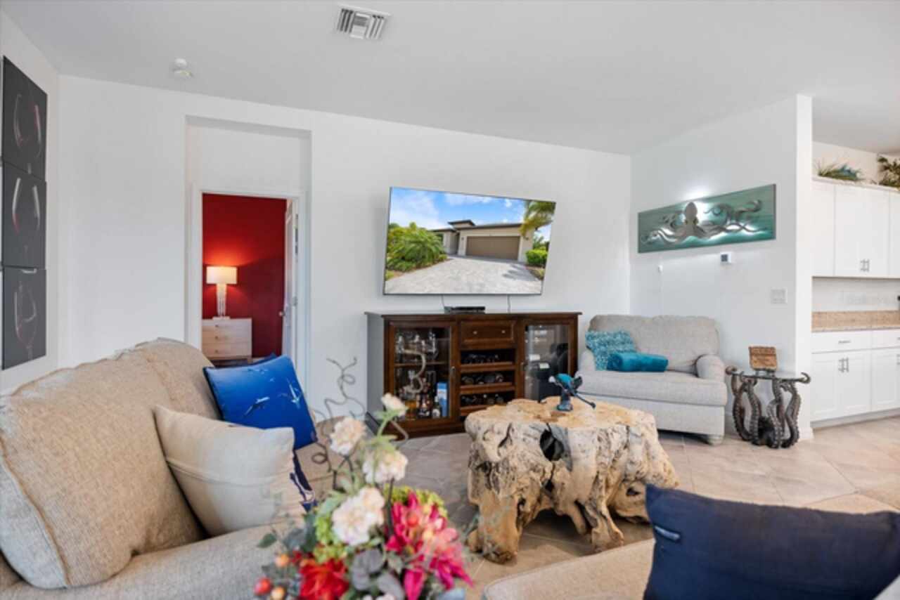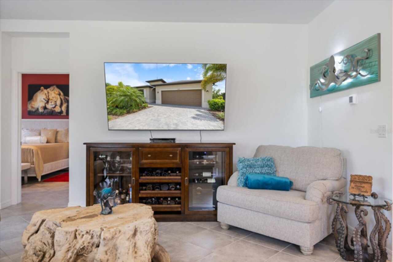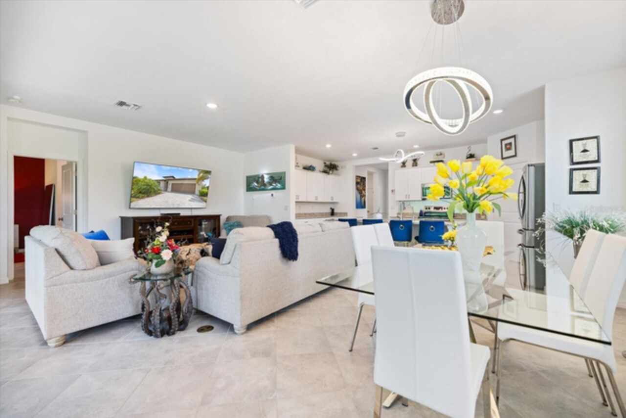 Don’t miss this one! Features include an Above ground heated hot tub perfect for cozy nights, WRAP AROUND LANAI, DOG RUN, HURRICANE SHUTTERS, over 2000 square ft, versatile den or office with French doors, custom electric sun shades, upgraded modern finishes throughout, EXPANSIVE KITCHEN ISLAND, REVERSE OSMOSIS SYSTEM, and NO FLOOD INSURANCE REQUIRED! This is your next home that you don’t want to miss. Professionally designed and MOVE IN READY, it’s a 3 bedroom, +Den/Office, 3 full bath with open floor plan, an HOA that includes your lawn maintenance and a COMMUNITY POOL. The open-concept layout includes a spacious kitchen with granite countertops, tall cabinets, walk-in pantry, new upgraded refrigerator, and large island with lots of seating. The living and dining areas open to a screened lanai with a 6-person spa, dog run, and lush privacy landscaping. The primary suite offers his-and-hers walk in closets and a spa-style bath with soaking tub and walk-in shower. Located in the community of West Port of Port Charlotte offering resort-style amenities—pool, playground, trails, and more—all minutes from beaches, golf, and spring training stadiums.