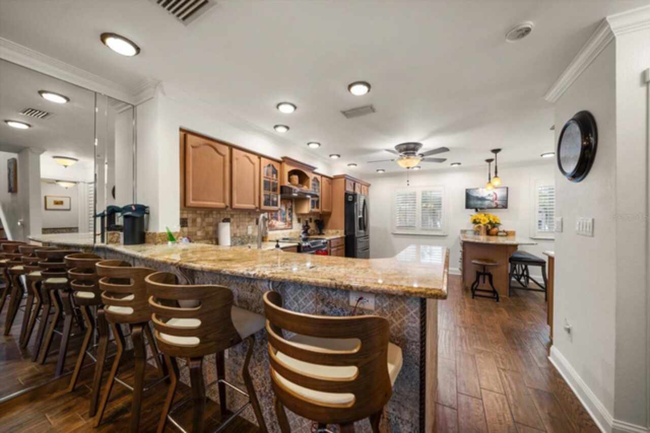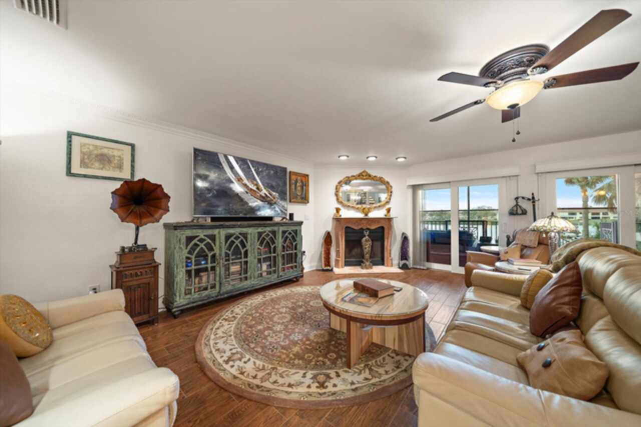LOCATION, LOCATION, LOCATION! Boaters Paradise large deeded private dock and 20, 000 lb boat lift on the Inter Coastal Waterway. The Highly Sought After Community of Port Royale of Indian Shores, a luxurious 3-story Townhome, 3-bedrooms, 3.5-bathrooms, 2-car garage, approximately 2400 sq ft htd, elevator, with water views from every floor off of your own private fully screened, added wind and water shades to assist in repelling rain and wind that are lowered and raised by remote control, tiled balconies. Also on 3rd floor is the Laundry Room with built-in fridge and According to the Sellers all features are: Custom aluminum railings and spiral staircase to all floors on exterior along with private elevator. A bonus/media room that may be used as a 4th bedroom with full bathroom on ground floor. Entire home remodeled, new impact rated windows and doors, new flooring, wood cabinetry, stone counters, custom moldings, upgraded designer lighting with dimmers on all fixtures. New water heater and water softner, 17-SEER A/C system with 10-year warranty, beautiful wood burning fireplace with imported Italian marble mantle and hearth. Your Primary Bedroom has vaulted ceilings and a private balcony, the bathroom is luxurious with its copper claw tub, copper sinks, huge travertine custom shower and shower floor is heated. A wonderfully appointed gourmet kitchen with new wood cabinets, granite, a cafe area, wine bar built-in wine cooler all black stainless steel appliances and eating areas within kitchen makes is a delight! Outdoor kitchen on main floor with custom cabinets, granite, mini fridge, sink and large electric grill. The townhouse has a new roof, seawall, new pool pumps and pavers, privacy fence around entire property, latest update it 6' water barriers at all first story entrance and exit points both front and rear of property giving the home additional safety from potential storm surge waters. All State mandated milestone inspection and reserve study passed and attached. The remote control shades on all floors and water barrier installed on 7/2025. NO RENTALS ALLOWED AND REQUIREMENTS FOR FLORIDA BUILDING SAFETY ACT HAVE BEEN PERFORMED AND AVAILABLE FOR REVIEW.