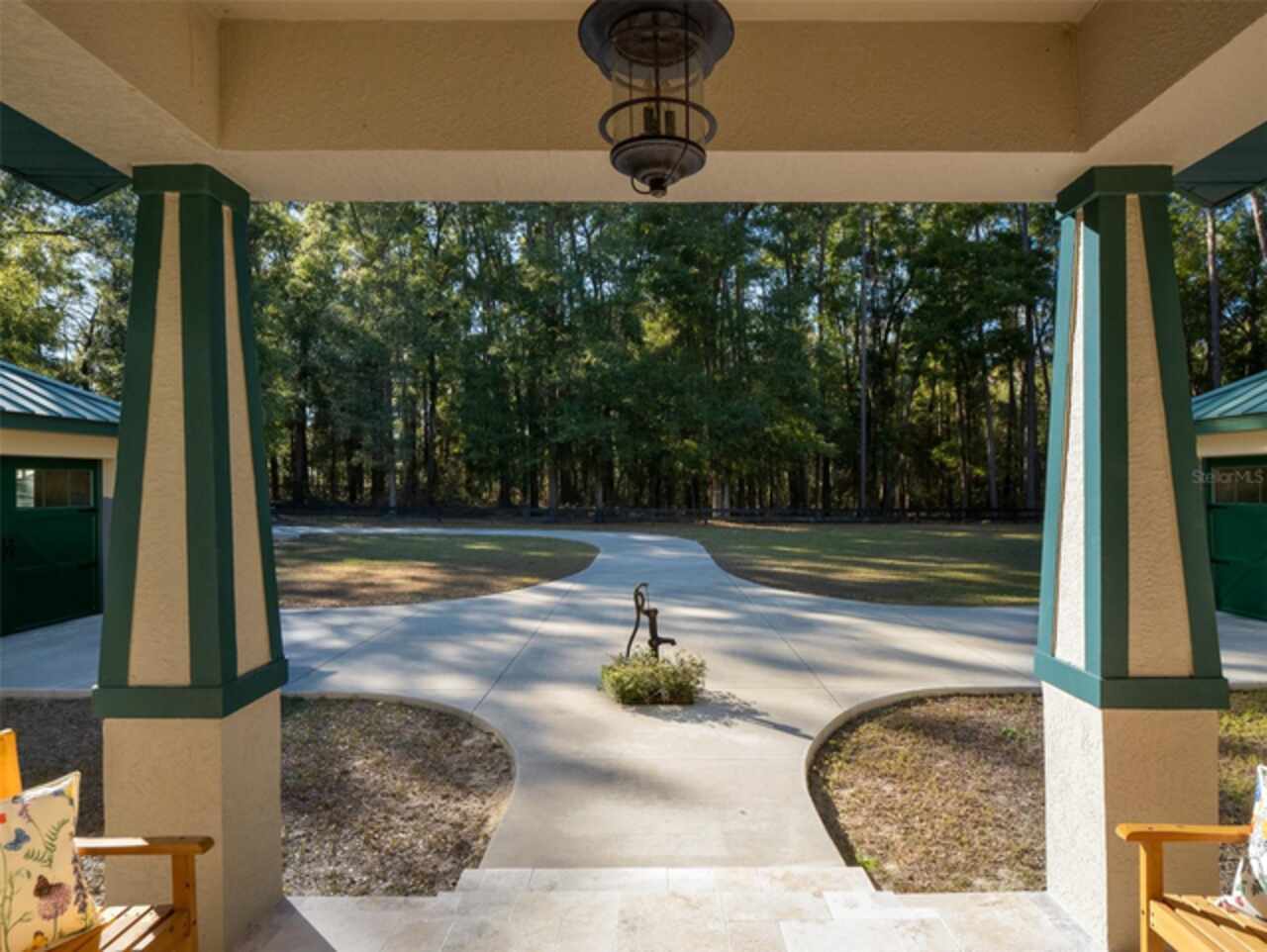 Only 6 minutes to the World Equestrian Center and 15 minutes to downtown Ocala this stunning property in Meadow Wood Farms features two meticulously maintained parcels totaling 8.9 acres: a 4.70-acre lot with a custom-built 2, 818 sq. ft. home and a 4.21-acre manicured pasture. The 3 bed, 2 bath block/stucco home was built with extra steel and concrete in the foundation. The house has a commercial grade metal roof with lighted cupola, 8' glass exterior doors and upgraded double pain windows. The interior of this beautiful home features exquisite Pennsylvania old grove hickory wide plank flooring and baseboards throughout, 8’ rustic knotty alder wood interior, French doors, window trim and a handcrafted coffer ceiling in the living room. Boasting top of the line Schrock cabinets, marble and granite countertops and Tiffany style lighting throughout. 10’ high ceilings with 16” double trays and a 12’ high ceiling in the living room. Two separate 336 sq ft garages with metal roofs, cupolas, attics for storage, carriage doors with glass panels and windows are positioned in front of the home. A top of the line Kinetico water system is located in one of the garages. A 900 sq. ft. workshop includes loft storage, heavy equipment space, and an air compressor . Two wells serve the home, gardens, workshop and pastures. Outdoors, enjoy an electric gate, decorative fencing, and riding-friendly grounds. Perfect for equestrians or those seeking a serene retreat. Schedule your tour today! Contact us for a detailed description of excavation/site work.