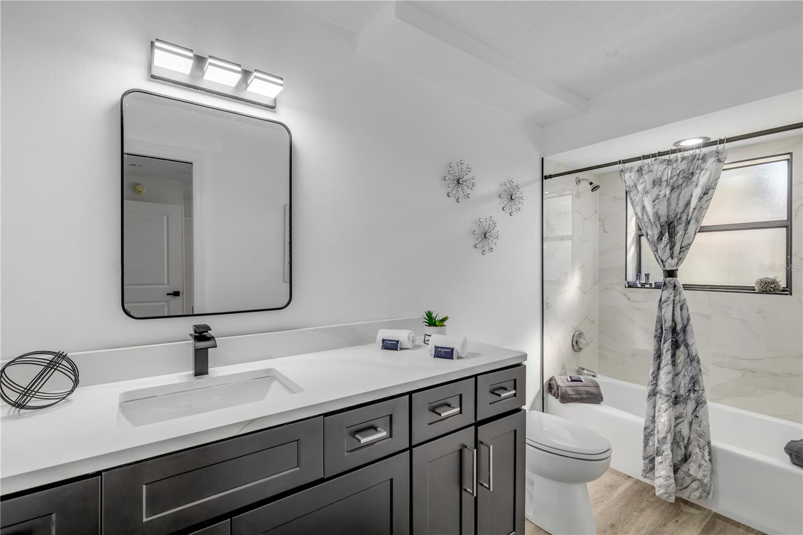 This fully updated tri-level POOL home offers an incredibly functional layout including 3 true bedroom suites, each with NEW full bathrooms, and sits in the desirable Oak Forest neighborhood of Ormond Beach. Set on an oversized, fully fenced corner lot with a peaceful park-like feel equipped with an RV plugin, this home has it all with space, comfort, and outdoor living. Finishing off the highlights are the major updates you want to see: a brand NEW HVAC (2024) and a newer 30-year architectural shingle roof installed in 2020. Inside, the upgrades stand out immediately. The kitchen features NEW high-end espresso wood cabinetry paired with NEW premium Calacatta quartz countertops, stainless steel appliances, and a casual breakfast nook overlooking the pool area. NEW luxury vinyl plank flooring flows throughout the home, complemented by the original hardwood parquet staircase leading to the upper-level suites. Most windows have been replaced with large bay-style double-pane windows, allowing abundant natural light in every room. NEW interior paint throughout gives a fresh, clean feel. The home also features NEW light fixtures, NEW baseboards, and NEW plumbing fixtures for an elevated, modern finish. The tri-level design balances togetherness and privacy. The main level features the upgraded kitchen, living and dining area, and a spacious laundry room. Two steps down leads to the lower level, which includes a full guest suite and a cozy family room centered around a classic brick wood-burning fireplace. Upstairs you will find two private bedroom suites, both with walk-in closets. Outdoor living shines here. The screened-in pool and jetted spa have a NEW painted pool deck and sit just off the main kitchen area, with a large 16 x 14 covered patio ideal for outdoor dining or a future summer kitchen. The oversized fenced yard provides excellent privacy, plenty of room to play, and ample space to park your boat and RV camper! The yard is also equipped with an irrigation sprinkler system. Additional highlights include an oversized 2-car garage with generous dual attic access on each end of the home to store all your holiday decorations! Oak Forest is known for its tree-lined streets, convenient access to Tomoka State Park, and proximity to some of the best school zones in Ormond. This home has been thoughtfully updated and well cared for, offering a comfortable lifestyle both indoors and outdoors.
