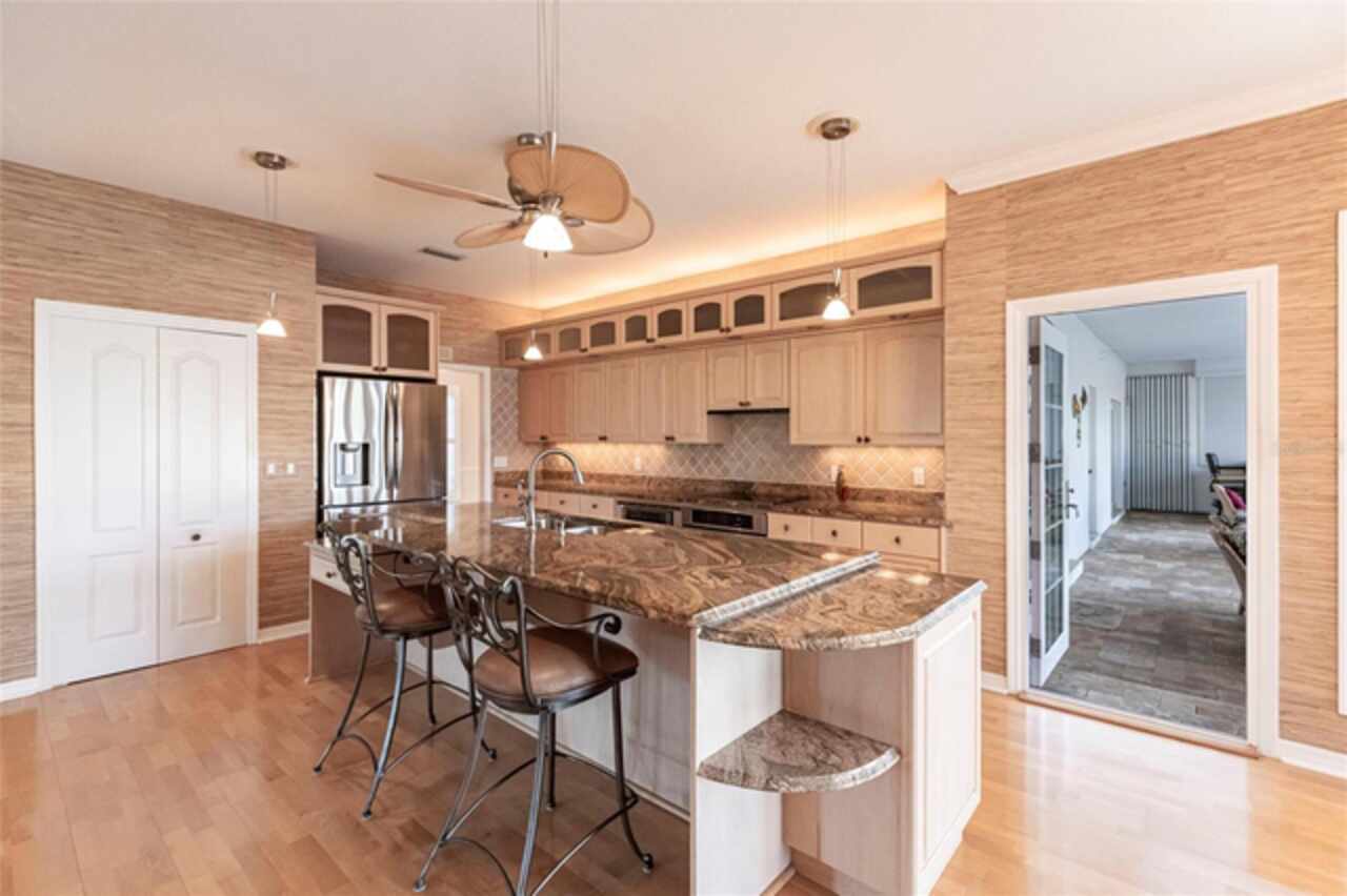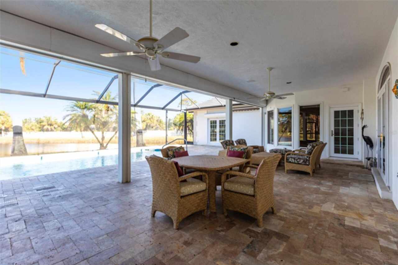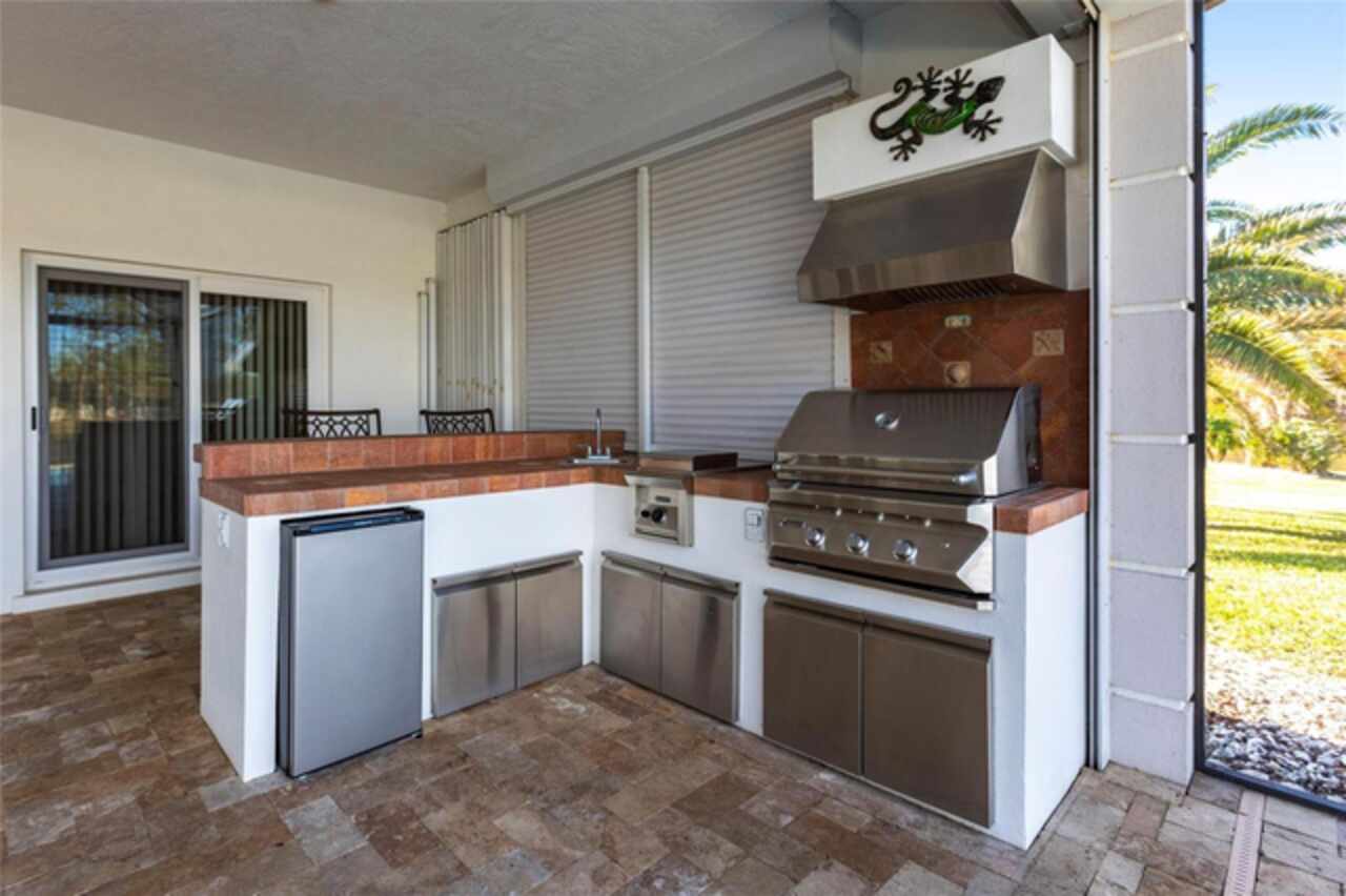 Luxury Living in Boca Royale. Situated on one of the most desirable streets in Boca Royale Golf & Country Club, this stunning custom-built home sits at the end of a quiet cul-de-sac, offering unmatched privacy and serene lake views. The elegant stucco home with a recently replaced (late 2024) flat tile roof delivers exceptional curb appeal. An oversized garage with built-in storage completes the exterior. Step inside to a formal living room where French doors open to reveal the covered lanai, stone pavers, sparkling pool, and tranquil lake beyond — a perfect blend of indoor-outdoor Florida living. The spacious formal dining room sets the stage for entertaining, while the kitchen is a chef’s delight with: Granite countertops Stainless steel appliances Electric cooktop, oven & warming drawer Center island with pendant lighting Walk-in pantry and abundant cabinetry The kitchen flows seamlessly into the breakfast nook and family room, featuring rich hardwood floors, built-in cabinetry, a wet bar, and an entertainment center. A bay window offers peaceful views of the lush backyard. On one side of the home, the primary suite offers a true retreat: French doors open to the lanai, while the ensuite bath includes double sinks, a vanity, walk-in shower, and an expansive custom closet. On the opposite side, two large guest bedrooms share a full bath with lanai access. The front bedroom includes built-ins for a home office, a walk-in closet, and a second closet. The rear bedroom has dual closets and direct access to the lanai. Enjoy true Florida living on the expansive covered lanai — with plenty of space for lounging, dining, and entertaining. An outdoor kitchen with a stainless grill and bar seating makes this space perfect for gatherings. The sparkling pool is surrounded with recently updated stone pavers. Additional features include: Whole-house generator Central vacuum system Spacious laundry room with utility sink and built-ins Oversized garage with ample storage The Boca Royale lifestyle includes a newly remodeled golf course, tennis & pickleball courts, a fitness center, resort-style pool, pet park, and a vibrant social scene. Enjoy casual dining at the Tiki Bar or elegant meals at the Clubhouse — all just minutes from Gulf beaches, shopping, and restaurants. Come home to paradise. Come home to Boca Royale.