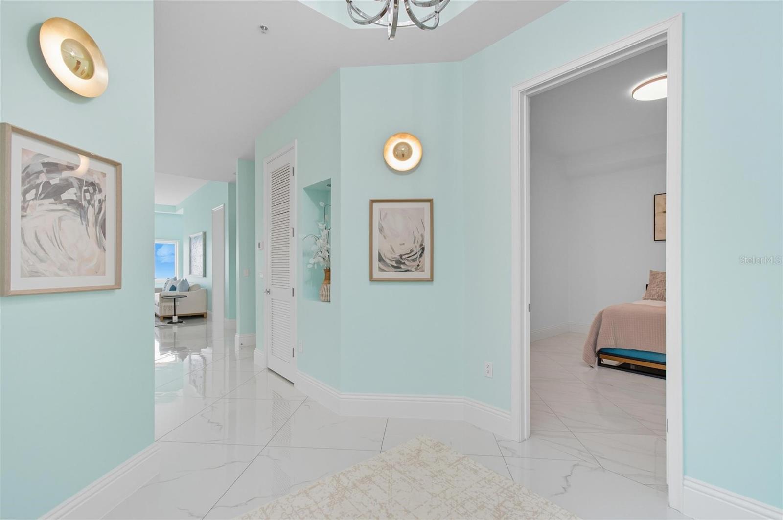 NO TRICKS - THIS PRICE REDUCTION IS THE ULTIMATE TREAT!!! Your Private Coastal Sanctuary in the Sky!! Perched atop the luxurious Hammock Beach Club resort, this one-of-a-kind penthouse is the crown jewel of Florida’s most exclusive oceanfront community. One of only five like it, this completely reimagined 3-bedroom, 3.5-bath residence blends tropical elegance with modern luxury and effortless coastal living. Step inside to discover a custom floor plan adorned with oversized 36” porcelain tiles in a serene ocean-inspired palette. Soaring 11' tray ceilings, 8' solid-core doors, and NEW impact glass sliders, windows, and shutters fill the home with light while offering ultimate peace of mind. The chef’s kitchen is a showstopper—featuring ceiling-height custom cabinetry with glass insets, quartz countertops, brushed black stainless appliances, and extended storage. A built-in dining bench creates the perfect spot for long, relaxed dinners overlooking the ocean. Each of the three bedrooms offers a private ensuite bath and walk-in closet, plus a newly added half bath for guests. The primary suite stuns with a spa-inspired shower and in-suite washer and dryer, while two private balconies capture breathtaking views of turquoise waters and endless skies. Beyond your penthouse, Hammock Beach Club offers world-class amenities with optional membership: a 91, 000 sq. ft. Fantasy Pool Pavilion with lazy river, waterslide, and zero-entry pool, an indoor pool, fitness center, luxurious full-service spa, pickleball and tennis courts, and six dining options from poolside fare to fine oceanfront dining. Golf enthusiasts can tee off on two championship courses—the Jack Nicklaus-designed Ocean Course and the Tom Watson-designed Conservatory Course. Whether you’re seeking an unforgettable vacation retreat or your forever oceanfront escape, this penthouse delivers the pinnacle of luxury, location, and lifestyle. Welcome to your sanctuary in the sky.