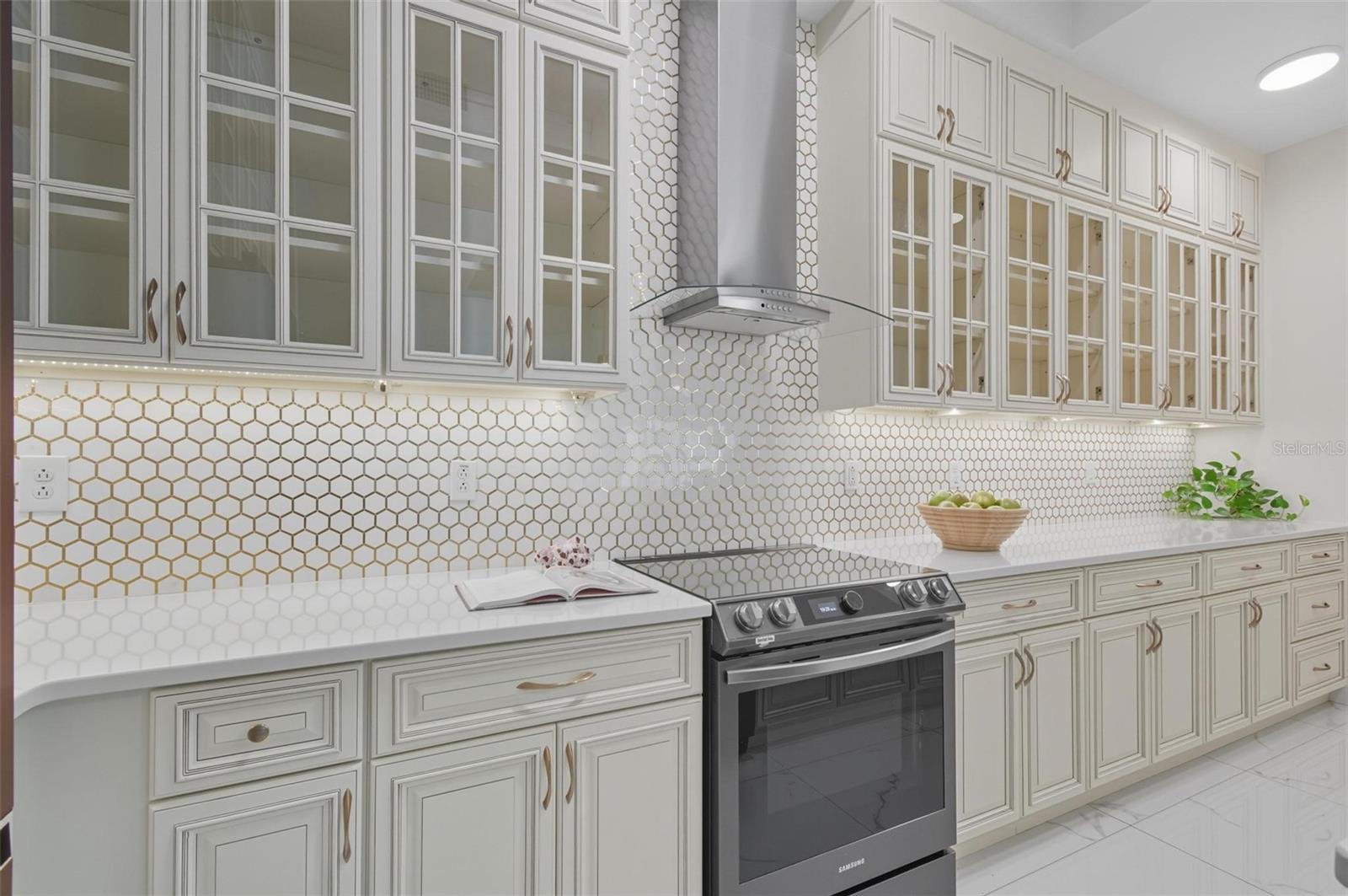 Built-in Features, Ceiling Fans(s), High Ceilings, Kitchen/Family Room Combo, Living Room/Dining Room Combo, Open Floorplan, Primary Bedroom Main Floor, Solid Surface Counters, Solid Wood Cabinets, Split Bedroom, Stone Counters, Tray Ceiling(s), Walk-In Closet(s)