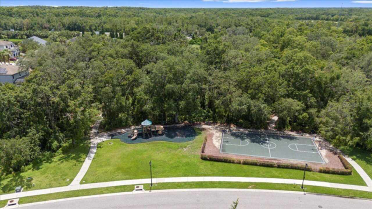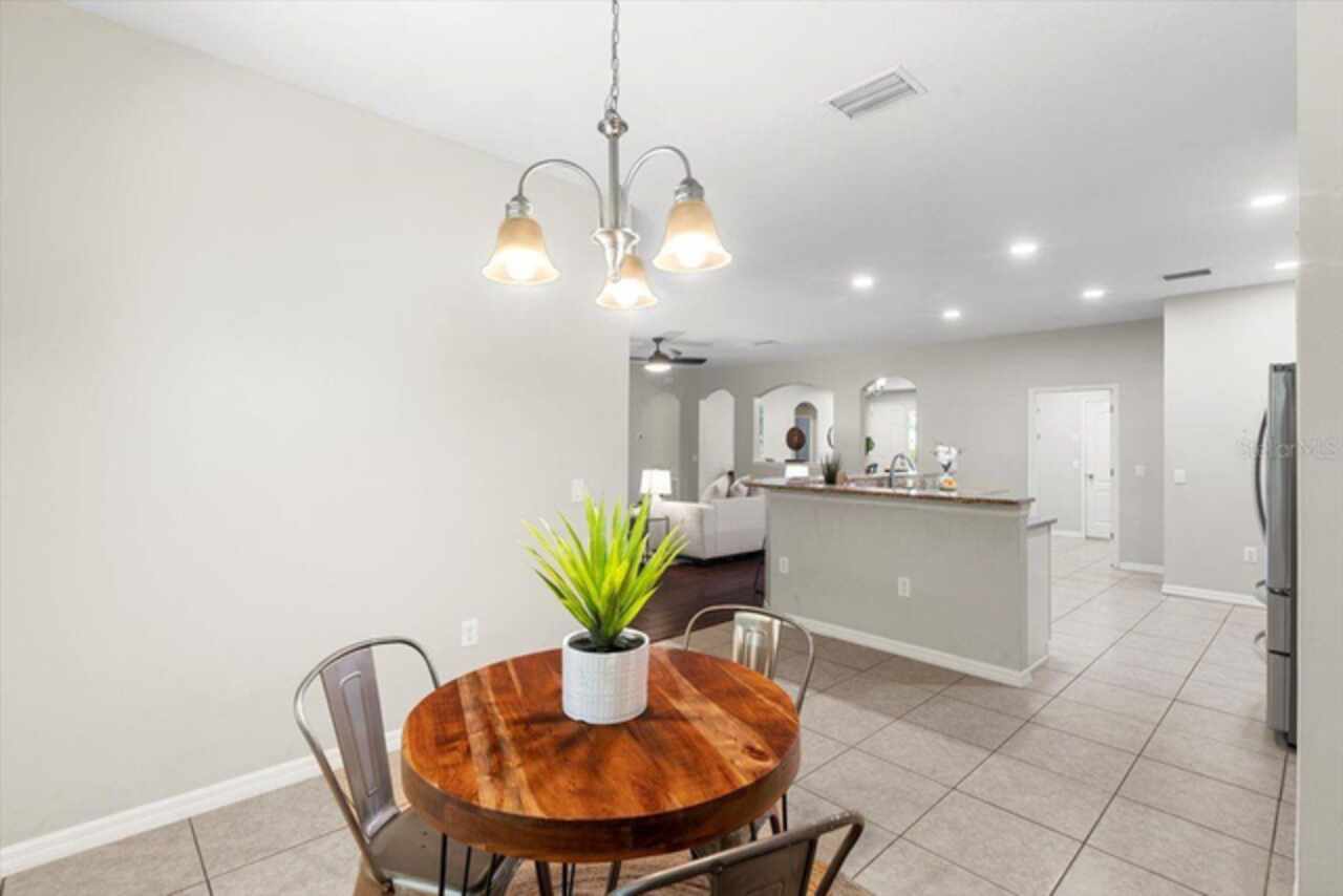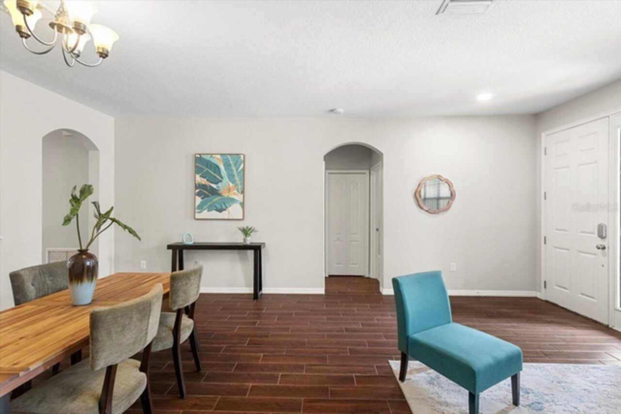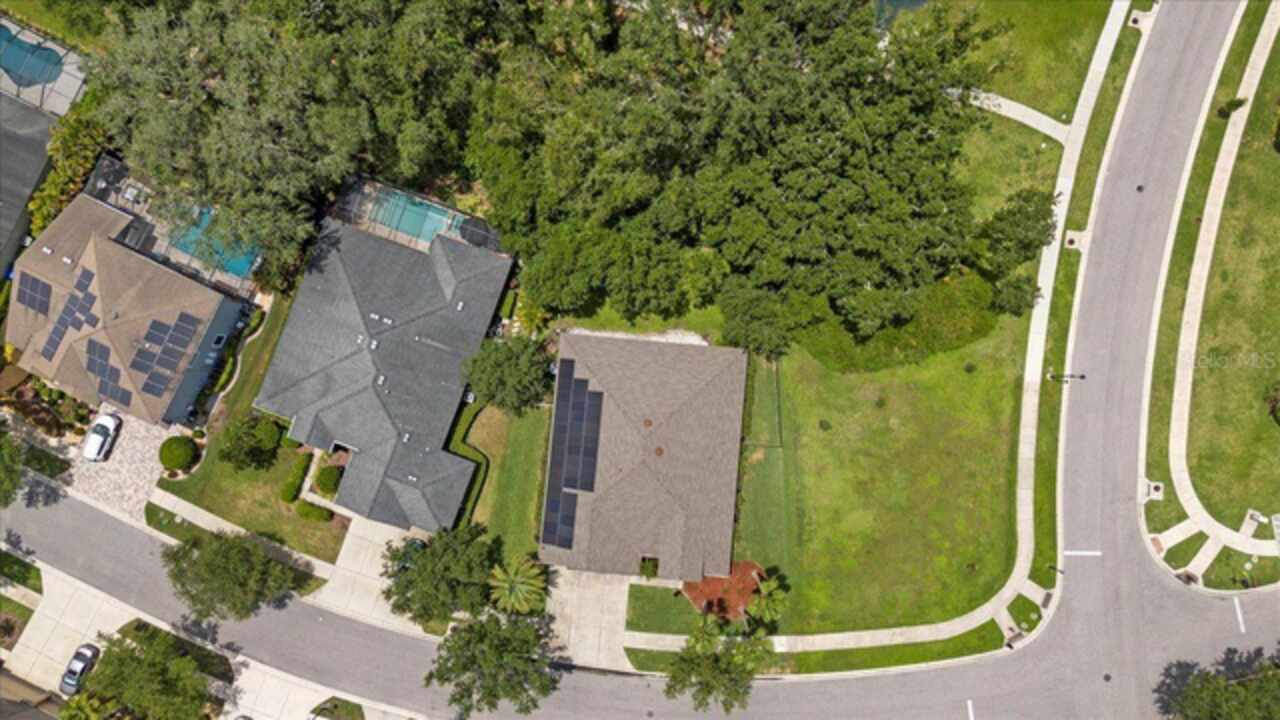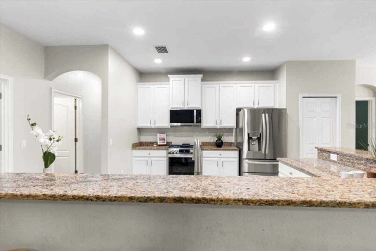One or more photo(s) has been virtually staged. Poised on a lush corner conservation lot in the prestigious guard-gated community of Grand Hampton, this meticulously maintained 4-bedroom + office, 3-bath, 3-car garage residence blends thoughtful design with modern upgrades and captivating curb appeal. Located within walking distance to the park and basketball court, this home offers both luxury and convenience. A new roof (2025) and exterior paint (2021) ensure lasting value, while the surrounding landscape—featuring swaying palm trees and vibrant red bark mulch—sets a tone of tropical sophistication. Step inside and instantly feel the airy openness created by cascading natural light and expansive wood-planked tile flooring that flows through all the main living spaces. The combined formal living and dining area makes an ideal setting for both upscale entertaining and quiet evenings at home. Just off the front living space is a private bedroom with carpet flooring, a walk-in closet, and access to a full guest bath—ideal for guests or multigenerational living. Continue through to the spacious secondary living room, where stacker glass sliders seamlessly connect indoor and outdoor living. Overlooking the conservation area, this space is framed by modern light fixtures and generous natural light. The primary suite is a serene retreat, featuring tray ceilings, stylish finishes, and tranquil views. The spa-like primary bath offers dual vanities, a garden soaking tub, glass walk-in shower, and a custom-built walk-in closet designed for functionality and flair. At the heart of the home, the kitchen is outfitted with solid wood cabinetry, granite countertops, stainless steel appliances including a gas range, recessed lighting, and thoughtful features like a lazy Susan and breakfast bar seating. The adjacent dinette offers serene views of the backyard and conservation beyond. The private home office, located just off the kitchen, boasts laminate flooring and inspiring views—perfect for remote work or creative pursuits. Also off the kitchen, you’ll find the laundry room, third full bathroom, and two additional bedrooms with luxury vinyl flooring and ample closet space. Step outside to your slice of Florida paradise—an oversized covered lanai perfect for entertaining, relaxing, or transforming into your own outdoor oasis. With no rear neighbors, a natural backdrop, a fully fenced-in backyard, this outdoor space invites you to unwind and enjoy Florida’s year-round sunshine. Notable upgrades include: Owned Solar Panels, Rinnai Tankless Water Heater, 2024 HVAC, and water softener (2 years old). This home is located within the highly sought-after, resort-style community of Grand Hampton. The community provides a wealth of amenities, including a 24-hour manned gate, state-of-the-art clubhouse, fitness center, playgrounds, lake access, and heated pools—including a lagoon-style pool with slide and a lap pool. Additional recreational features include tennis courts and basketball courts. Conveniently located near major highways I-75 and I-275, this property is just a short drive to local attractions such as Advent Hospital, PHSC, AdventHealth Center Ice, The Shops at Wiregrass, and Tampa Premium Outlets. Don’t miss your chance to own this exceptional home. Schedule your private showing today! For a virtual tour, click the provided link and experience the beauty of this remarkable property.