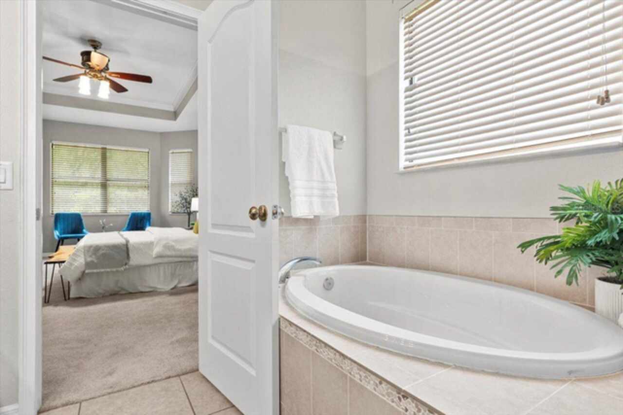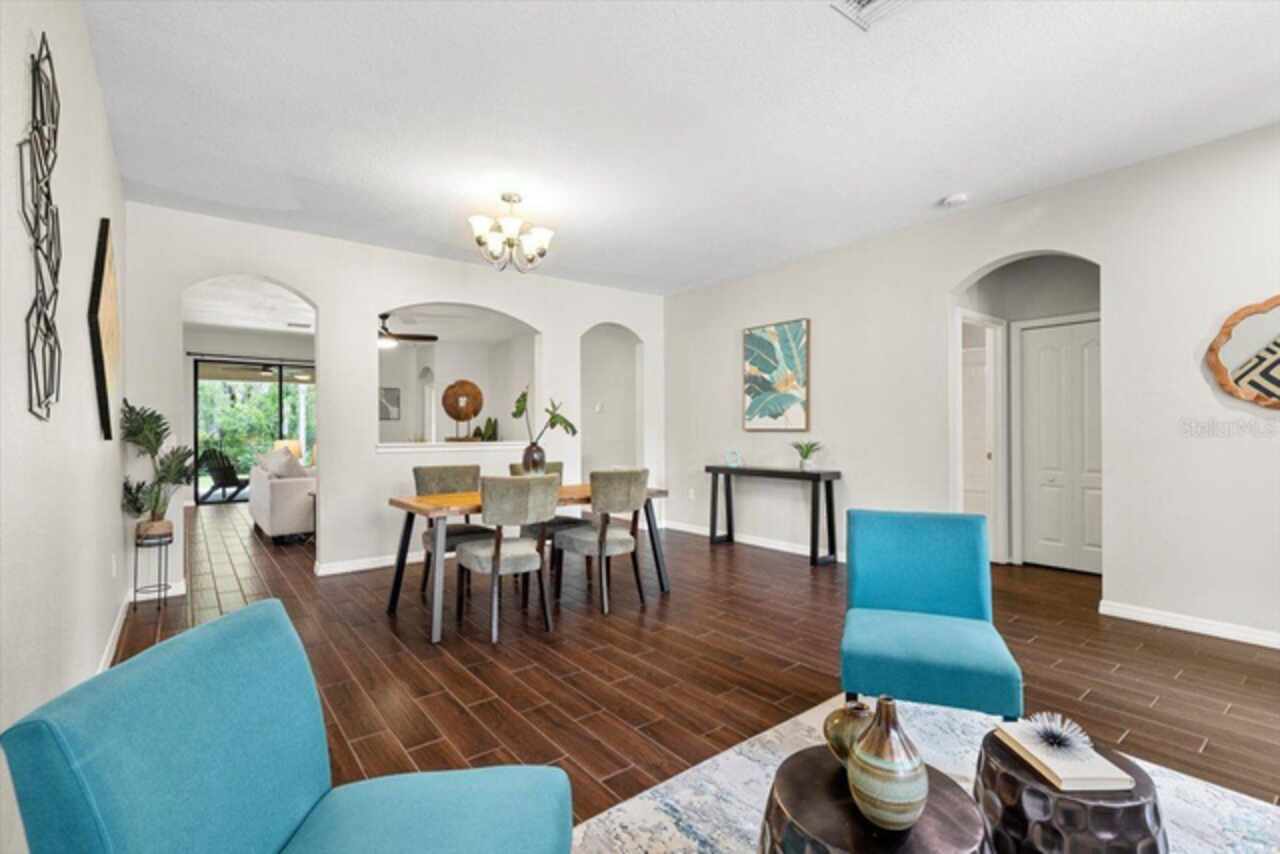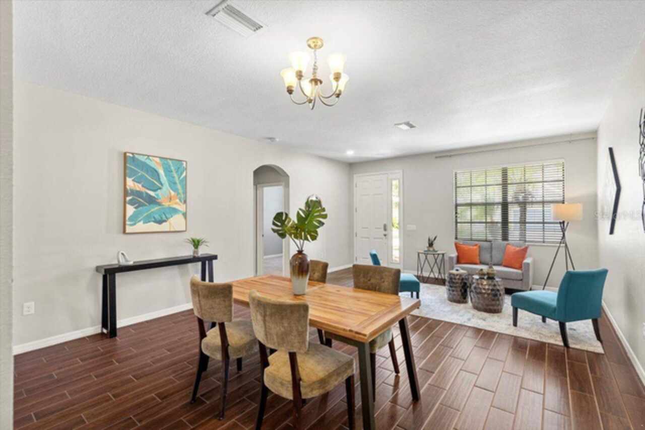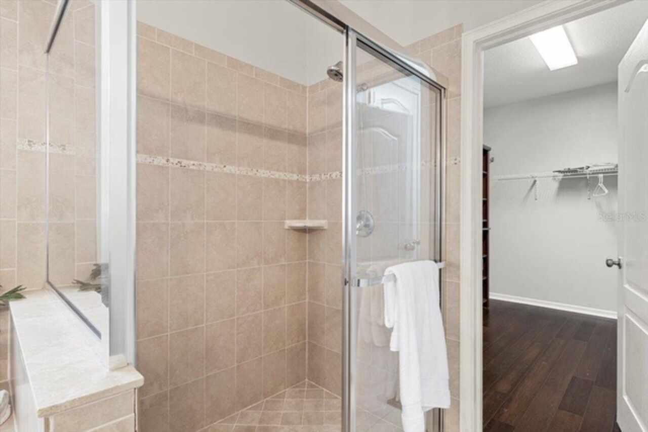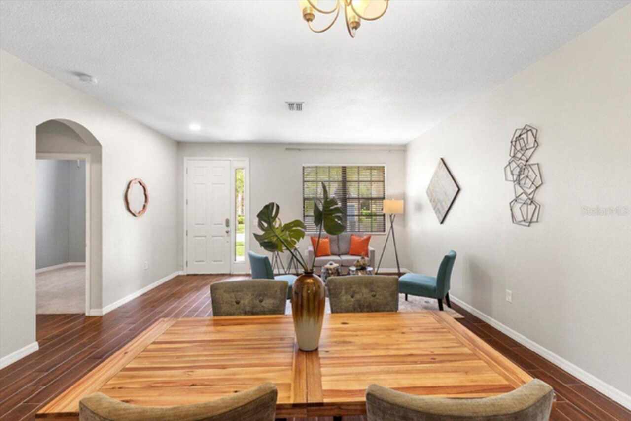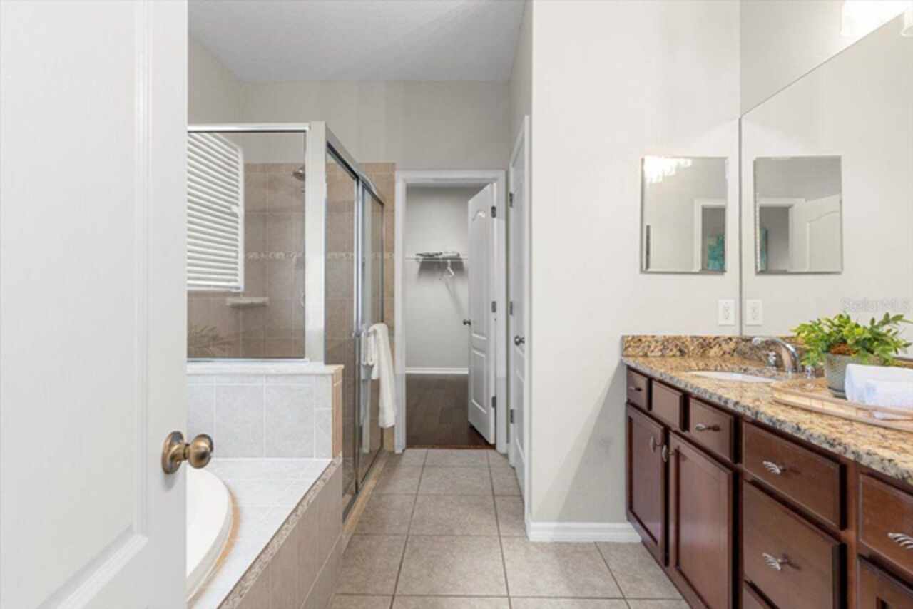 One or more photo(s) has been virtually staged. Poised on a lush corner conservation lot in the prestigious guard-gated community of Grand Hampton, this meticulously maintained 4-bedroom + office, 3-bath, 3-car garage residence blends thoughtful design with modern upgrades and captivating curb appeal. Located within walking distance to the park and basketball court, this home offers both luxury and convenience. A new roof (2025) and exterior paint (2021) ensure lasting value, while the surrounding landscape—featuring swaying palm trees and vibrant red bark mulch—sets a tone of tropical sophistication. Step inside and instantly feel the airy openness created by cascading natural light and expansive wood-planked tile flooring that flows through all the main living spaces. The combined formal living and dining area makes an ideal setting for both upscale entertaining and quiet evenings at home. Just off the front living space is a private bedroom with carpet flooring, a walk-in closet, and access to a full guest bath—ideal for guests or multigenerational living. Continue through to the spacious secondary living room, where stacker glass sliders seamlessly connect indoor and outdoor living. Overlooking the conservation area, this space is framed by modern light fixtures and generous natural light. The primary suite is a serene retreat, featuring tray ceilings, stylish finishes, and tranquil views. The spa-like primary bath offers dual vanities, a garden soaking tub, glass walk-in shower, and a custom-built walk-in closet designed for functionality and flair. At the heart of the home, the kitchen is outfitted with solid wood cabinetry, granite countertops, stainless steel appliances including a gas range, recessed lighting, and thoughtful features like a lazy Susan and breakfast bar seating. The adjacent dinette offers serene views of the backyard and conservation beyond. The private home office, located just off the kitchen, boasts laminate flooring and inspiring views—perfect for remote work or creative pursuits. Also off the kitchen, you’ll find the laundry room, third full bathroom, and two additional bedrooms with luxury vinyl flooring and ample closet space. Step outside to your slice of Florida paradise—an oversized covered lanai perfect for entertaining, relaxing, or transforming into your own outdoor oasis. With no rear neighbors, a natural backdrop, a fully fenced-in backyard, this outdoor space invites you to unwind and enjoy Florida’s year-round sunshine. Notable upgrades include: Owned Solar Panels, Rinnai Tankless Water Heater, 2024 HVAC, and water softener (2 years old). This home is located within the highly sought-after, resort-style community of Grand Hampton. The community provides a wealth of amenities, including a 24-hour manned gate, state-of-the-art clubhouse, fitness center, playgrounds, lake access, and heated pools—including a lagoon-style pool with slide and a lap pool. Additional recreational features include tennis courts and basketball courts. Conveniently located near major highways I-75 and I-275, this property is just a short drive to local attractions such as Advent Hospital, PHSC, AdventHealth Center Ice, The Shops at Wiregrass, and Tampa Premium Outlets. Don’t miss your chance to own this exceptional home. Schedule your private showing today! For a virtual tour, click the provided link and experience the beauty of this remarkable property.