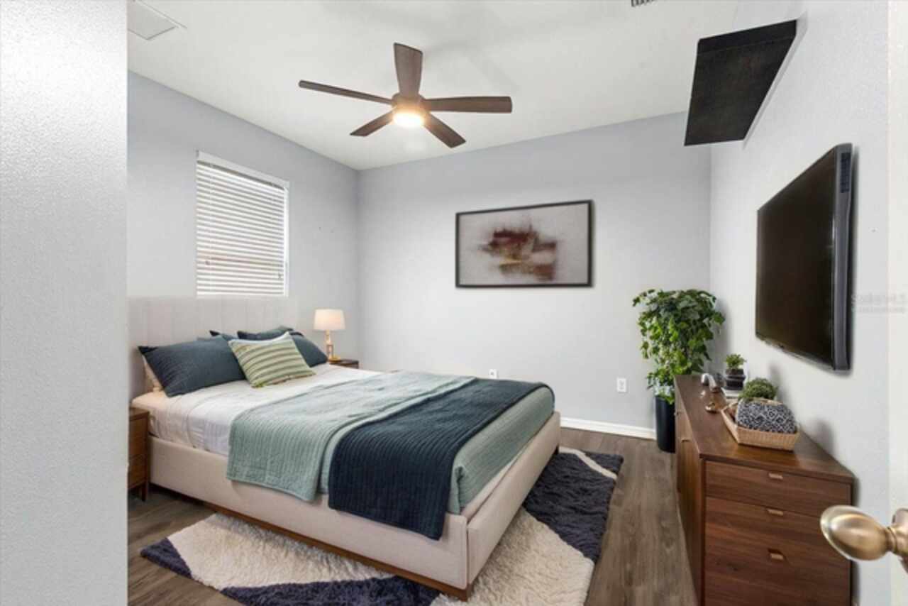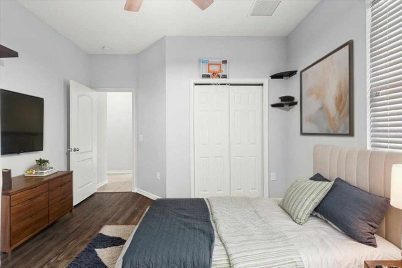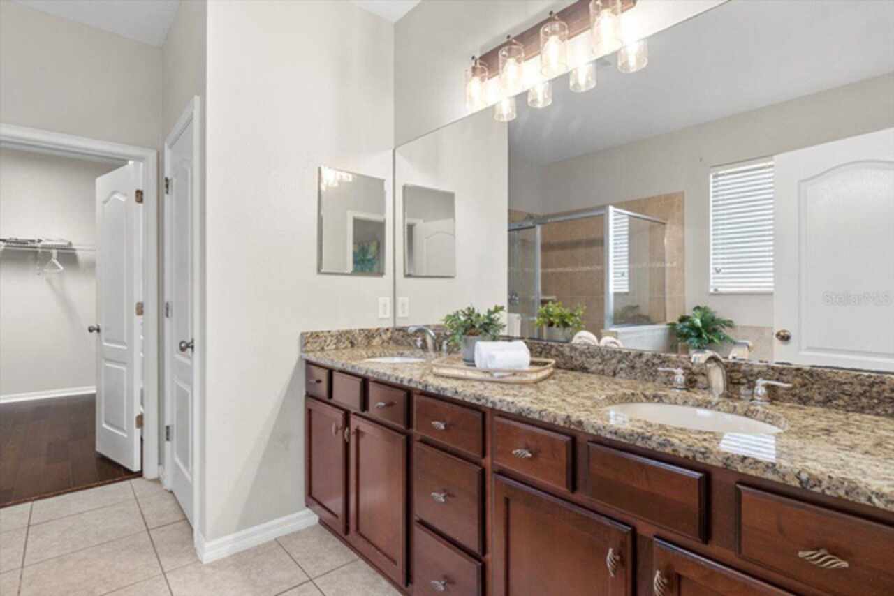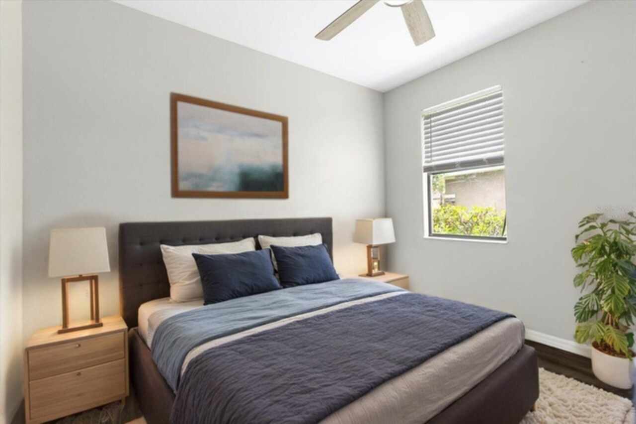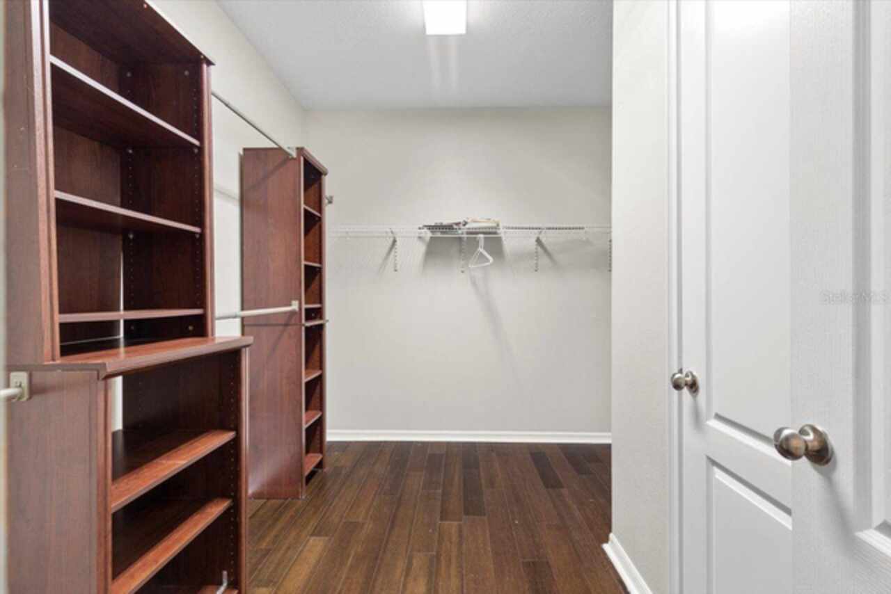 One or more photo(s) has been virtually staged. Poised on a lush corner conservation lot in the prestigious guard-gated community of Grand Hampton, this meticulously maintained 4-bedroom + office, 3-bath, 3-car garage residence blends thoughtful design with modern upgrades and captivating curb appeal. Located within walking distance to the park and basketball court, this home offers both luxury and convenience. A new roof (2025) and exterior paint (2021) ensure lasting value, while the surrounding landscape—featuring swaying palm trees and vibrant red bark mulch—sets a tone of tropical sophistication. Step inside and instantly feel the airy openness created by cascading natural light and expansive wood-planked tile flooring that flows through all the main living spaces. The combined formal living and dining area makes an ideal setting for both upscale entertaining and quiet evenings at home. Just off the front living space is a private bedroom with carpet flooring, a walk-in closet, and access to a full guest bath—ideal for guests or multigenerational living. Continue through to the spacious secondary living room, where stacker glass sliders seamlessly connect indoor and outdoor living. Overlooking the conservation area, this space is framed by modern light fixtures and generous natural light. The primary suite is a serene retreat, featuring tray ceilings, stylish finishes, and tranquil views. The spa-like primary bath offers dual vanities, a garden soaking tub, glass walk-in shower, and a custom-built walk-in closet designed for functionality and flair. At the heart of the home, the kitchen is outfitted with solid wood cabinetry, granite countertops, stainless steel appliances including a gas range, recessed lighting, and thoughtful features like a lazy Susan and breakfast bar seating. The adjacent dinette offers serene views of the backyard and conservation beyond. The private home office, located just off the kitchen, boasts laminate flooring and inspiring views—perfect for remote work or creative pursuits. Also off the kitchen, you’ll find the laundry room, third full bathroom, and two additional bedrooms with luxury vinyl flooring and ample closet space. Step outside to your slice of Florida paradise—an oversized covered lanai perfect for entertaining, relaxing, or transforming into your own outdoor oasis. With no rear neighbors, a natural backdrop, a fully fenced-in backyard, this outdoor space invites you to unwind and enjoy Florida’s year-round sunshine. Notable upgrades include: Owned Solar Panels, Rinnai Tankless Water Heater, 2024 HVAC, and water softener (2 years old). This home is located within the highly sought-after, resort-style community of Grand Hampton. The community provides a wealth of amenities, including a 24-hour manned gate, state-of-the-art clubhouse, fitness center, playgrounds, lake access, and heated pools—including a lagoon-style pool with slide and a lap pool. Additional recreational features include tennis courts and basketball courts. Conveniently located near major highways I-75 and I-275, this property is just a short drive to local attractions such as Advent Hospital, PHSC, AdventHealth Center Ice, The Shops at Wiregrass, and Tampa Premium Outlets. Don’t miss your chance to own this exceptional home. Schedule your private showing today! For a virtual tour, click the provided link and experience the beauty of this remarkable property.