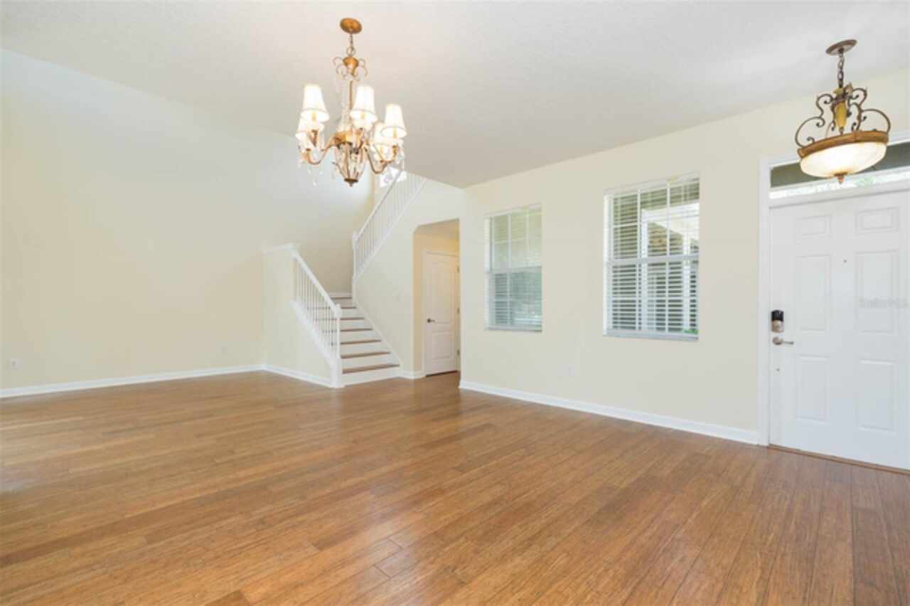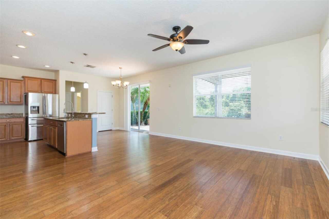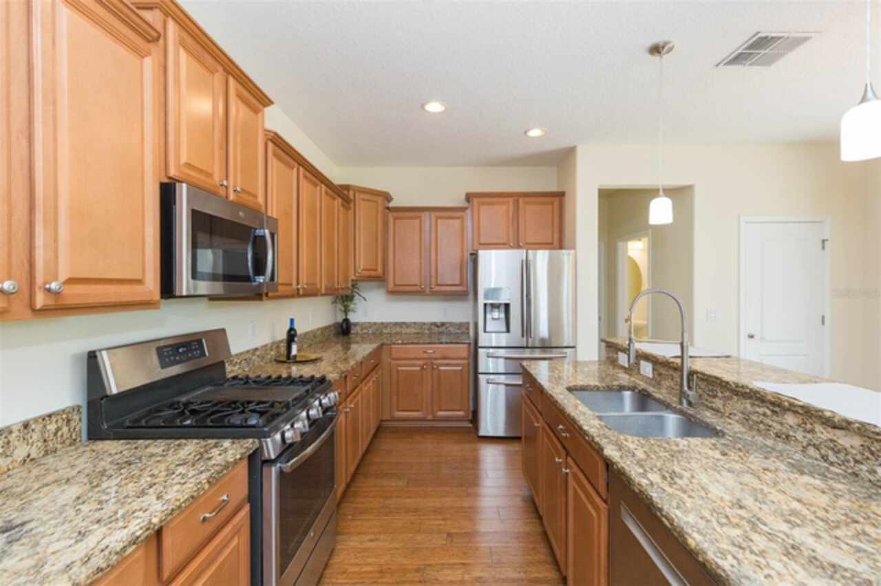 Your dream home is ready! Call today and schedule a private tour. This home offers both indoor and outdoor space for all to enjoy. With great curb appeal, extended driveway, 2 garages, mature landscaping and an oversized lot, what else could you ask for? There is plenty of parking and loads of lawn. Stepping inside the formal living/dining area, you are greeted with beautiful bamboo floors, lots of natural light, 2-story living room, gorgeous staircase and easy access to the covered lanai. Off of the living room you find a corridor to a perfect in-law suite/teen room or guest room with its own private bath. To the rear of the home you find a comfortable family room/kitchen combination that has space for all to relax together. The beautiful bamboo flooring continues into the family room and kitchen. The kitchen features wood cabinets topped with crown molding, granite counters, black/stainless steel appliances, center island/breakfast bat, pre-wire for pendant lights and a beautiful gas range. This kitchen offers beauty and space. Downstairs you will find a half-bath and laundry room. Moving upstairs, you land in the loft. The loft continues the rich and durable bamboo flooring. There is plenty of room for a large sofa and big screen TV. The owners’ suite is large and comes with two walk-in closets and a private bath. Two secondary bedrooms share a hall bathroom. Both bedrooms have walk-in closets. Outside you are immersed into beauty and nature. The large brick paver patio offers a gorgeous area for your furniture. The built in fire-pit and sitting wall will surely be a hit for family and friends to gather around. The rear yard is fenced and has a lush lawn for beauty and outdoor activities. Live Oak Preserve was built with a "Village" theme where the neighborhood was separated by ponds and natural landscape features developing a sense of small villages instead of large housing tracts. The community center includes a swimming pool, splash pad, fitness center, tennis courts, playground, batting cage and miles of sidewalk trails. The main entrance is gated/guarded and the rear entrance is gated. Major shopping and dining are moments away. You will not be disappointed with this New Tampa home. Call today and schedule your tour.