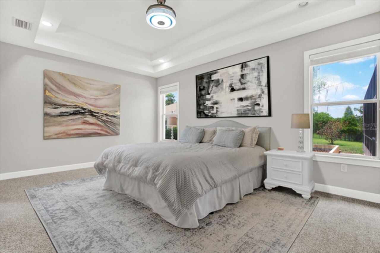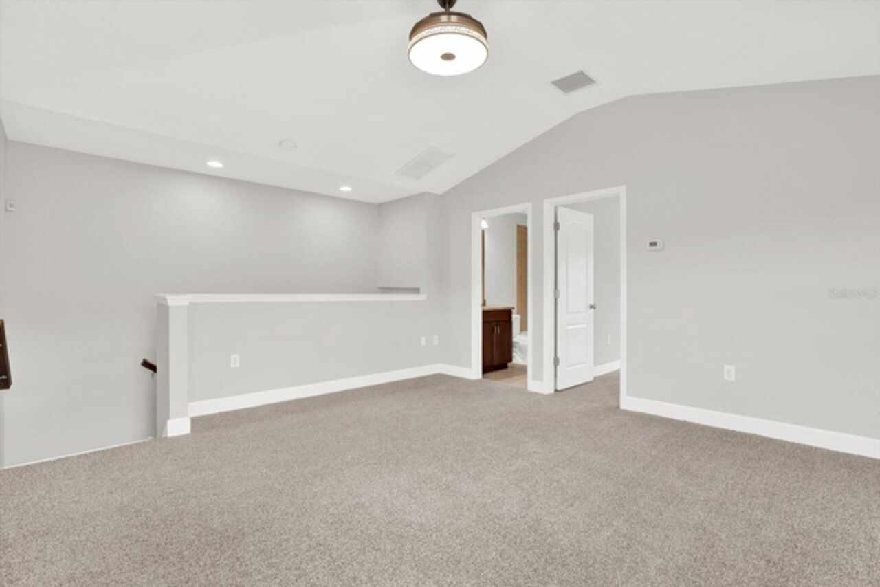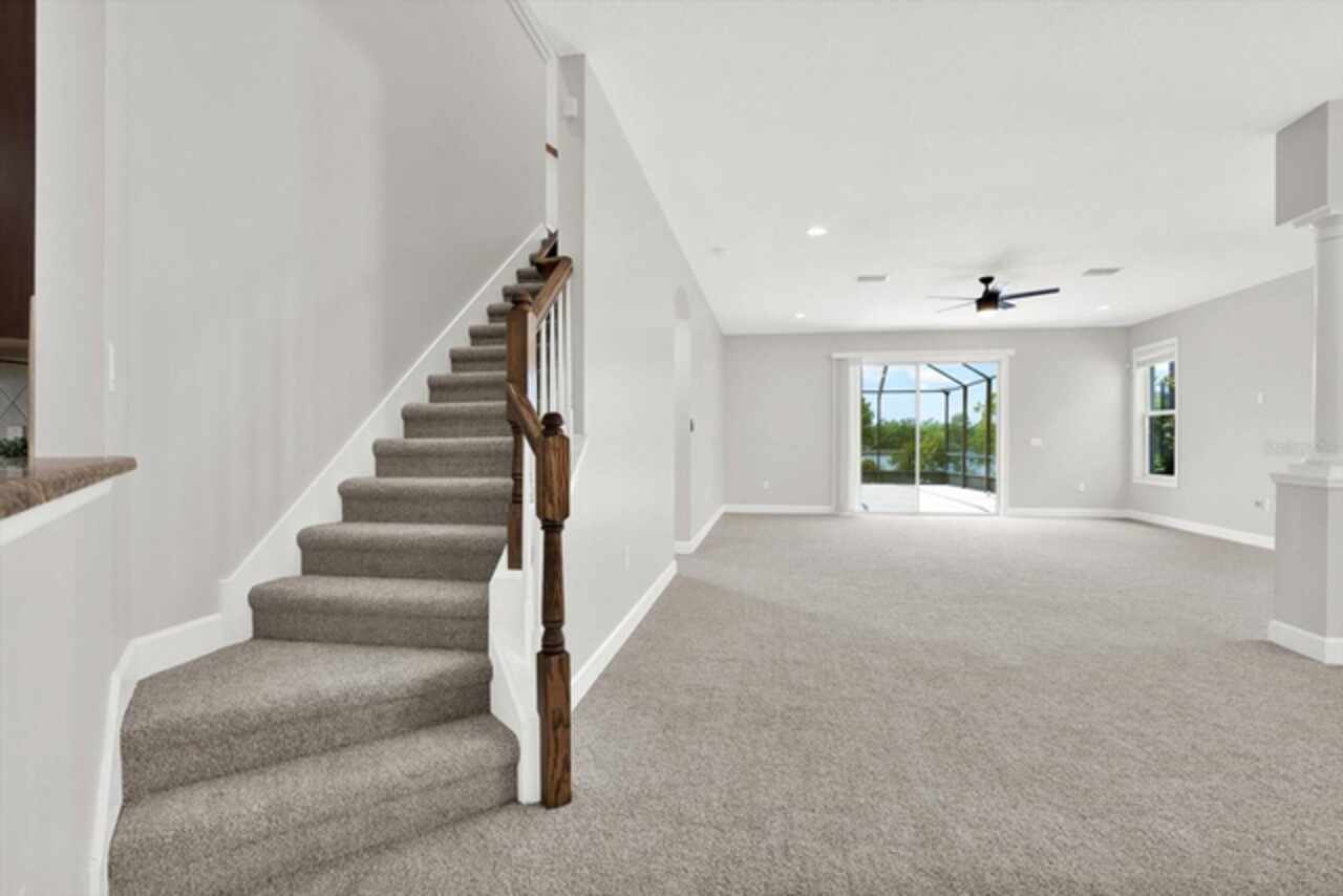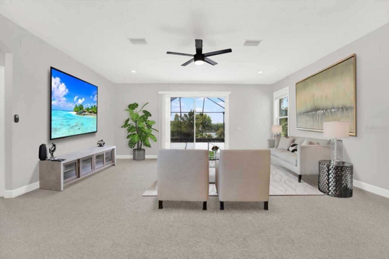 One or more photo(s) has been virtually staged. Experience waterfront living and a maintenance-included lifestyle in the highly sought-after, guard-gated community of Grand Hampton in New Tampa. Positioned on a premium homesite overlooking Lake Hampton with no rear neighbors, this meticulously maintained home offers scenic views, privacy, and an effortless indoor-outdoor flow from the screened lanai—perfect for morning coffee or evening sunsets over the water. Inside, a bright, open layout features brand-new carpet, ceramic tile in wet areas, and a thoughtfully designed kitchen with granite countertops, stainless steel appliances, a gas range, 42" cabinetry, center island, and an oversized closet pantry. The primary suite is a private retreat with a tray ceiling, dual vanities, granite counters, soaking tub, walk-in shower, private water closet, and generous walk-in closet. Additional highlights include a spacious upstairs bonus room ideal for a home theater, gym, or guest suite, an indoor laundry room, and a two-car garage. A charming front porch and backyard raised garden bed add warmth and personality while complementing the home’s elevated design. Grand Hampton offers 24/7 manned gated security and an unparalleled resort lifestyle, including a resort-style pool, lap pool, tennis and pickleball courts, basketball, fishing pier, fitness center, playgrounds, scenic trails, clubhouse, and a full-time lifestyle director. HOA benefits include routine landscaping, annual mulching, exterior painting, high-speed internet, and exclusive access to amenities for a true lock-and-leave experience. Located minutes from top destinations including The Shoppes at Wiregrass, Tampa Premium Outlets, Costco, Target, restaurants, entertainment, USF, Moffitt Cancer Center, AdventHealth, Florida Hospital, and major commuter routes with easy access to downtown Tampa, Tampa International Airport, and award-winning Gulf beaches. This is a rare opportunity to own a lakefront home in one of New Tampa’s most desirable communities—where lifestyle, location, and convenience come together. Schedule your private showing today.