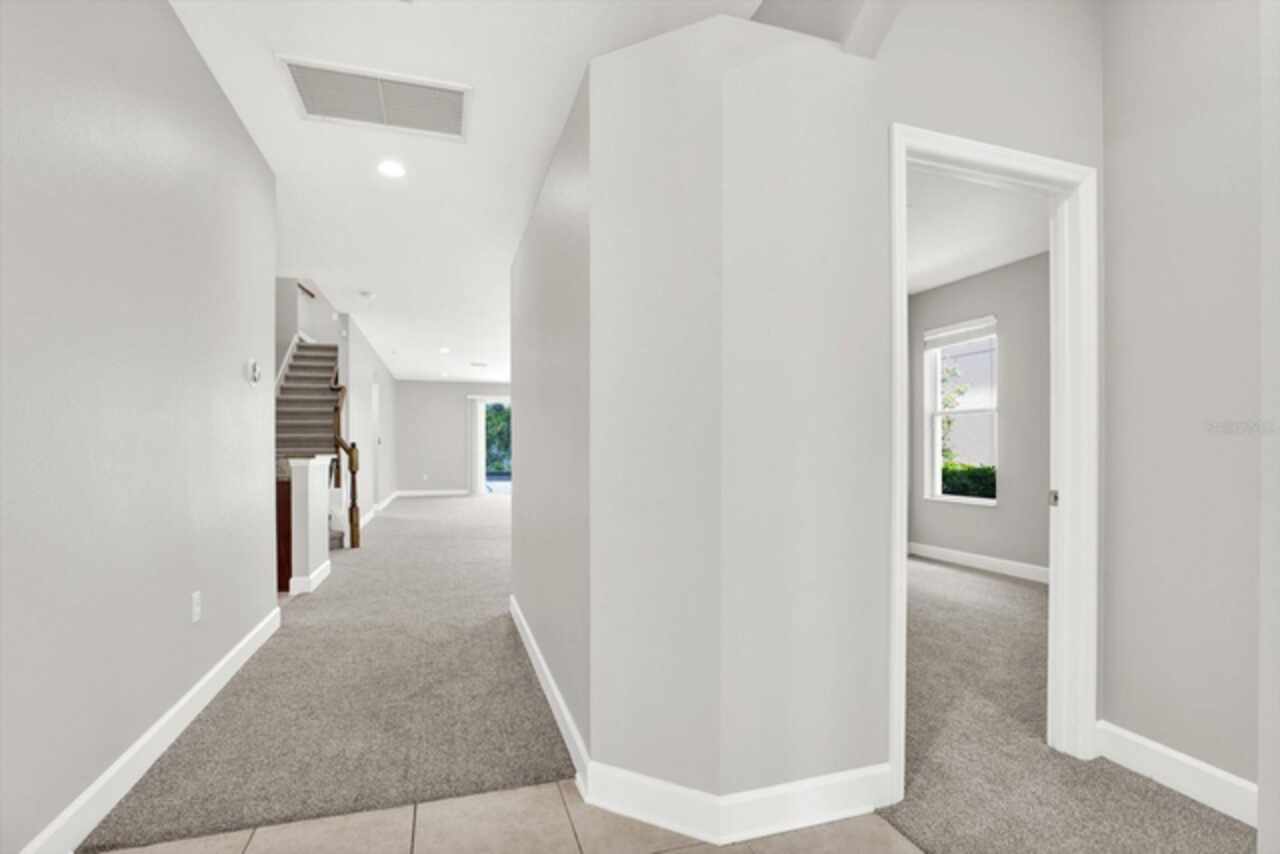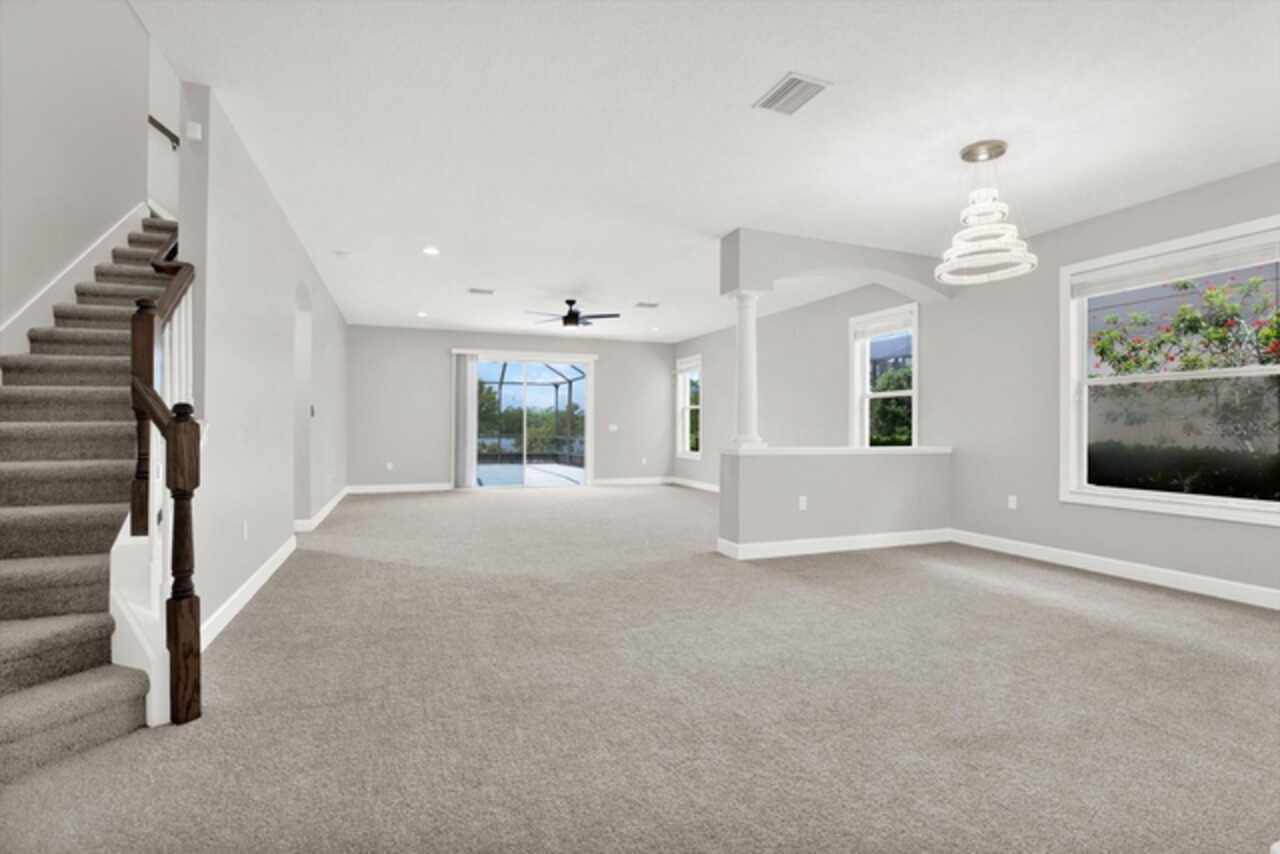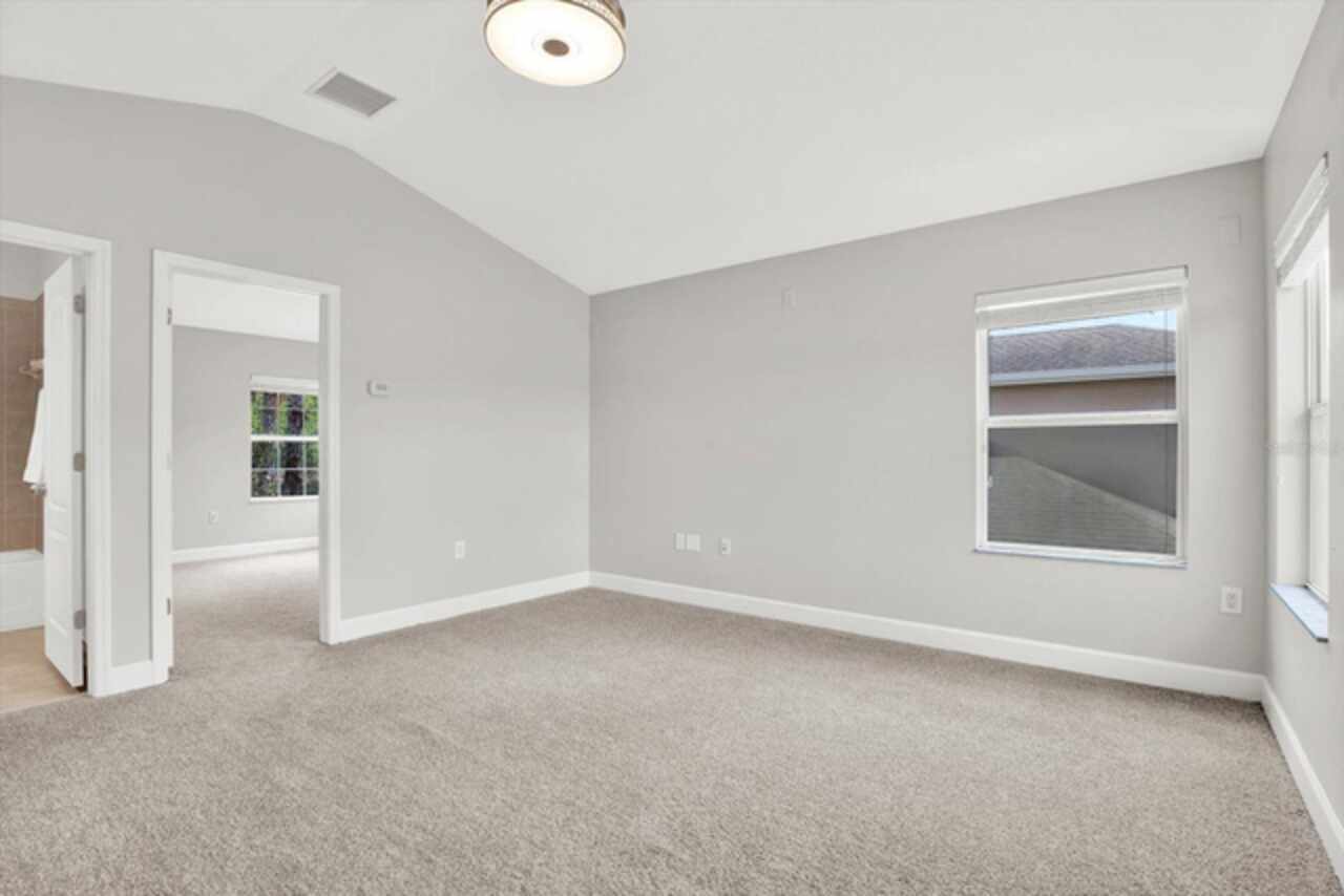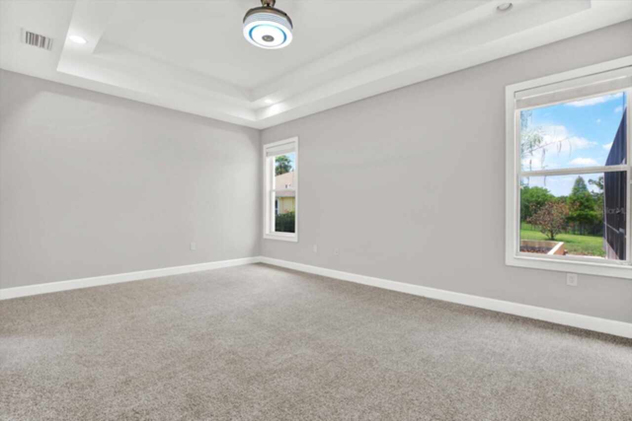 One or more photo(s) has been virtually staged. Experience waterfront living and a maintenance-included lifestyle in the highly sought-after, guard-gated community of Grand Hampton in New Tampa. Positioned on a premium homesite overlooking Lake Hampton with no rear neighbors, this meticulously maintained home offers scenic views, privacy, and an effortless indoor-outdoor flow from the screened lanai—perfect for morning coffee or evening sunsets over the water. Inside, a bright, open layout features brand-new carpet, ceramic tile in wet areas, and a thoughtfully designed kitchen with granite countertops, stainless steel appliances, a gas range, 42" cabinetry, center island, and an oversized closet pantry. The primary suite is a private retreat with a tray ceiling, dual vanities, granite counters, soaking tub, walk-in shower, private water closet, and generous walk-in closet. Additional highlights include a spacious upstairs bonus room ideal for a home theater, gym, or guest suite, an indoor laundry room, and a two-car garage. A charming front porch and backyard raised garden bed add warmth and personality while complementing the home’s elevated design. Grand Hampton offers 24/7 manned gated security and an unparalleled resort lifestyle, including a resort-style pool, lap pool, tennis and pickleball courts, basketball, fishing pier, fitness center, playgrounds, scenic trails, clubhouse, and a full-time lifestyle director. HOA benefits include routine landscaping, annual mulching, exterior painting, high-speed internet, and exclusive access to amenities for a true lock-and-leave experience. Located minutes from top destinations including The Shoppes at Wiregrass, Tampa Premium Outlets, Costco, Target, restaurants, entertainment, USF, Moffitt Cancer Center, AdventHealth, Florida Hospital, and major commuter routes with easy access to downtown Tampa, Tampa International Airport, and award-winning Gulf beaches. This is a rare opportunity to own a lakefront home in one of New Tampa’s most desirable communities—where lifestyle, location, and convenience come together. Schedule your private showing today.