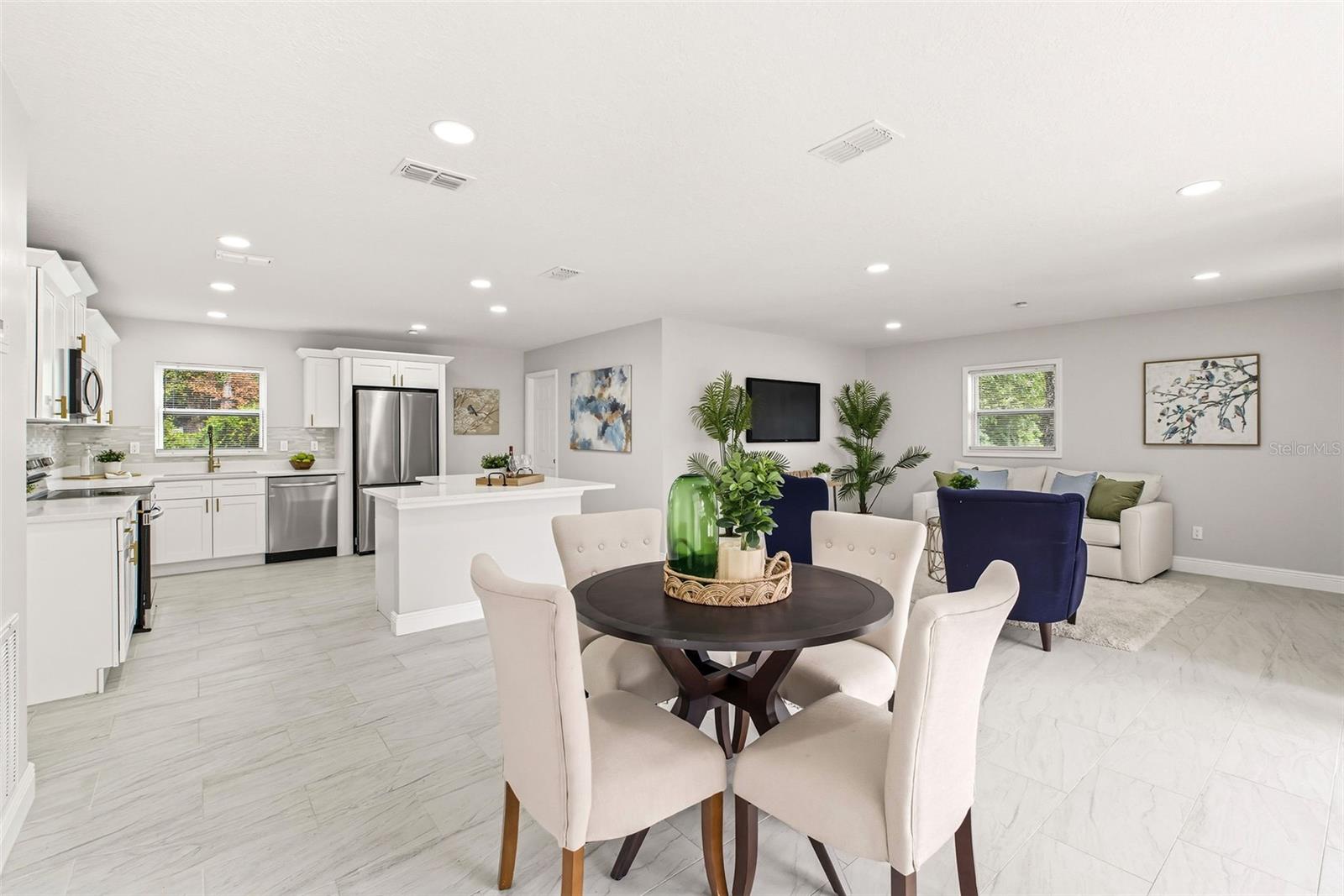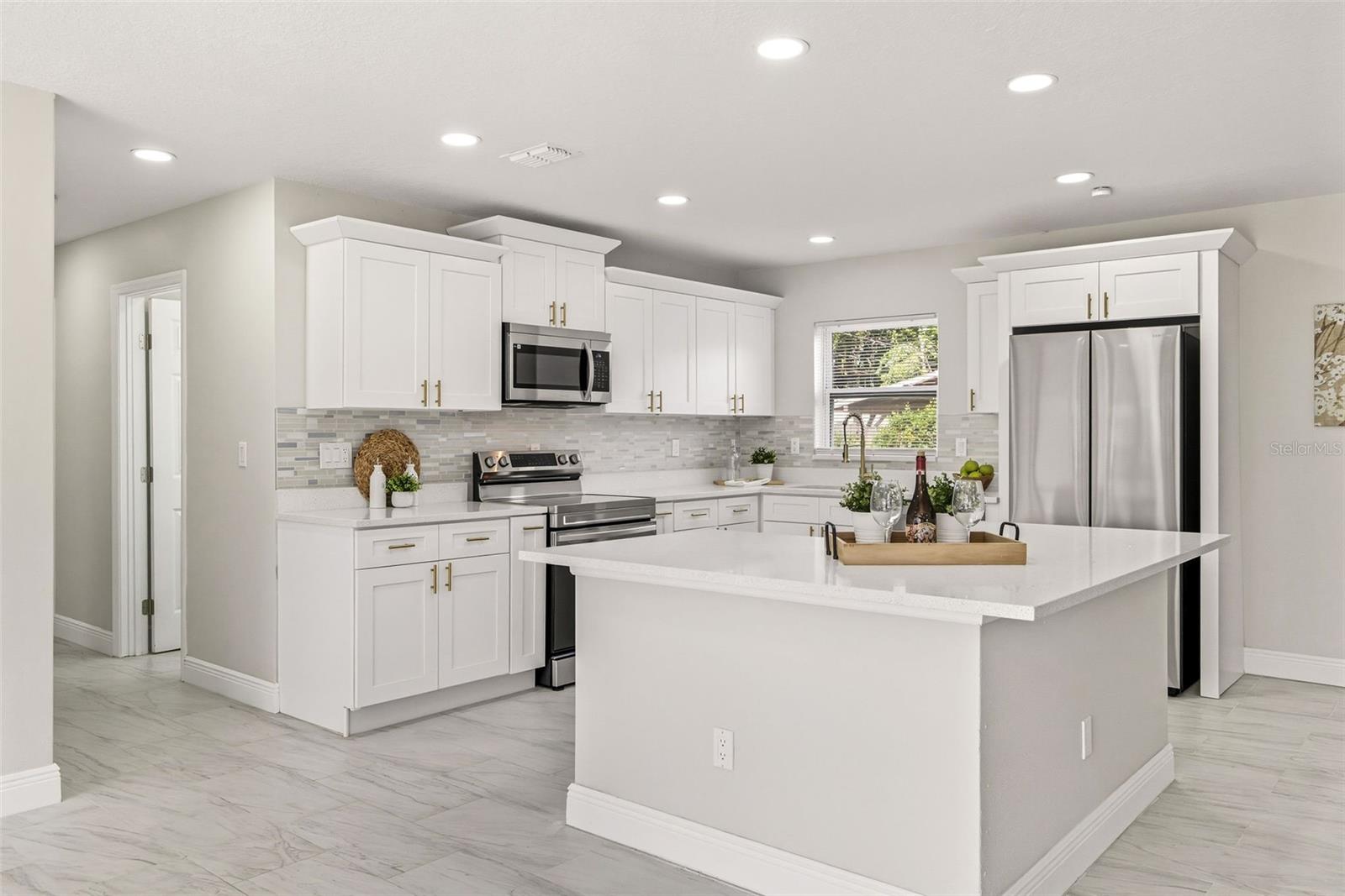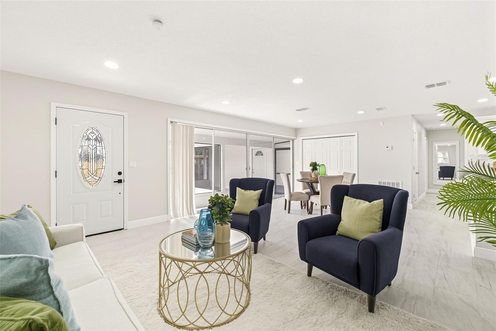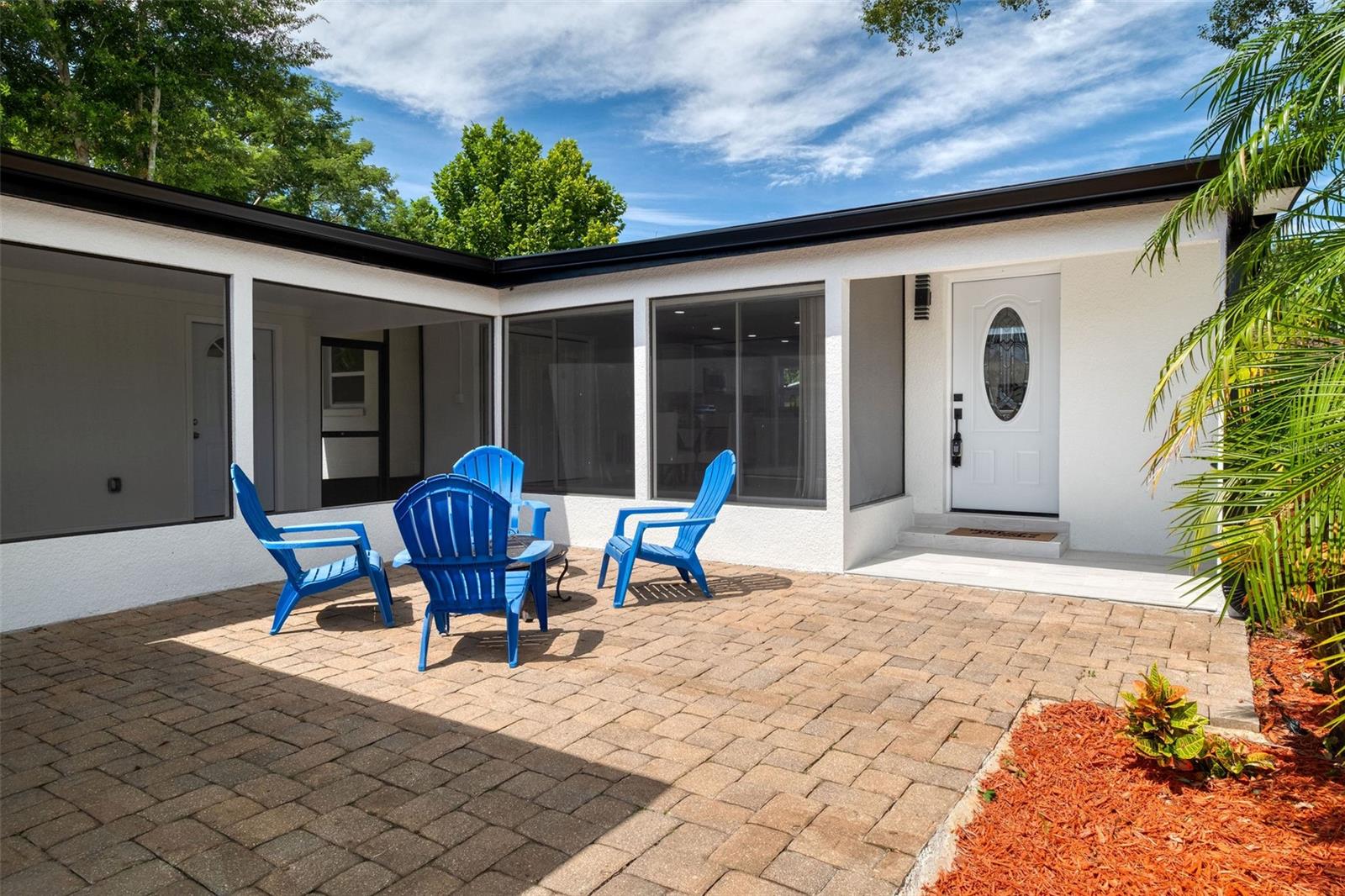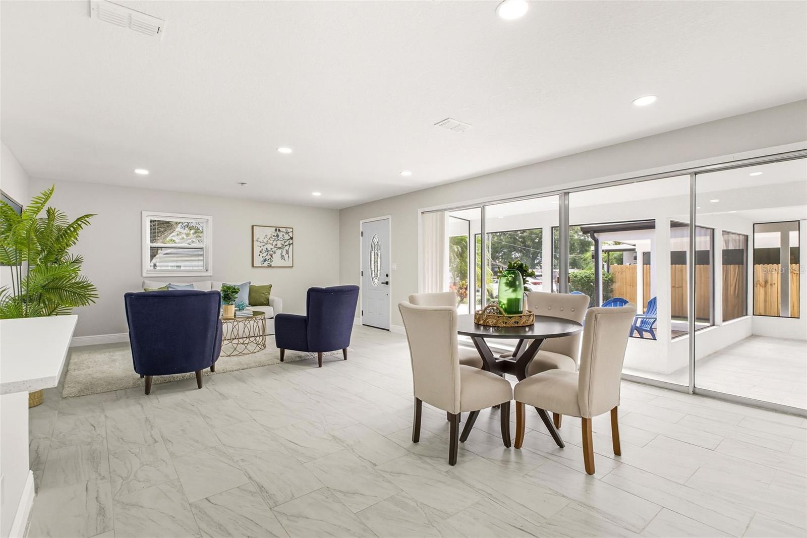 Welcome to this beautifully renovated home in the heart of Orlando, offering 3 bedrooms, 2 bathrooms, and 1, 500 square feet of thoughtfully designed living space. Completely updated in 2025, this residence combines modern finishes with functional design, making it truly move-in ready. Step inside to discover an open floor plan where the kitchen seamlessly connects to the dining area and living room. Two sets of oversized sliding glass doors flood the space with natural light and open to the expansive screened lanai, creating an effortless flow for indoor-outdoor living. A bonus room with its own mini-split air conditioning unit and private entrance provides the perfect space for a home office, studio, or guest retreat. Throughout the home, you’ll find new wide-plank tile flooring, extra-wide baseboards, recessed lighting, new light fixtures and fresh interior paint. The chef’s kitchen is the centerpiece of the home, featuring white shaker cabinetry with soft-close doors and drawers, quartz countertops, a spacious L-shaped island with seating for five, stainless steel appliances, and a stunning glass tile backsplash. The private primary suite offers dual built-in closets and a luxurious en-suite bathroom complete with a quartz-topped dual vanity, LED frontlit and backlit mirror, and a walk-in shower with upgraded tile. Two additional bedrooms share a beautifully updated full bath with floor-to-ceiling tile, a dual vanity with quartz countertop, LED frontlit and backlit mirror and a shower/tub combination. Outside, lush mature landscaping surrounds the property, creating a serene setting. Enjoy the spacious tiled screened lanai, perfect for relaxing or entertaining, as well as a charming cobblestone paved courtyard. Additional exterior upgrades include gutters, a freshly painted exterior (2025), and a covered carport. Located in the established community of Medallion Estates, this property is just minutes from SR 417 and SR 408, 20 minutes to Orlando International Airport, 16 minutes to downtown Orlando, and walking distance to Rising Stars at Conrad Academy. It’s also just a short drive to Barry School of Law, shopping, dining, and all that Orlando has to offer. This home is ready for you to make it your own and start creating lasting memories. Schedule your showing today! ROOF - 2025 HVAC - 2025 ELECTRICAL - 2012