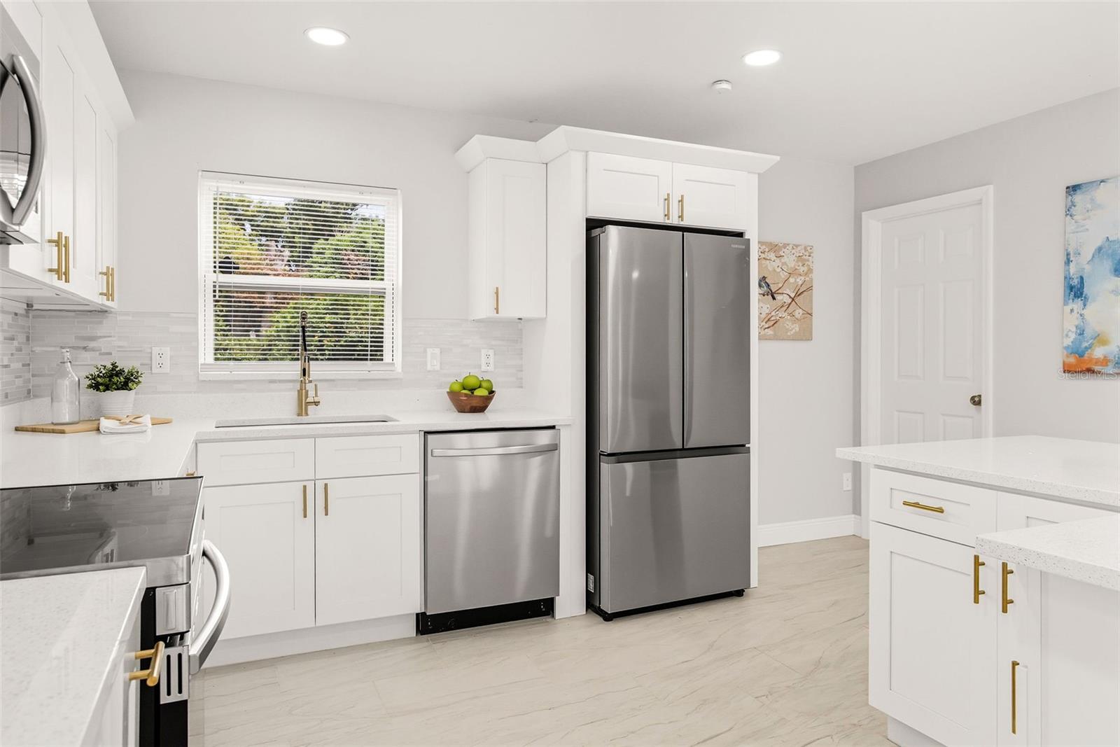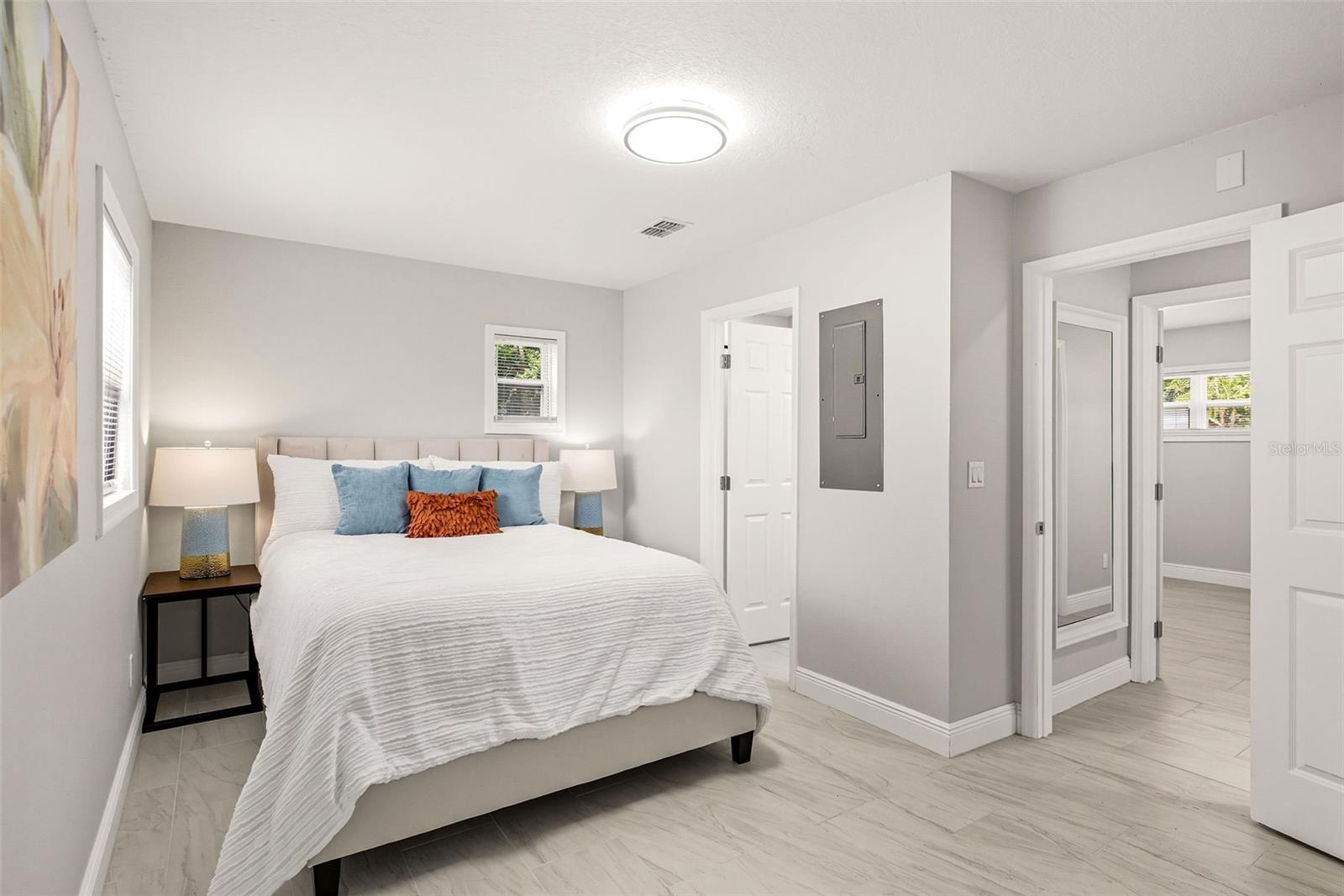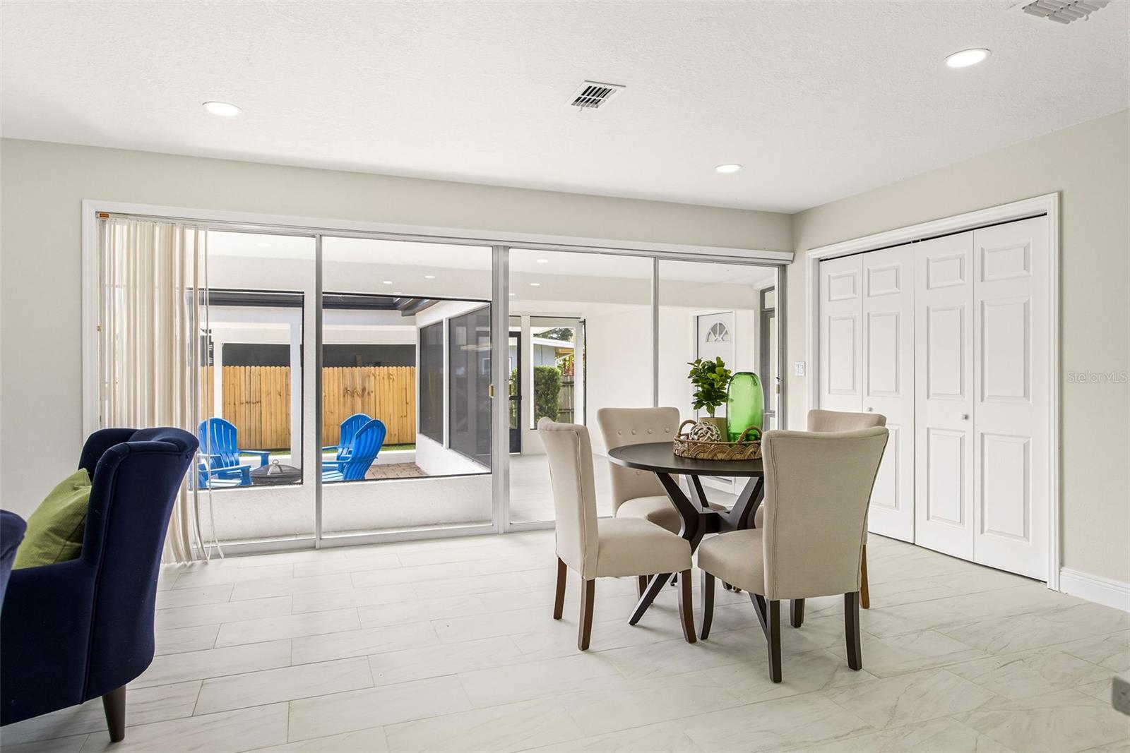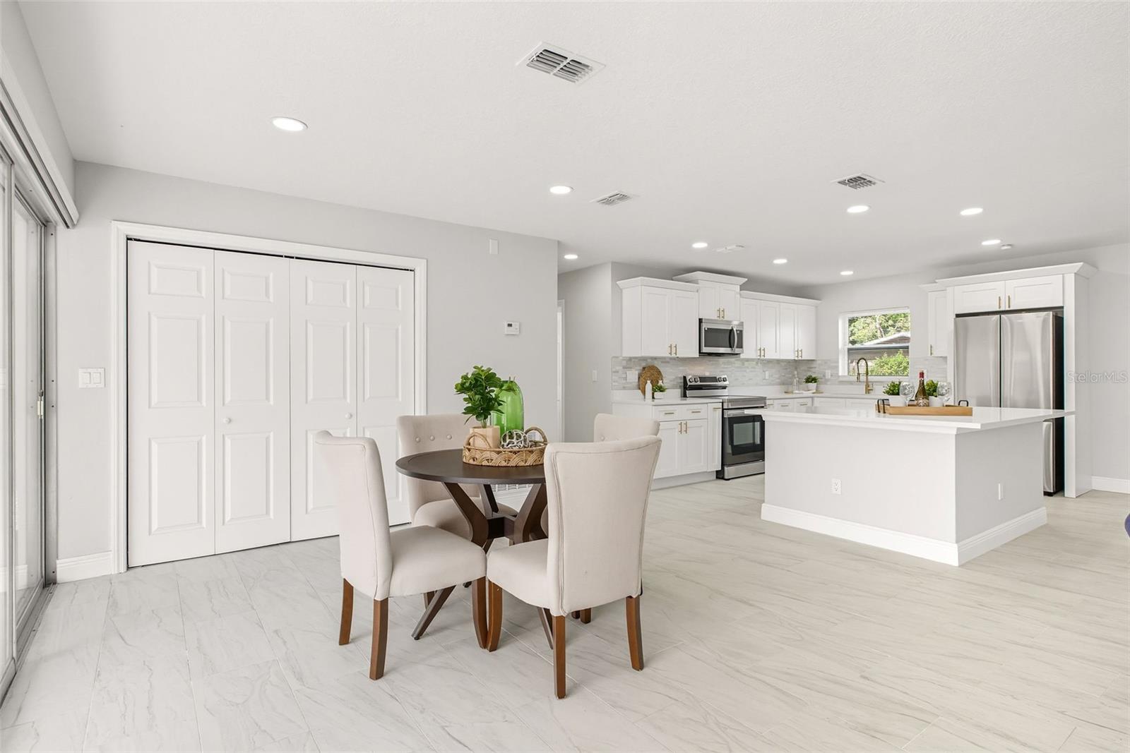 Welcome to this beautifully renovated home in the heart of Orlando, offering 3 bedrooms, 2 bathrooms, and 1, 500 square feet of thoughtfully designed living space. Completely updated in 2025, this residence combines modern finishes with functional design, making it truly move-in ready. Step inside to discover an open floor plan where the kitchen seamlessly connects to the dining area and living room. Two sets of oversized sliding glass doors flood the space with natural light and open to the expansive screened lanai, creating an effortless flow for indoor-outdoor living. A bonus room with its own mini-split air conditioning unit and private entrance provides the perfect space for a home office, studio, or guest retreat. Throughout the home, you’ll find new wide-plank tile flooring, extra-wide baseboards, recessed lighting, new light fixtures and fresh interior paint. The chef’s kitchen is the centerpiece of the home, featuring white shaker cabinetry with soft-close doors and drawers, quartz countertops, a spacious L-shaped island with seating for five, stainless steel appliances, and a stunning glass tile backsplash. The private primary suite offers dual built-in closets and a luxurious en-suite bathroom complete with a quartz-topped dual vanity, LED frontlit and backlit mirror, and a walk-in shower with upgraded tile. Two additional bedrooms share a beautifully updated full bath with floor-to-ceiling tile, a dual vanity with quartz countertop, LED frontlit and backlit mirror and a shower/tub combination. Outside, lush mature landscaping surrounds the property, creating a serene setting. Enjoy the spacious tiled screened lanai, perfect for relaxing or entertaining, as well as a charming cobblestone paved courtyard. Additional exterior upgrades include gutters, a freshly painted exterior (2025), and a covered carport. Located in the established community of Medallion Estates, this property is just minutes from SR 417 and SR 408, 20 minutes to Orlando International Airport, 16 minutes to downtown Orlando, and walking distance to Rising Stars at Conrad Academy. It’s also just a short drive to Barry School of Law, shopping, dining, and all that Orlando has to offer. This home is ready for you to make it your own and start creating lasting memories. Schedule your showing today! ROOF - 2025 HVAC - 2025 ELECTRICAL - 2012