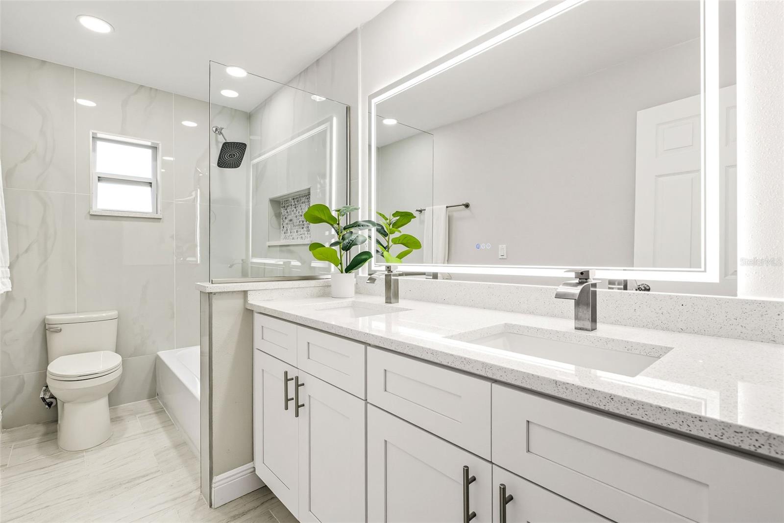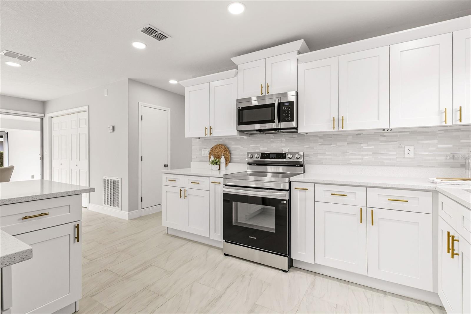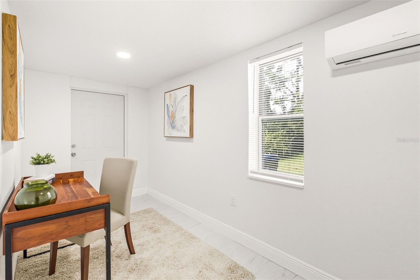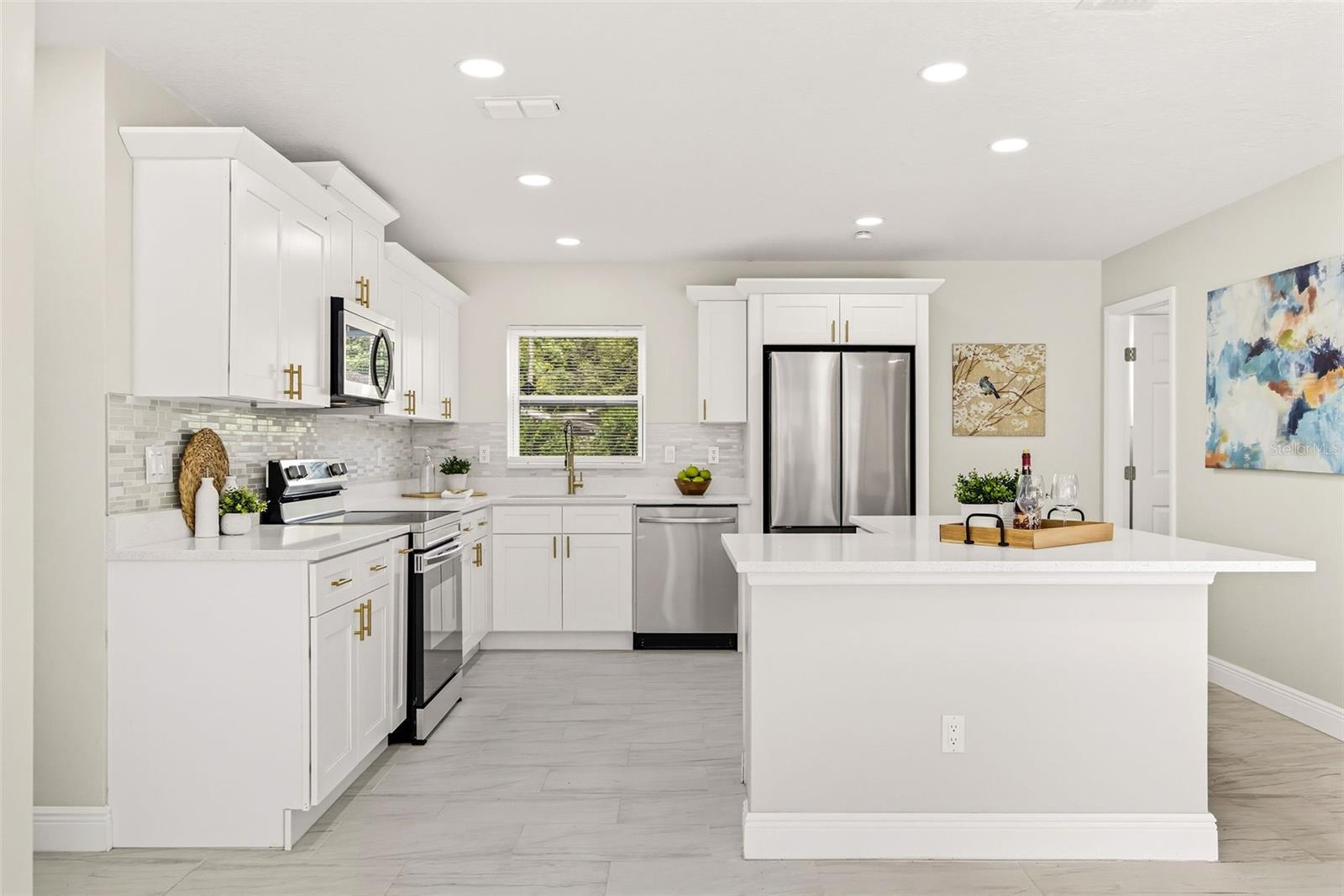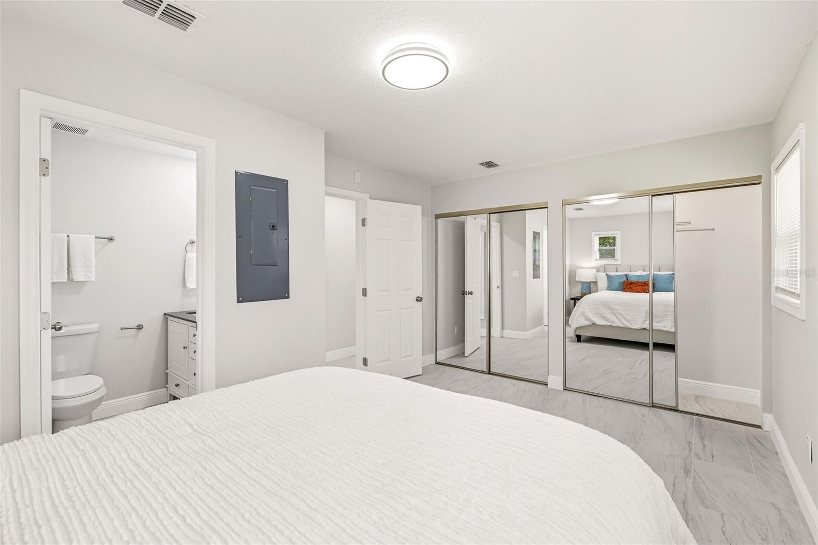 Welcome to this beautifully renovated home in the heart of Orlando, offering 3 bedrooms, 2 bathrooms, and 1, 500 square feet of thoughtfully designed living space. Completely updated in 2025, this residence combines modern finishes with functional design, making it truly move-in ready. Step inside to discover an open floor plan where the kitchen seamlessly connects to the dining area and living room. Two sets of oversized sliding glass doors flood the space with natural light and open to the expansive screened lanai, creating an effortless flow for indoor-outdoor living. A bonus room with its own mini-split air conditioning unit and private entrance provides the perfect space for a home office, studio, or guest retreat. Throughout the home, you’ll find new wide-plank tile flooring, extra-wide baseboards, recessed lighting, new light fixtures and fresh interior paint. The chef’s kitchen is the centerpiece of the home, featuring white shaker cabinetry with soft-close doors and drawers, quartz countertops, a spacious L-shaped island with seating for five, stainless steel appliances, and a stunning glass tile backsplash. The private primary suite offers dual built-in closets and a luxurious en-suite bathroom complete with a quartz-topped dual vanity, LED frontlit and backlit mirror, and a walk-in shower with upgraded tile. Two additional bedrooms share a beautifully updated full bath with floor-to-ceiling tile, a dual vanity with quartz countertop, LED frontlit and backlit mirror and a shower/tub combination. Outside, lush mature landscaping surrounds the property, creating a serene setting. Enjoy the spacious tiled screened lanai, perfect for relaxing or entertaining, as well as a charming cobblestone paved courtyard. Additional exterior upgrades include gutters, a freshly painted exterior (2025), and a covered carport. Located in the established community of Medallion Estates, this property is just minutes from SR 417 and SR 408, 20 minutes to Orlando International Airport, 16 minutes to downtown Orlando, and walking distance to Rising Stars at Conrad Academy. It’s also just a short drive to Barry School of Law, shopping, dining, and all that Orlando has to offer. This home is ready for you to make it your own and start creating lasting memories. Schedule your showing today! ROOF - 2025 HVAC - 2025 ELECTRICAL - 2012