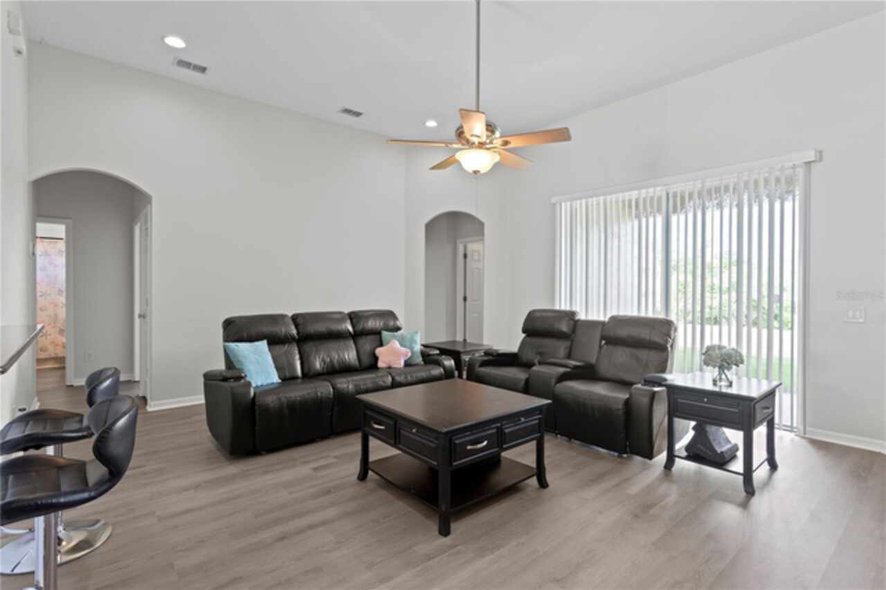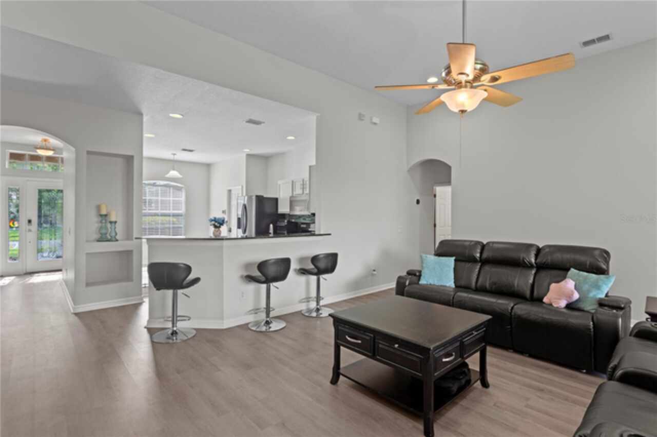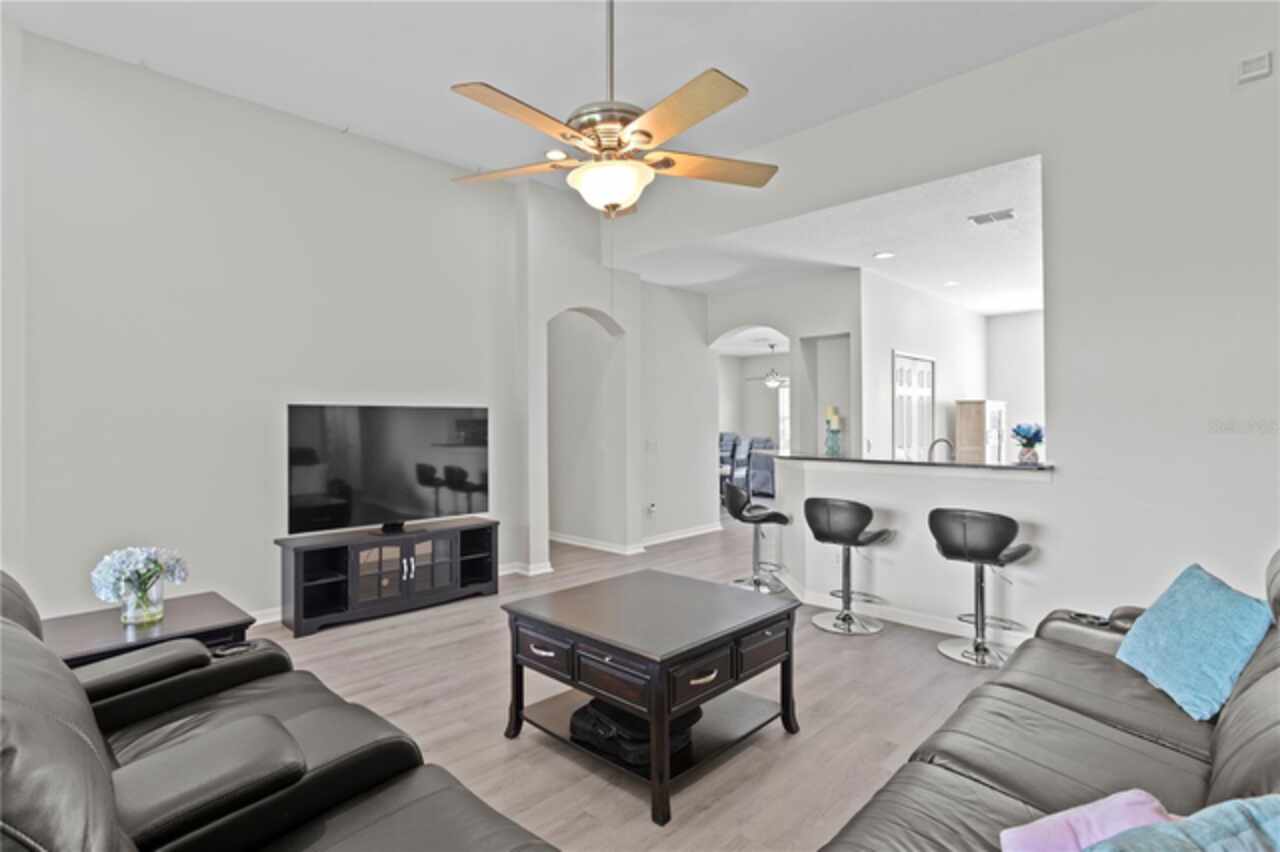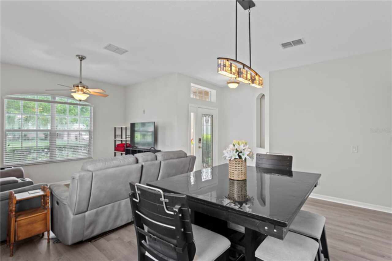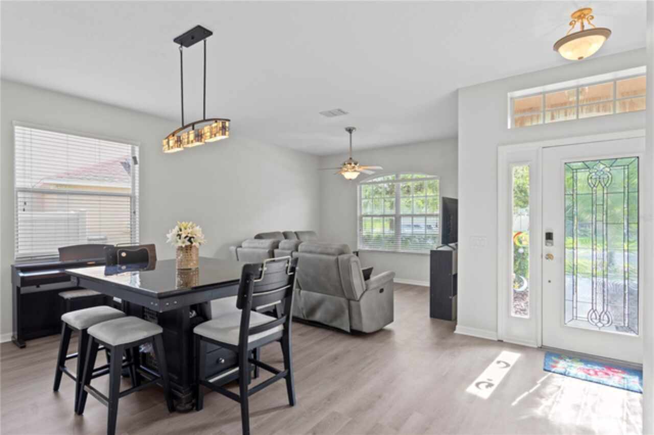 Under contract-accepting backup offers. Enjoy a peaceful, private view of conservation land from this 4 bedroom, 3 bathroom Easton Park home. A spacious 2, 248 square foot open floor plan begins with a formal living room and dining room with plenty of natural light. The eat-in kitchen has granite counters, stainless steel appliances, a pantry and a breakfast bar. The family room has sliders out to a covered lanai that overlook the backyard and conservation views. The primary bedroom suite has a walk-in closet and full bathroom with separate tub and double vanity. Three more bedrooms and two full bathrooms complete the living space, with one of the bedrooms offering a built-in Murphy Bed. Other features of this home include luxury vinyl plank flooring throughout, new interior paint, a new roof and newer HVAC (6 years), and access to Easton Park’s community pool, park and playground.