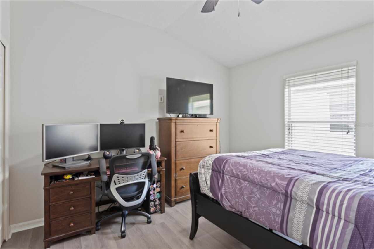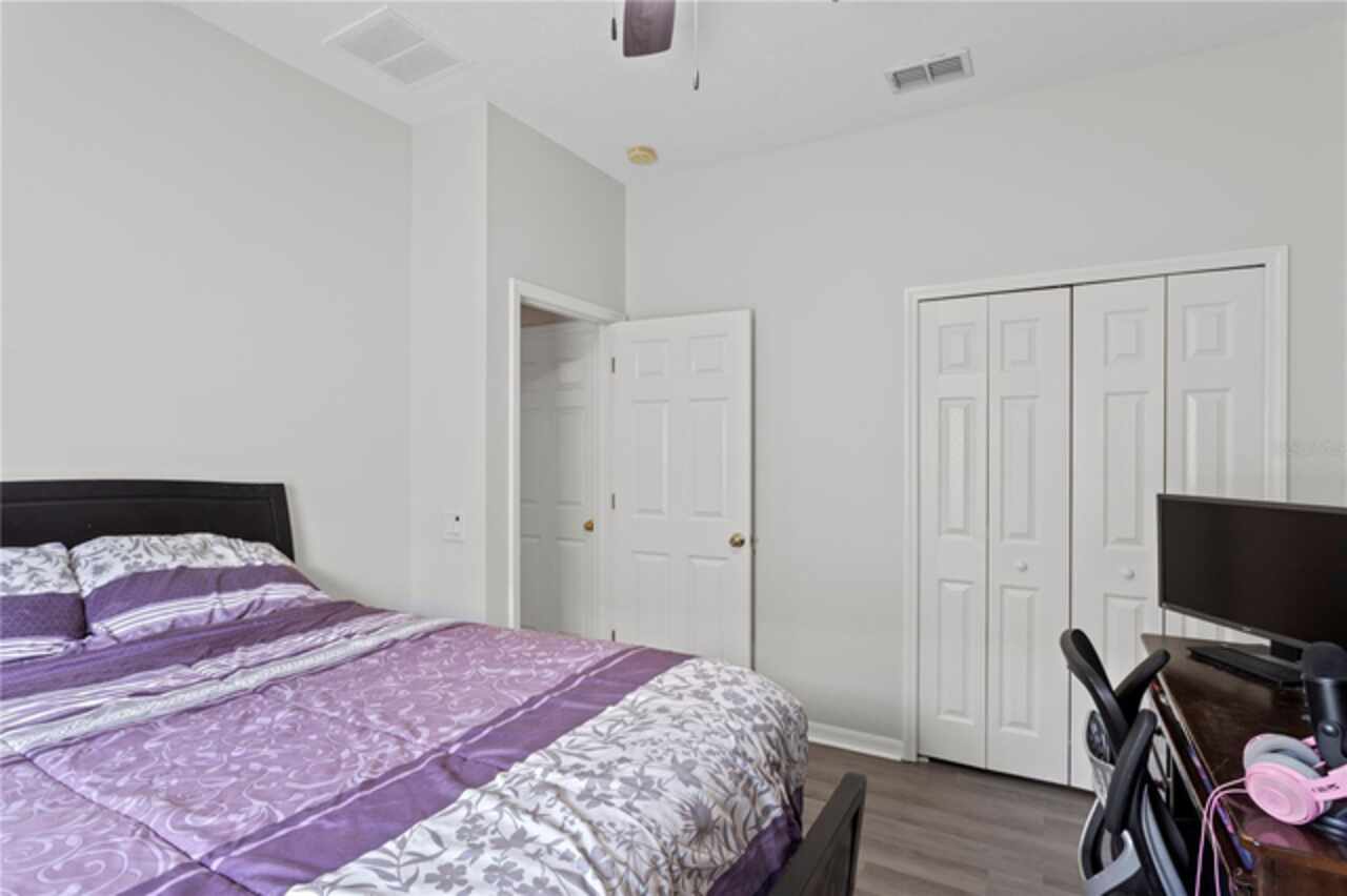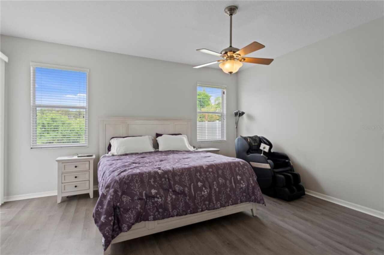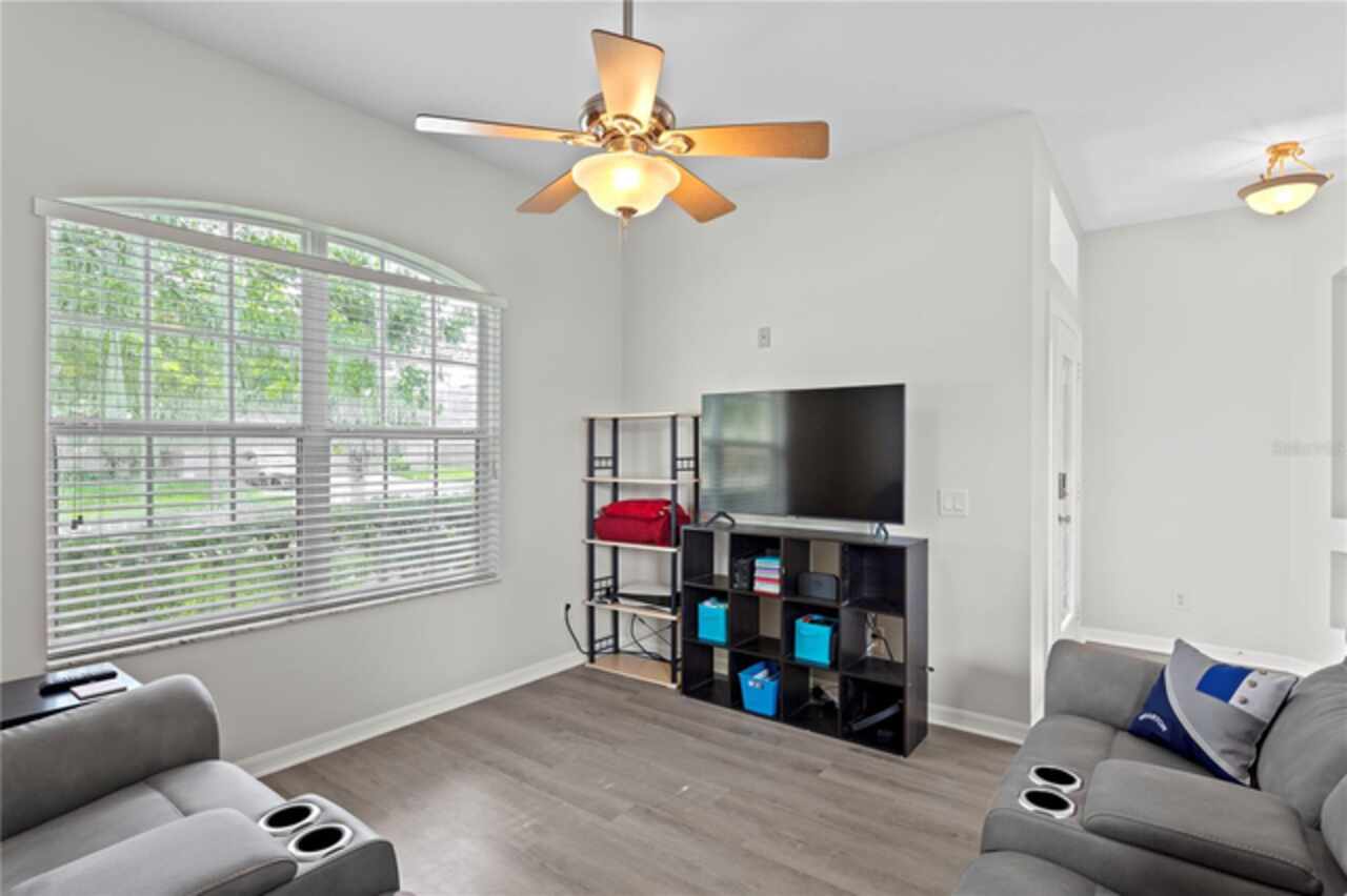 Under contract-accepting backup offers. Enjoy a peaceful, private view of conservation land from this 4 bedroom, 3 bathroom Easton Park home. A spacious 2, 248 square foot open floor plan begins with a formal living room and dining room with plenty of natural light. The eat-in kitchen has granite counters, stainless steel appliances, a pantry and a breakfast bar. The family room has sliders out to a covered lanai that overlook the backyard and conservation views. The primary bedroom suite has a walk-in closet and full bathroom with separate tub and double vanity. Three more bedrooms and two full bathrooms complete the living space, with one of the bedrooms offering a built-in Murphy Bed. Other features of this home include luxury vinyl plank flooring throughout, new interior paint, a new roof and newer HVAC (6 years), and access to Easton Park’s community pool, park and playground.