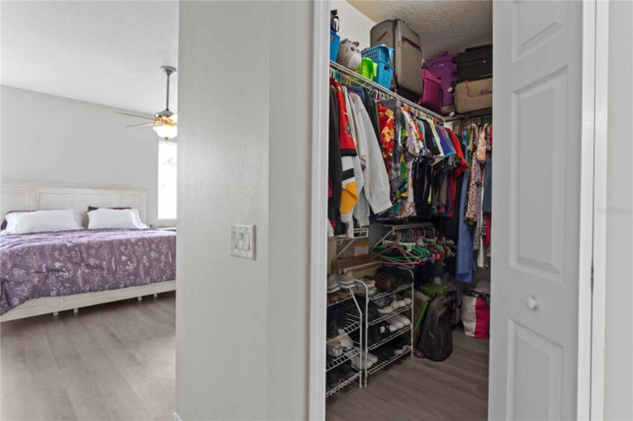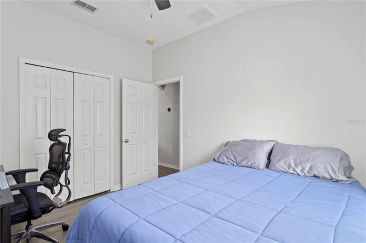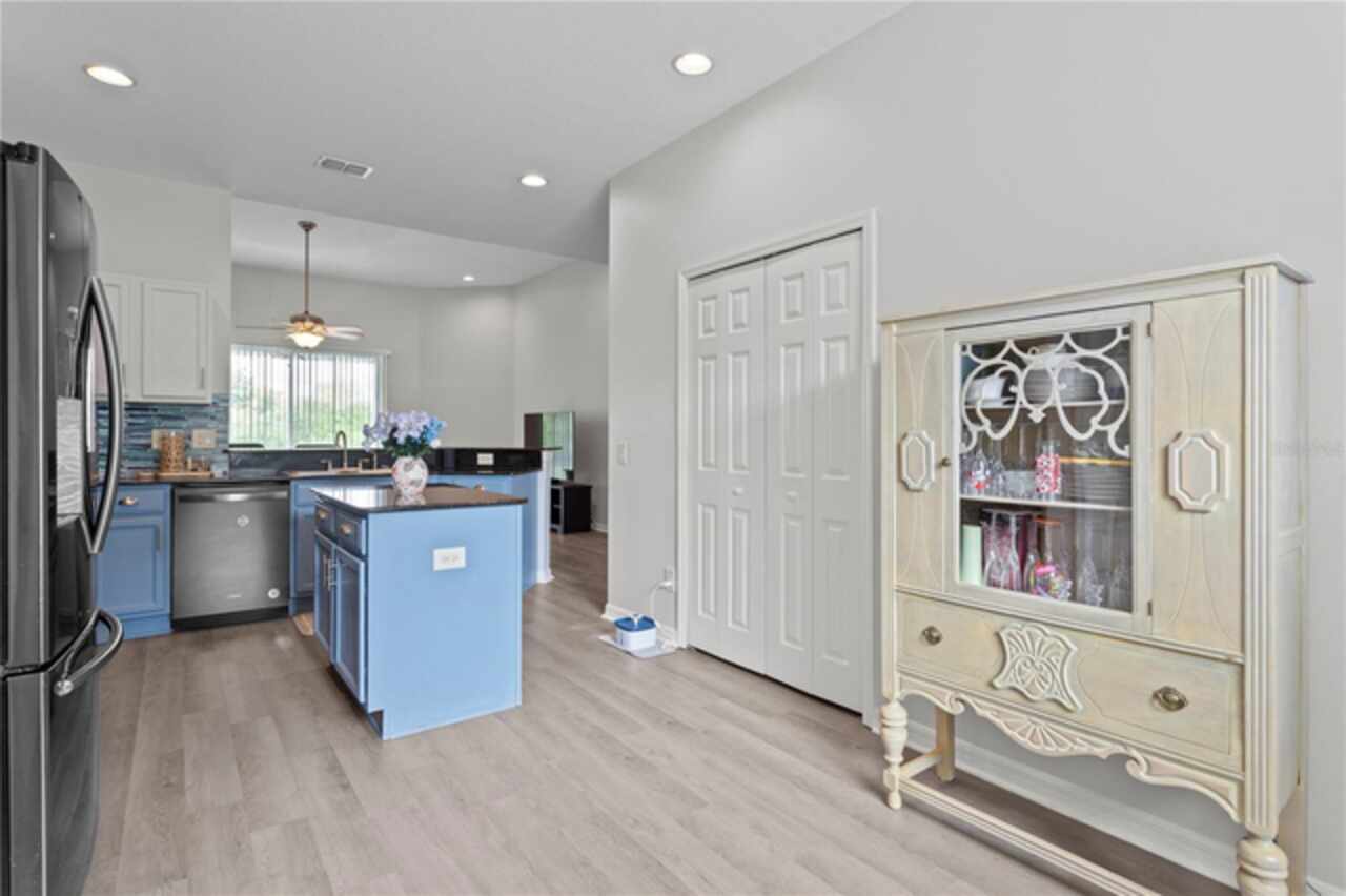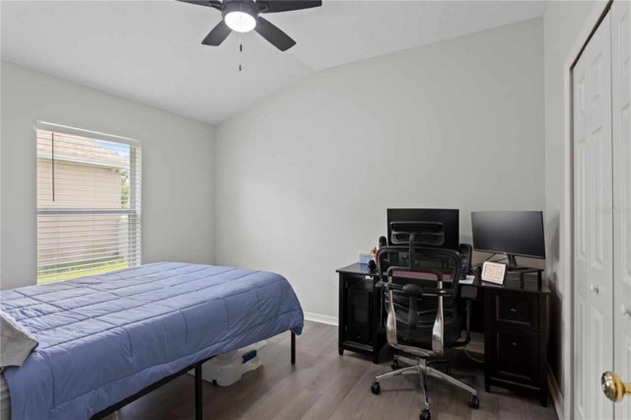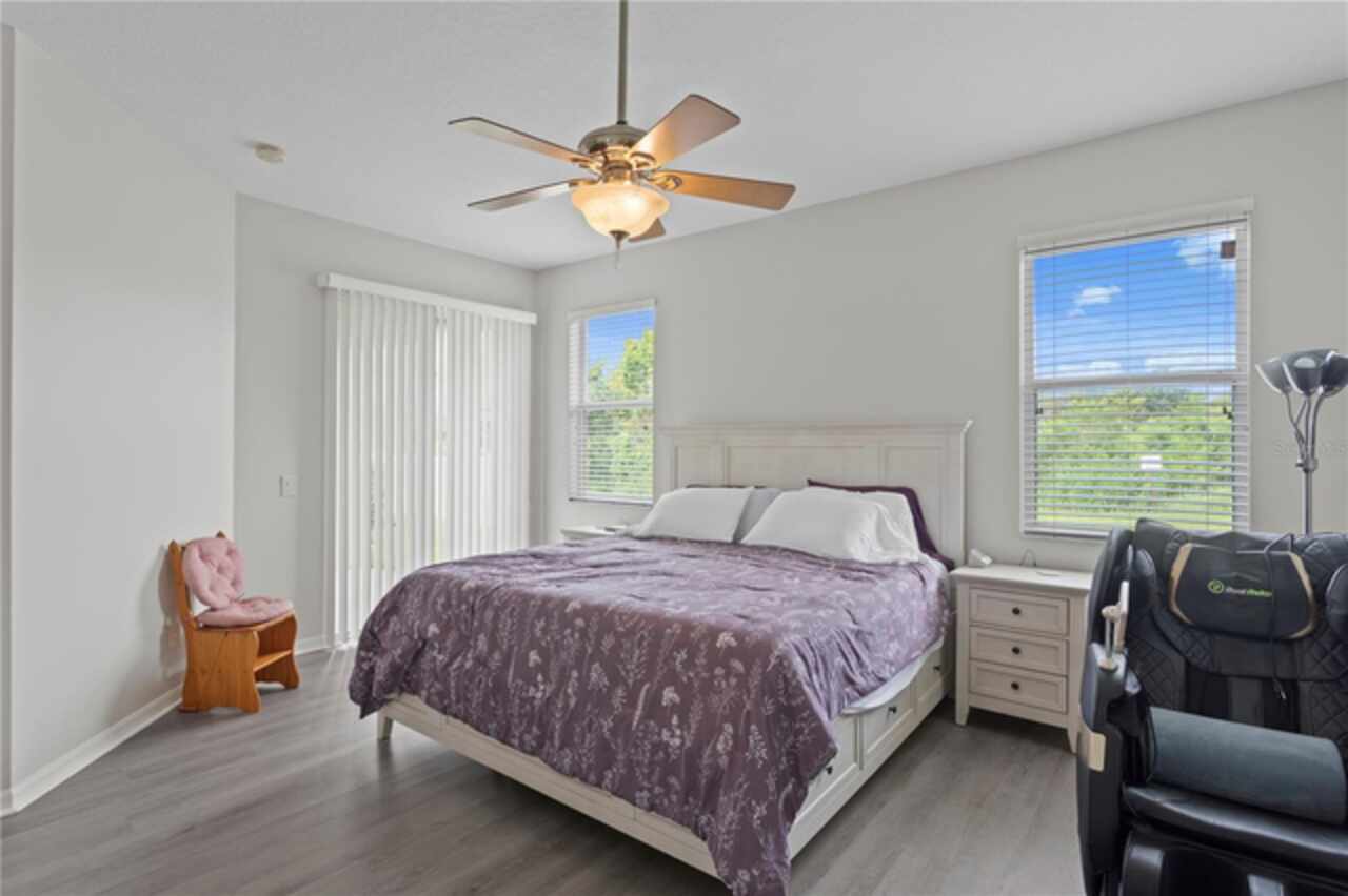 Under contract-accepting backup offers. Enjoy a peaceful, private view of conservation land from this 4 bedroom, 3 bathroom Easton Park home. A spacious 2, 248 square foot open floor plan begins with a formal living room and dining room with plenty of natural light. The eat-in kitchen has granite counters, stainless steel appliances, a pantry and a breakfast bar. The family room has sliders out to a covered lanai that overlook the backyard and conservation views. The primary bedroom suite has a walk-in closet and full bathroom with separate tub and double vanity. Three more bedrooms and two full bathrooms complete the living space, with one of the bedrooms offering a built-in Murphy Bed. Other features of this home include luxury vinyl plank flooring throughout, new interior paint, a new roof and newer HVAC (6 years), and access to Easton Park’s community pool, park and playground.