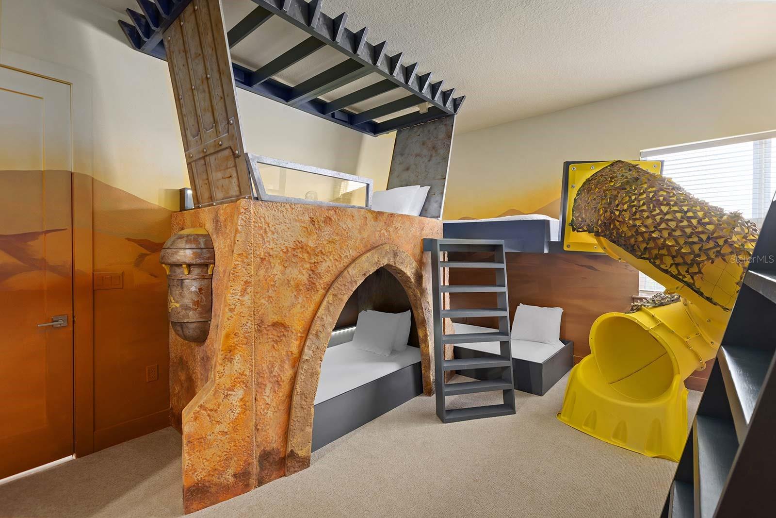 Welcome to 2013 Oak Creek Loop, a beautifully upgraded retreat in one of Davenport’s most desirable resort communities. This spacious home blends modern design, exceptional amenities, and an unbeatable location moments from Orlando’s world class attractions. Step through the front door and you are welcomed by soaring ceilings and an open concept layout that feels both stylish and relaxed. The great room offers generous gathering space with Mid Century inspired touches, perfect for everyday living and hosting friends and family. Just beyond, the chef’s kitchen delivers the ideal blend of form and function with stainless appliances, crisp white cabinetry, a large breakfast bar, and a dining area that can easily accommodate group meals or cozy weeknight dinners. Movie lovers and gamers will appreciate the private theater and arcade space, complete with plush seating, an oversized screen, and classic arcade favorites. When it is time to unwind, head outside to your private screened pool and spa. There is plenty of room to lounge, grill, dine, and enjoy Florida’s sunshine year round. Upstairs, a versatile loft provides a second living area perfect for working from home, watching TV, or hosting game nights. Families will adore the one of a kind themed bedroom designed as a frontier style desert hideaway with climbing features, slides, and hidden bunk spaces. The walk in closet even opens up to a secret game room that kids will love. The additional bedrooms offer peaceful, hotel style comfort with king and queen suites located both upstairs and downstairs. Each features thoughtful design, high quality finishes, and private or nearby baths. The upstairs primary suite is especially spacious with a walk in closet and a generous en suite bathroom with dual sinks, soaking tub, and separate shower. Living in this community means having incredible amenities at your fingertips. Homeowners enjoy access to a resort pool with lazy river, water slide, fitness center, tennis courts, scenic walking areas, and the exclusive Villatel Village playground and event spaces. All of Orlando’s top destinations are within easy reach, including Disney, Universal, SeaWorld, International Drive, and major shopping and dining districts. Whether you are seeking a primary residence, a vacation home, or a turnkey investment property, 2013 Oak Creek Loop offers unmatched flexibility, comfort, and lifestyle appeal. Schedule your private showing today.