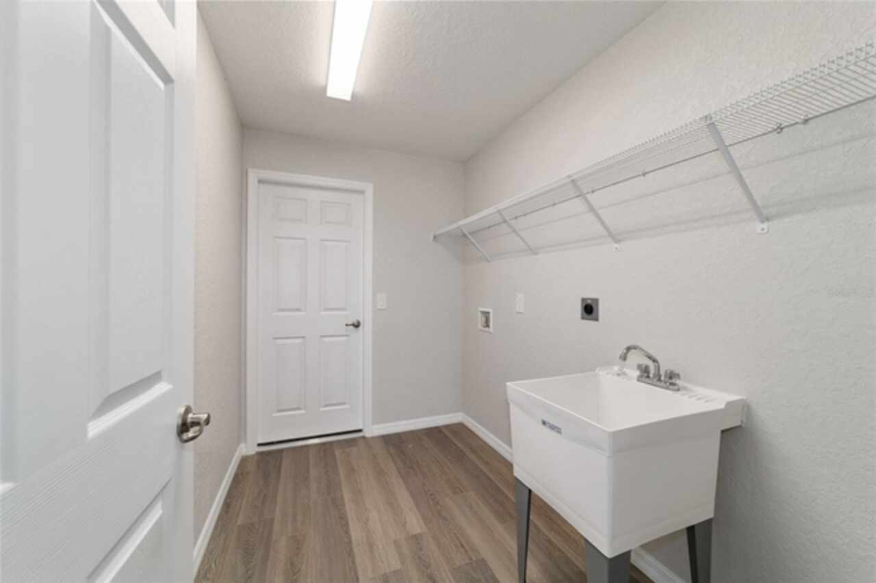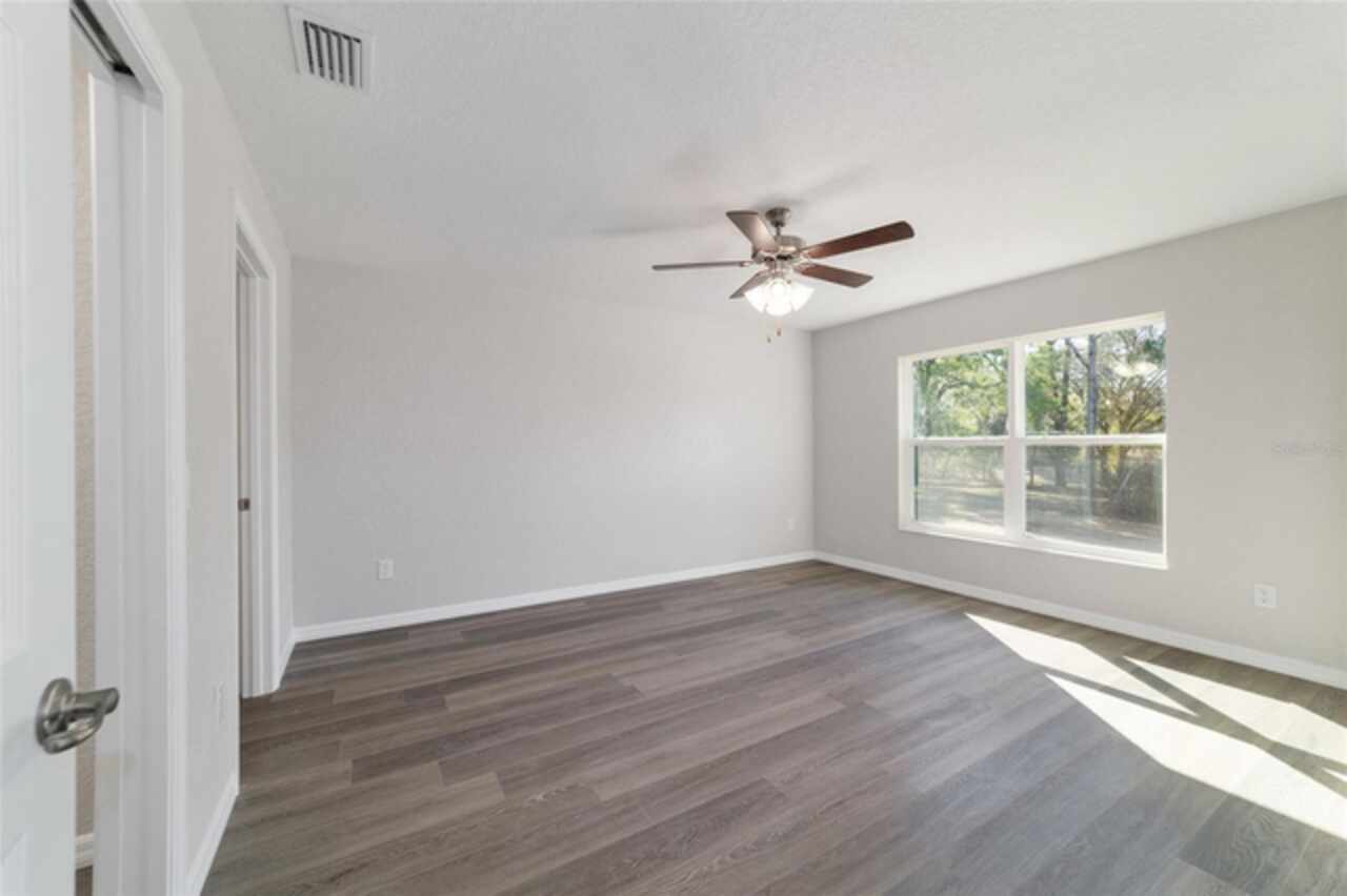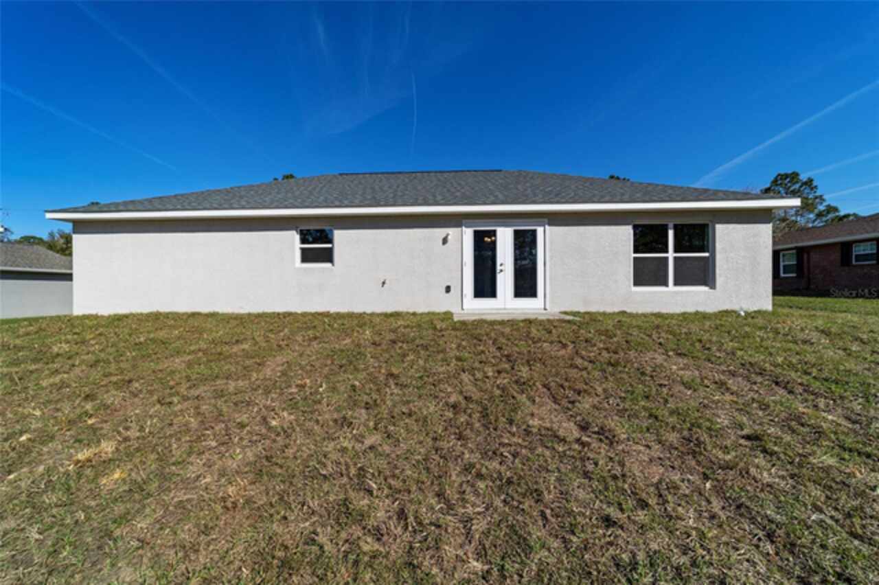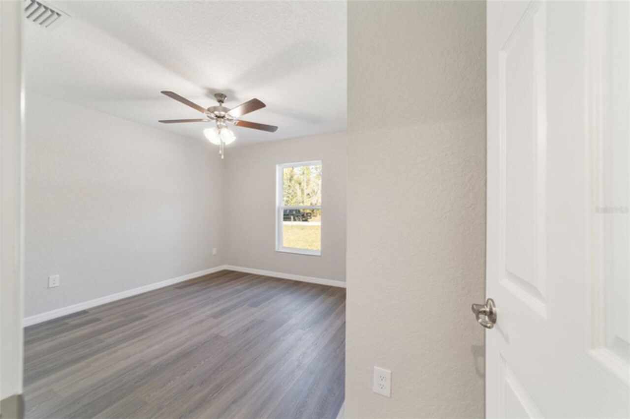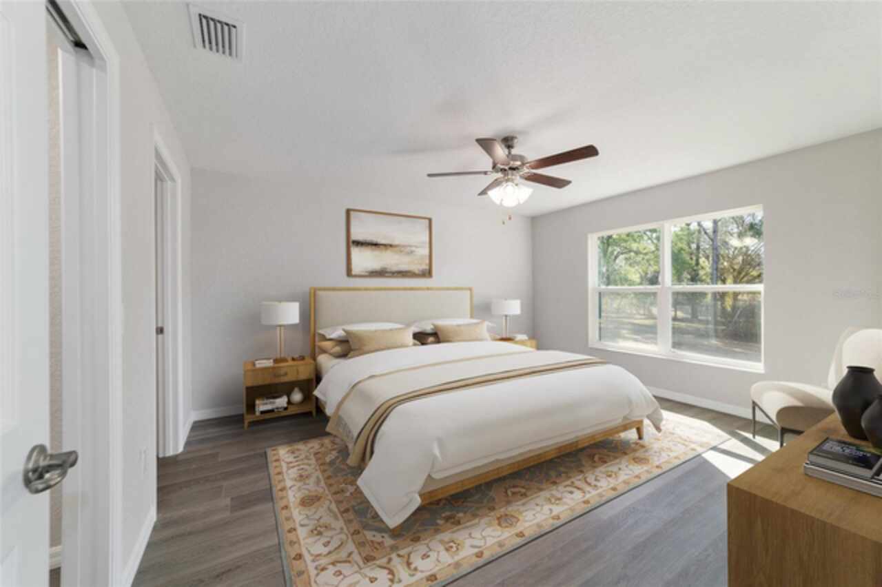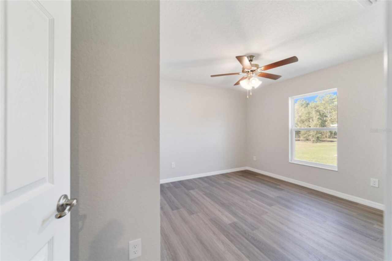 Spacious, brand new Alamo RaNae Model Home with Upscale FULLY COMPLETED AND READY FOR IMMEDIATE OCCUPANCY. Charming home, perfectly situated between on almost 1 acre in Dunnellon with easy access to Ocala. This peaceful residence is designed for comfort and functionality, offering a desirable open floor plan with cathedral ceilings and luxury vinyl plank flooring throughout. The heart of the home is the gorgeous kitchen, featuring a large center island, shaker cabinets with crown molding and with soft-close hinges, granite countertops, a hide-away trash bin, a pantry, and stainless steel appliances. The adjacent dining area, with French doors, overlooks the spacious backyard, perfect for pets or entertaining. The spacious living room accommodates large furniture and gatherings with ease. This home features a split-bedroom floor plan for added privacy. The master suite includes a walk-in closet, dual vanities with granite countertops, a tiled walk-in shower, and a water closet. The guest bedrooms are generously sized, while the guest bathroom offers dual vanities and a tiled shower/tub combo. Additional conveniences include multiple linen closets, a separate laundry room, and a two-car garage, AND and irrigation system. Located in a quiet neighborhood, just minutes from shopping, dining, and entertainment, this home is a rare opportunity! Floor plan displayed is our standard plan and garage orientation may vary on actual home. Interior and exterior colors, finishes, and garage orientation will vary for actual home. Information is deemed correct, but no guarantee made. Any dimensions listed are approximate.