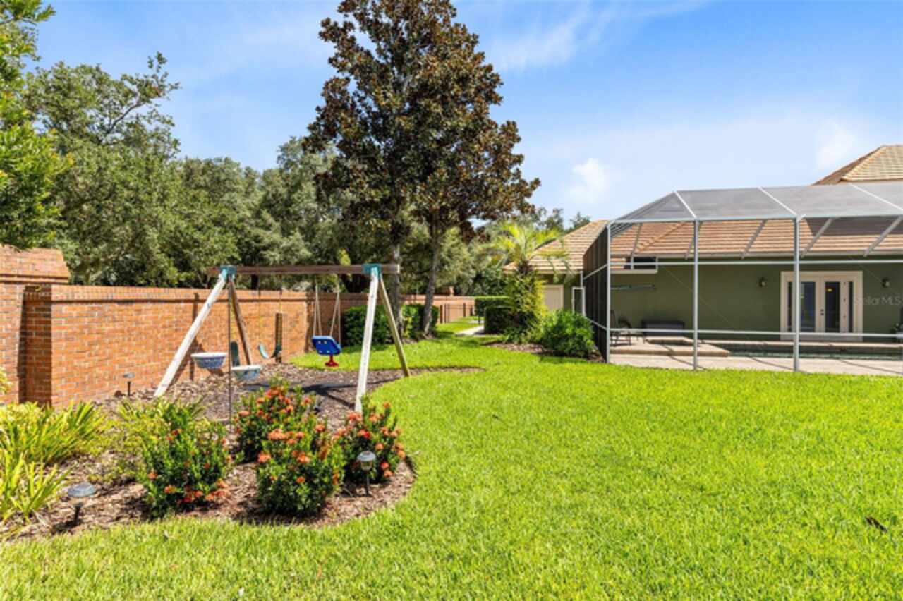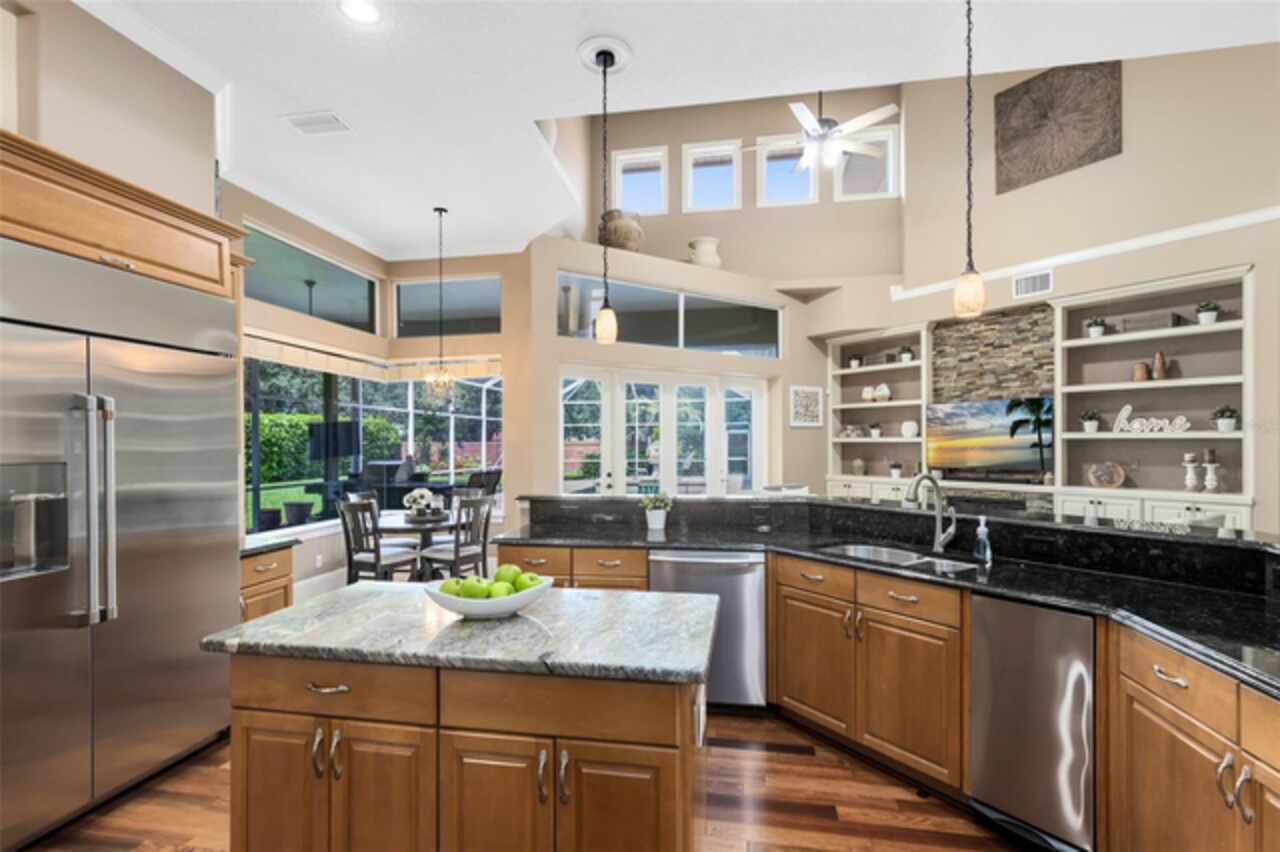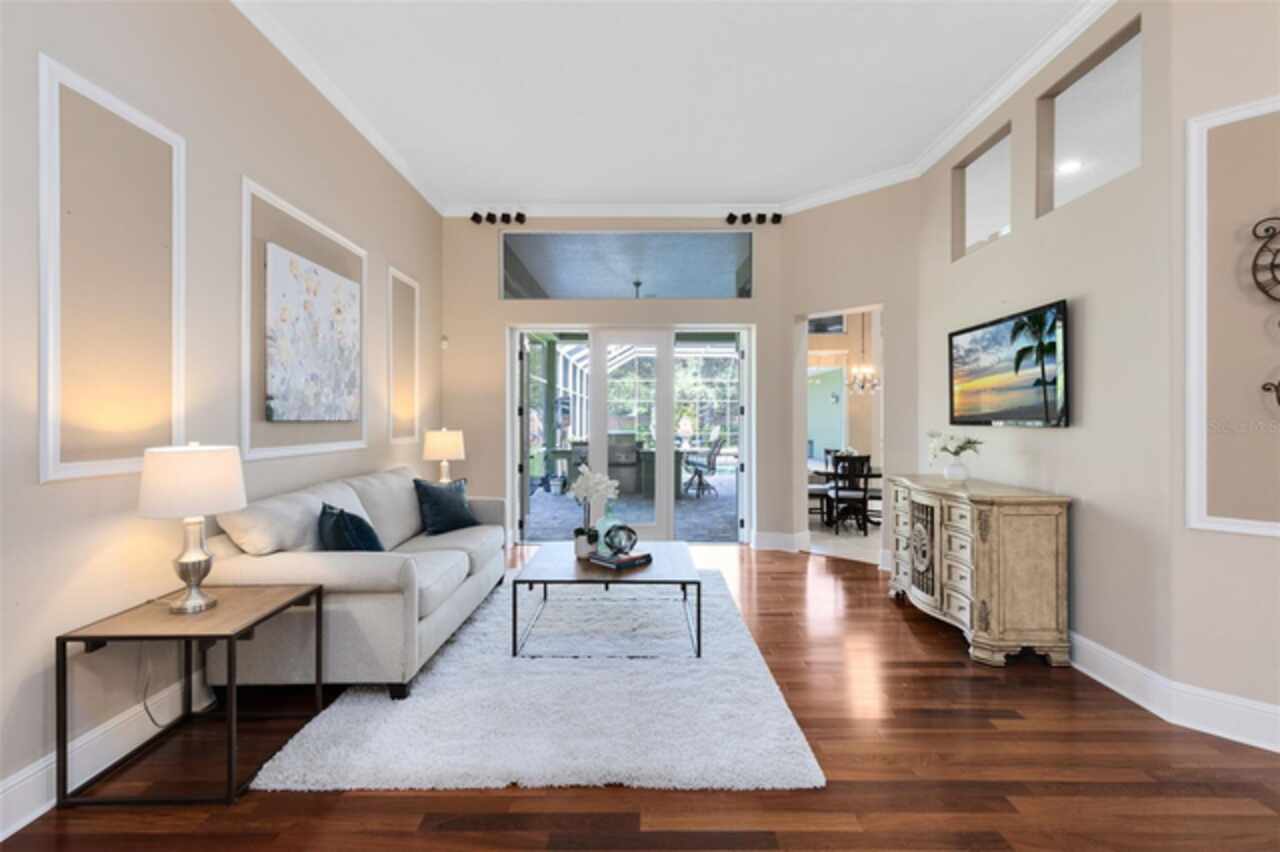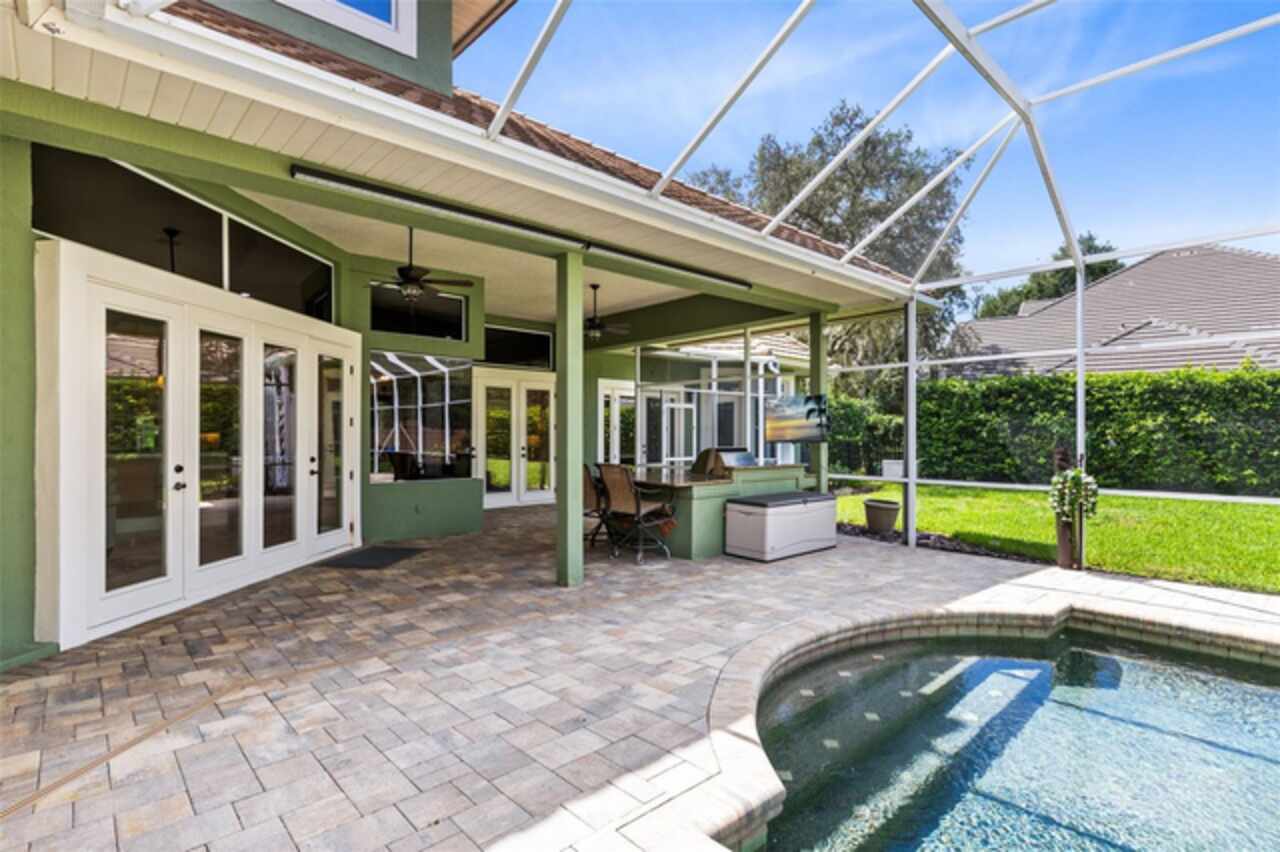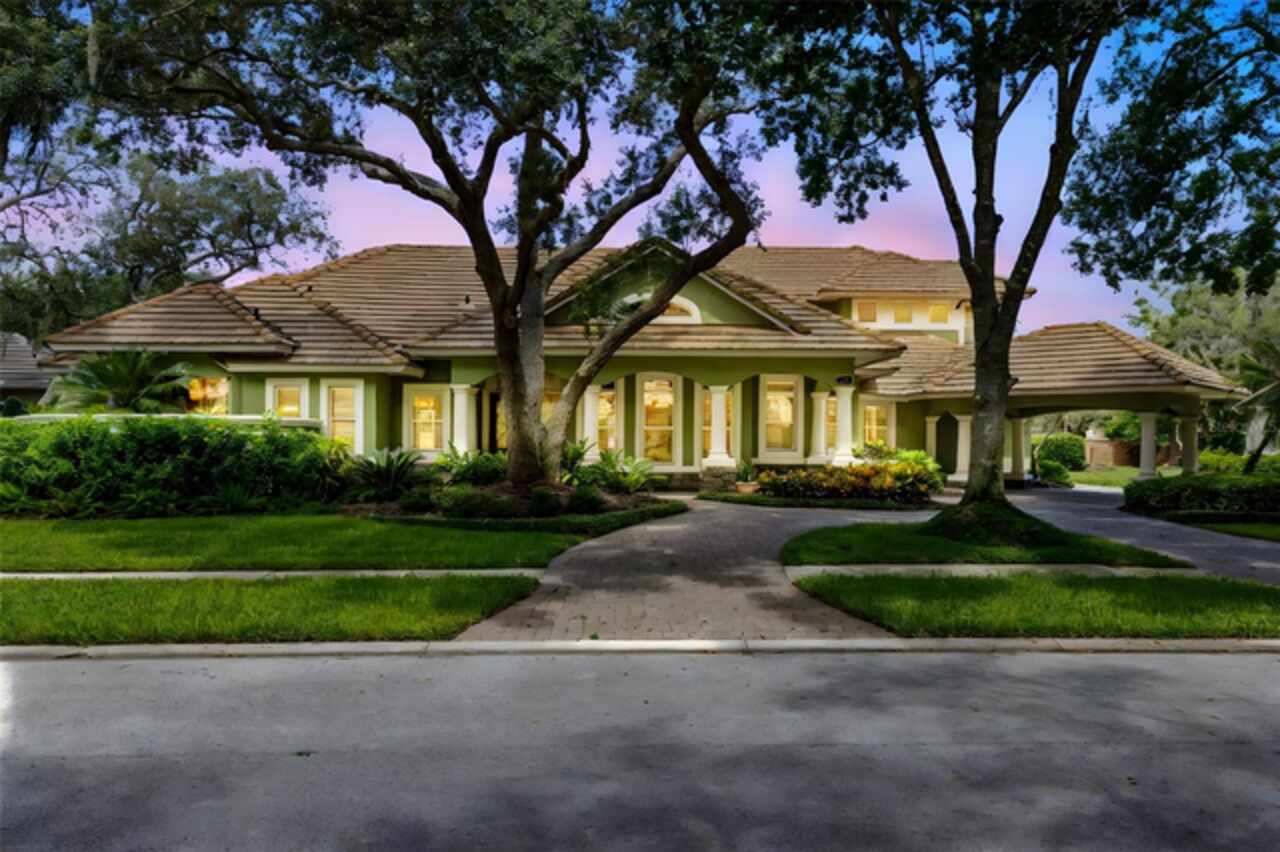 Unique, custom-built home on one half acre in the prestigious gated community of Arrowhead, the jewel of Tuscawilla. This estate is surrounded by private residences with tile roofs and stunning elevations, offering unmatched curb appeal with a travertine-adorned front porch, decorative columns, and a brick-paver circular drive with a portico leading to a rear-facing oversized three-car garage. Inside, soaring ceilings with crown molding, decorative trays, transom windows, and custom wrought-iron entry doors create an impressive atmosphere. A magnificent double front door and separate “friends and family” entry welcome you into a thoughtfully designed floor plan. The primary suite features two walk-in closets, a luxurious bath with a one-of-a-kind bubbler tub, dual copper sinks, vanity area, abundant counter space, and handsome lighting. An adjacent study could serve as a sixth bedroom if desired. Additionally, the primary bedroom and secondary bedroom, the living room, family room, and study all encircle the pool and patio area for the ultimate entertaining layout. One guest suite even offers a private patio retreat. The gourmet kitchen is a chef’s dream with 42”+ wood cabinetry with crown molding, granite countertops, large pantry, and a spacious center island. Appliances include a Café built-in refrigerator/freezer, KitchenAid stainless steel double ovens and microwave, five-burner gas cooktop, KitchenAid trash compactor, and Miele dishwasher. The butler’s pantry, conveniently located off the kitchen and dining room, offers wine storage and abundant cabinetry. The family room features an electric fireplace with custom cabinetry, while the formal living and dining areas showcase beautiful cherry wood flooring. A giant laundry room includes Maytag washer and dryer, floor-to-ceiling cabinetry, quartz countertops, backsplash, and a utility sink. Upstairs, a gently curved stairwell leads to a large bonus room with en-suite bath, ideal as a fifth bedroom, guest suite, media/game room, or man cave. A massive air-conditioned storage room is also located upstairs. Highlights include: • 4 full and 1 half baths • Two air-conditioning systems with UV filtration • Whole-house water filtration system • Dual hot water heaters, including one tankless • 9-foot interior doors with ceiling heights ranging from 10–20 feet • French doors across the back of the home, including mitered glass in the family room • New designer lighting fixtures • Recessed lighting and 8” baseboards throughout • Recent 4-point inspection confirming the top-of-the-line tile roof’s long remaining life • Dramatic exterior and landscape lighting The outdoor oasis features a huge heated saltwater pool and spa with cantilever edge, brick-paver patio, large covered porch, and outdoor bar with Lynx grill. Lush landscaping, privacy hedges, and a brick wall enclose the backyard, creating space for entertaining, fun, and pets to play. This one-of-a-kind estate combines timeless elegance, modern upgrades, and thoughtful details in one of Tuscawilla’s most sought-after neighborhoods.