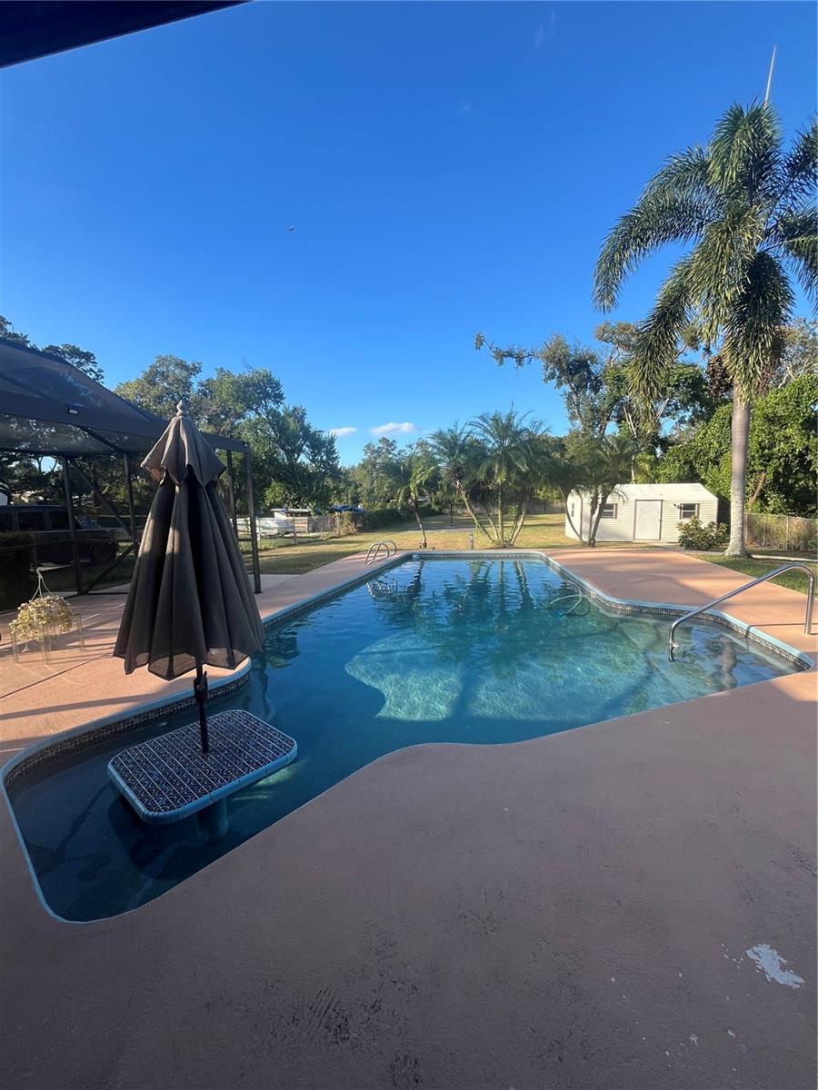 PRICE DECREASE! A gem of a home in the city in a great central location. A spacious layout with over 2000 square feet this 3 bedroom split plan, 3 bath pool home sits on a half acre with a nice large backyard. As you enter the front door the room can be a living/dining/sitting room and includes a closet for storage. A roomy kitchen has lots of cabinet storage with both a breakfast bar and space for a eat-in kitchen. The kitchen overlooks the family room and both look out to the screened patio and pool area with a billiard table to enjoy and entertain your guests. The pool has a swim up table with umbrella and stools as well as a convenient pool bath. The fenced backyard includes a storage workshop with electric and a pad used as a basketball court is great for family gatherings. Other features include: NO CDD, NO HOA, this home is not in a flood zone, no carpet and includes a security system. This location is easily accessible to I-275 and other major roads, many restaurants, shopping, and public transportation. Take a look today!
