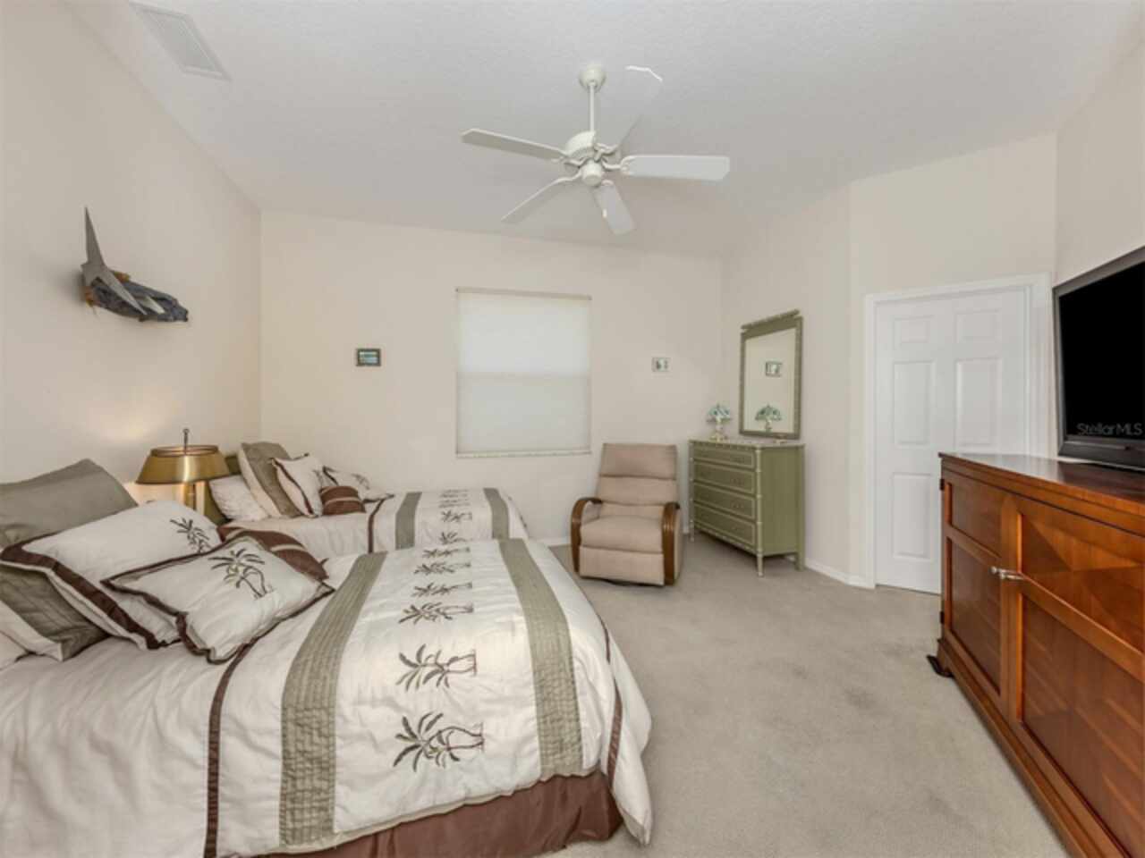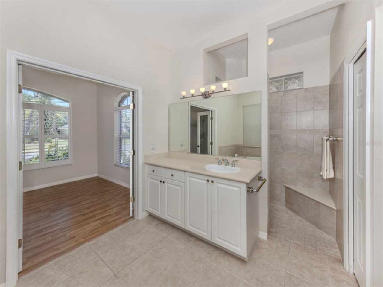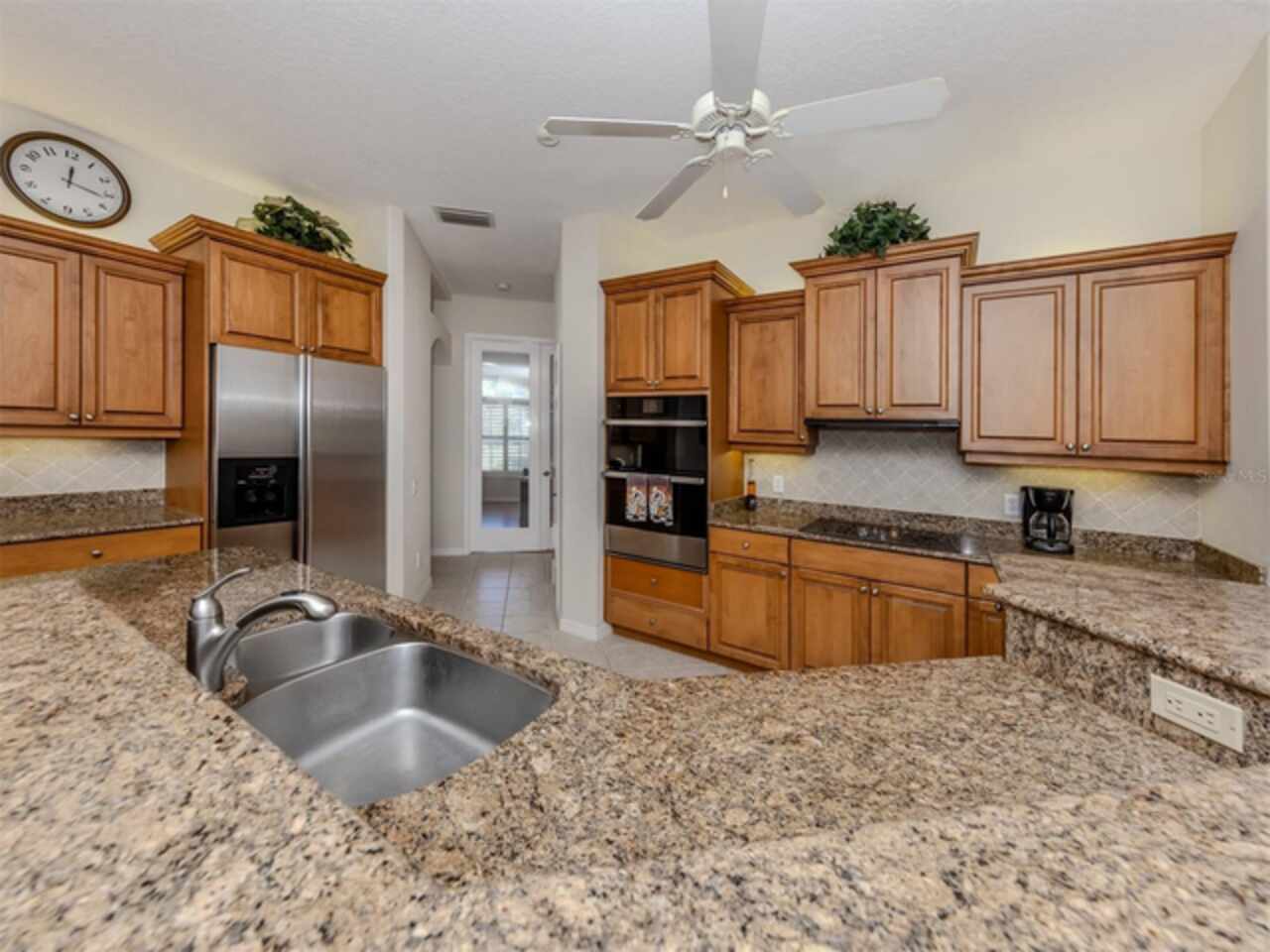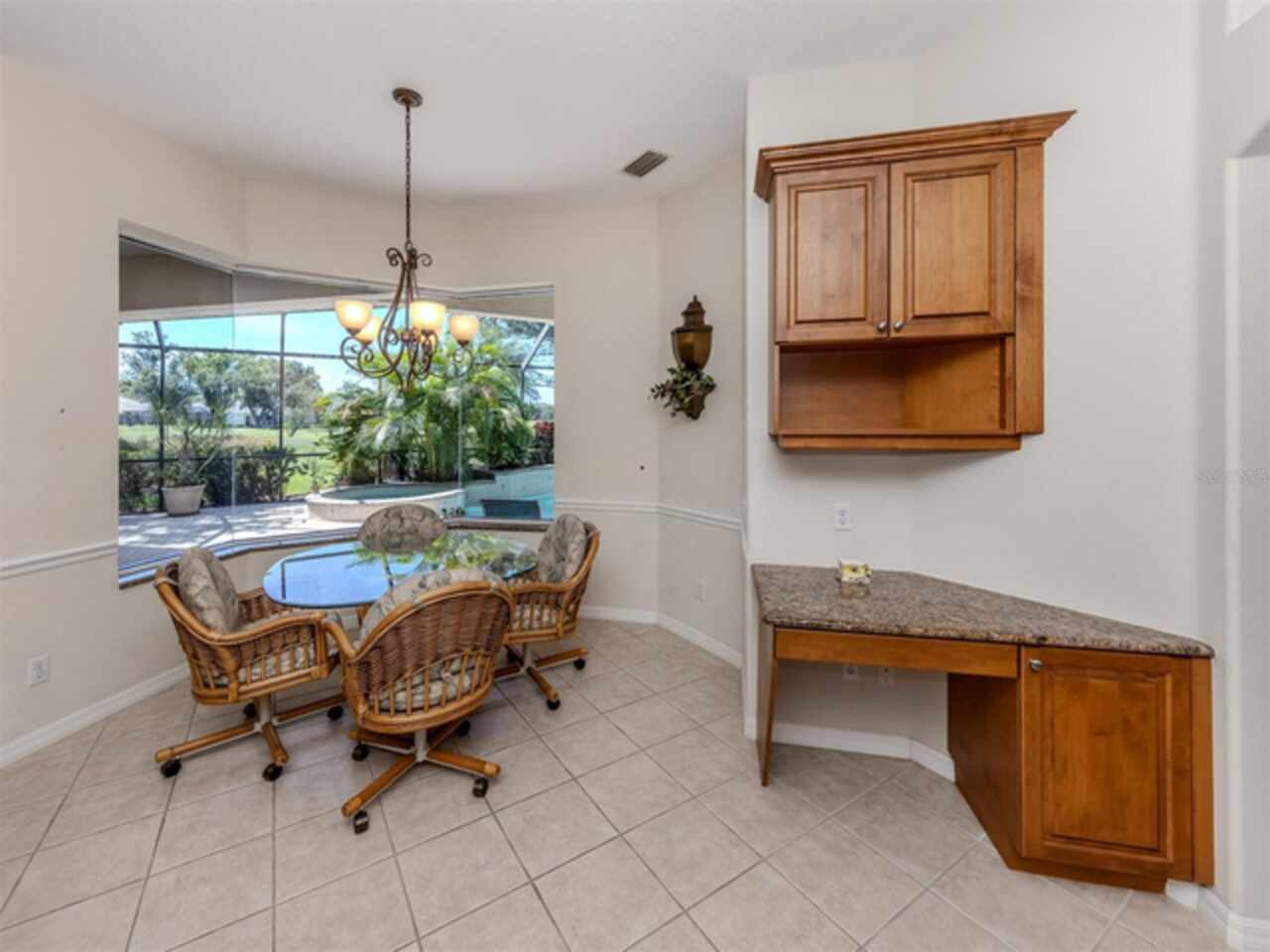 Experience luxury living in this beautiful custom home, positioned with serene views down the 11th fairway and a peaceful lake. Boasting spacious bedrooms, a private study, versatile bonus room and a split floor plan ensuring privacy, this residence offers comfort and flexibility. Notable features include volume and tray ceilings, crown molding, and a new roof in 2024. The well-designed kitchen is a chef's dream, featuring maple cabinetry, granite countertops, walk-in pantry, built-in desk and breakfast bar. It opens seamlessly to the breakfast nook with its aquarium windows and a welcoming family room, highlighted by sliding glass doors that lead out to the lanai. For formal occasions, enjoy the elegant dining room and living room with slider access to the lanai. Entertain effortlessly outdoors with a sparkling pool and spa, complemented by a fully equipped outdoor kitchen. The primary suite is set apart behind French doors and offers direct access to the lanai. Its luxurious bath includes a Roman shower, dual vanities, a garden tub and French doors opening to an attached bonus room. The driveway and lanai deck are beautifully finished with pavers for added curb appeal. In the gated community of Calusa Lakes, this home offers access to tennis courts, social activities, and is just minutes from the beach. Golf membership is optional, adding flexibility to your lifestyle.
