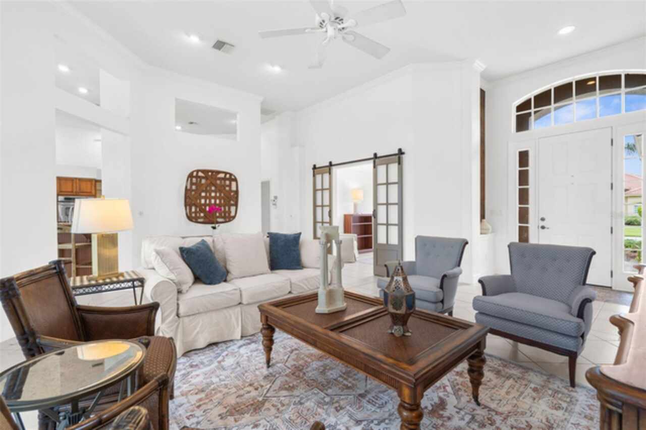 Under contract-accepting backup offers. Stunning Pool Home in Calusa Lakes – Minutes from the Beach! Welcome to your Florida dream retreat in the sought-after gated community of Calusa Lakes. This beautifully updated 3-bedroom, 2.5-bathroom residence offers a perfect blend of luxury, comfort, and functionality. Interior Highlights: • Soaring high ceilings and a spacious den with newly added barn doors (2025) • Elegant linear electric fireplace with a designer accent wall (2025) and remodeled inset accent wall in foyer • NEWER TILE ROOF (2020), Central vacuum, 2-zone HVAC (2018), and fully re-piped (2005) for peace of mind • Chef’s kitchen with granite countertops, solid wood cabinets, newer appliances, walk-in closet pantry, new backsplash near stove and a large island with sink and • Spa-like primary bathroom featuring a glass shower wall, footless contemporary tub, and dual quartz vanities • Tile floors throughout including contemporary wood-look tile; New Interior Paint in several rooms • Fabulous open floor plan with walls of windows with beautiful view of the course and pool areas. Outdoor Oasis: • Heated pool with a new Clear Vue cage (2025), Heat Pump (2014) with a stunning view of the golf course. • Features the convenience of a pool bath and outdoor shower, under cover and open areas all offering a totally private retreat. • Lanai is located close to the kitchen allowing the convenience of entertaining and invites the outside in – expanding your entertaining area • Updated landscaping (2025) • Spacious 2-car garage with storage cabinets, attic is walkable and an ample driveway too! Community Perks: Located in Calusa Lakes, enjoy access to tennis courts, vibrant social activities, and the flexibility of optional golf membership. All just a short drive to the gulf beaches, dining, and shopping. Many updates have already been completed - home is waiting for your personal touch! Reach out today!