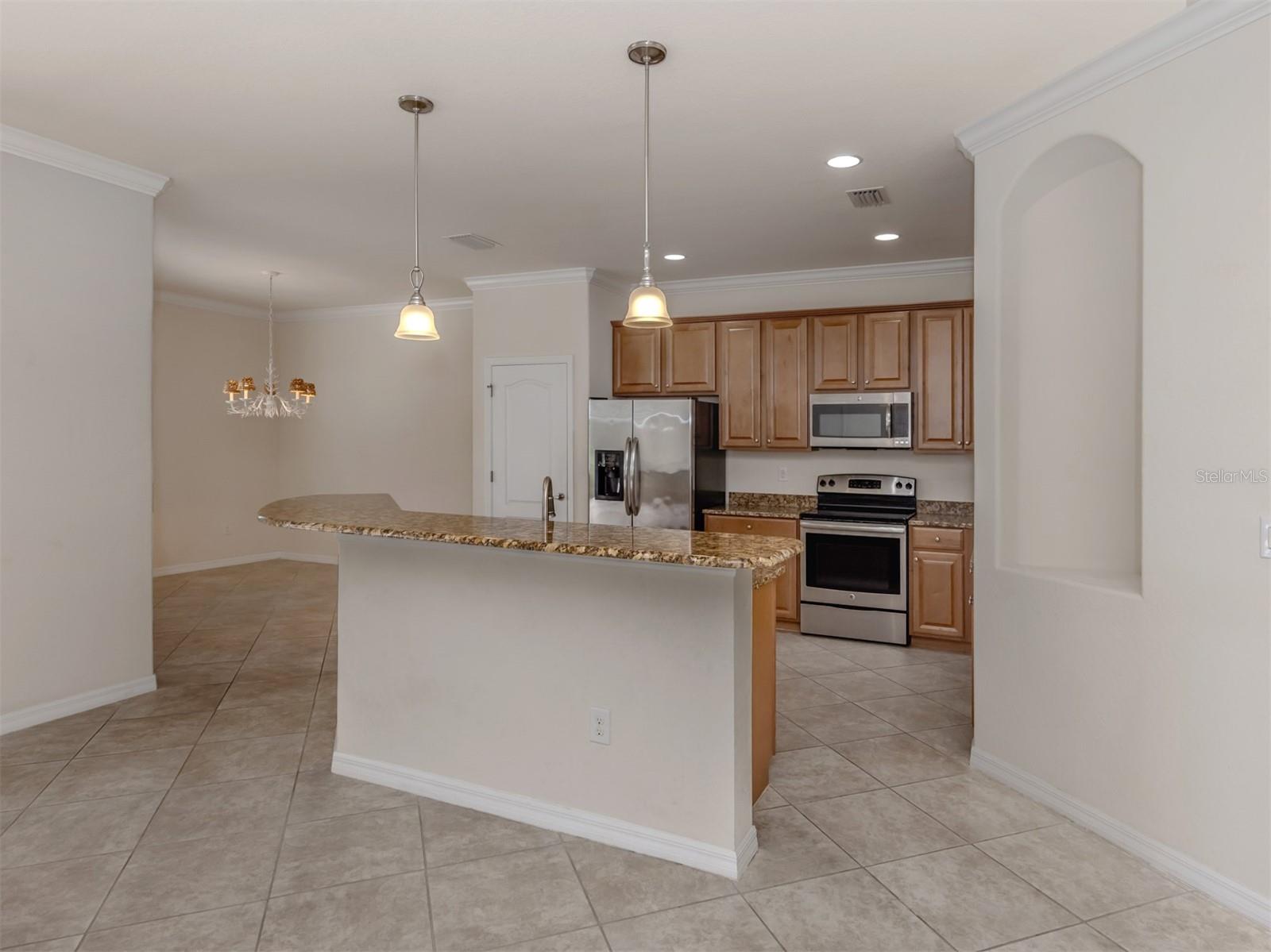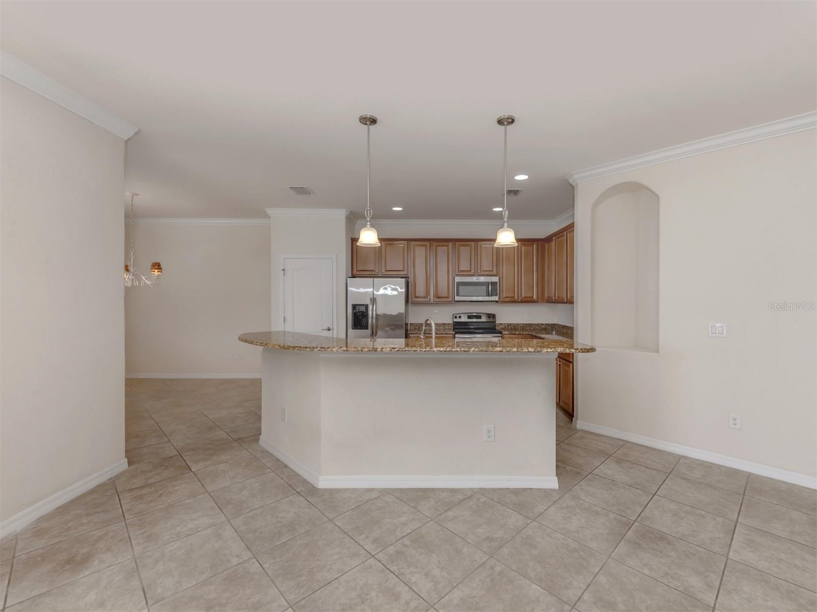 Ceiling Fans(s), Crown Molding, Eat-in Kitchen, High Ceilings, In Wall Pest System, Open Floorplan, Solid Surface Counters, Solid Wood Cabinets, Split Bedroom, Stone Counters, Tray Ceiling(s), Walk-In Closet(s)