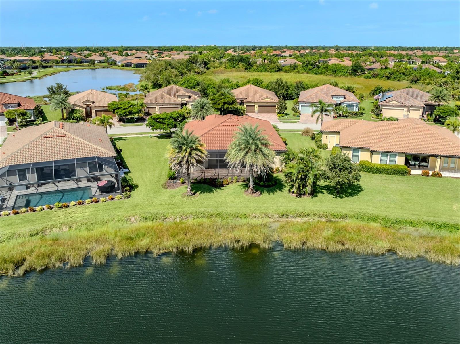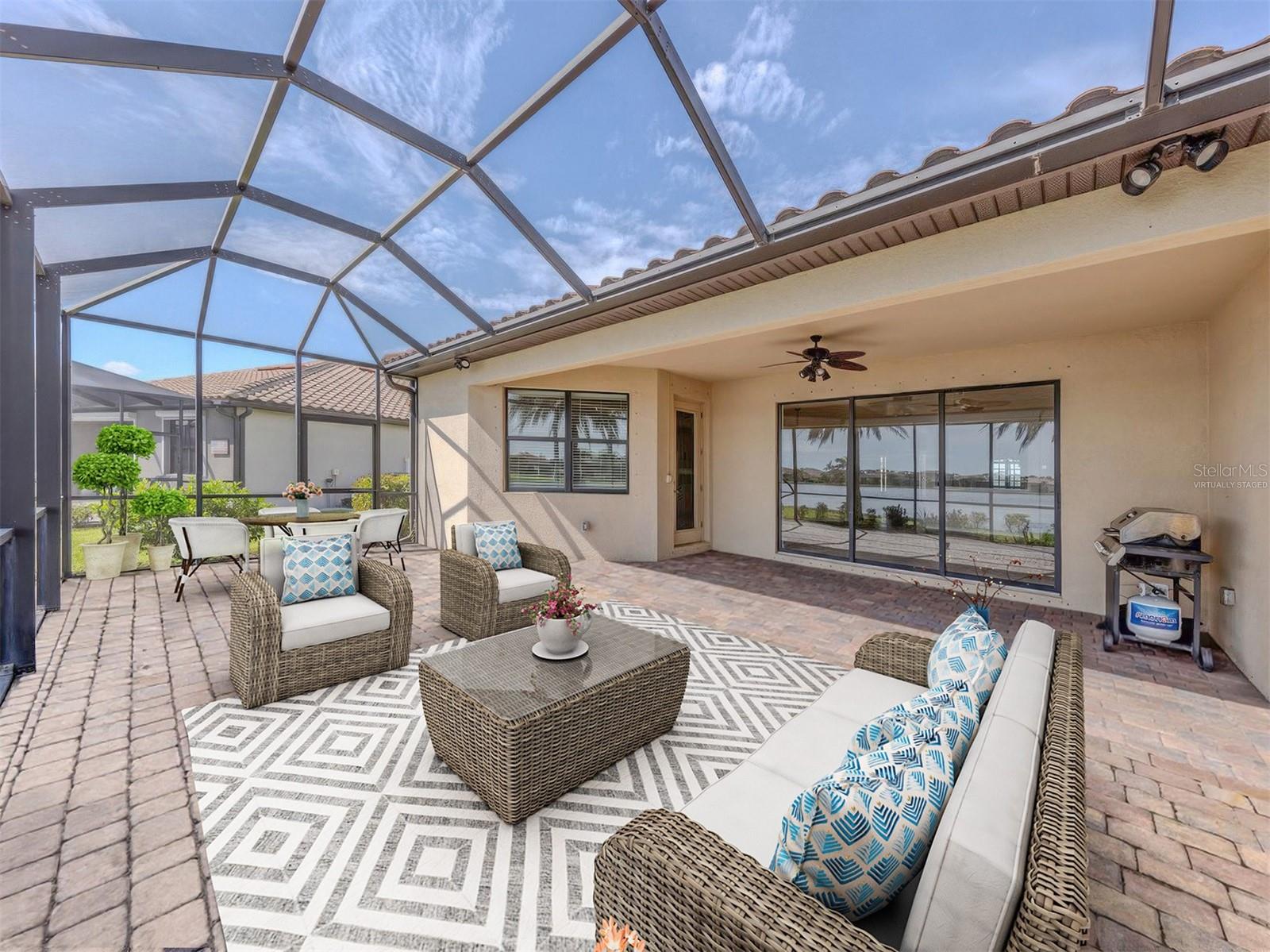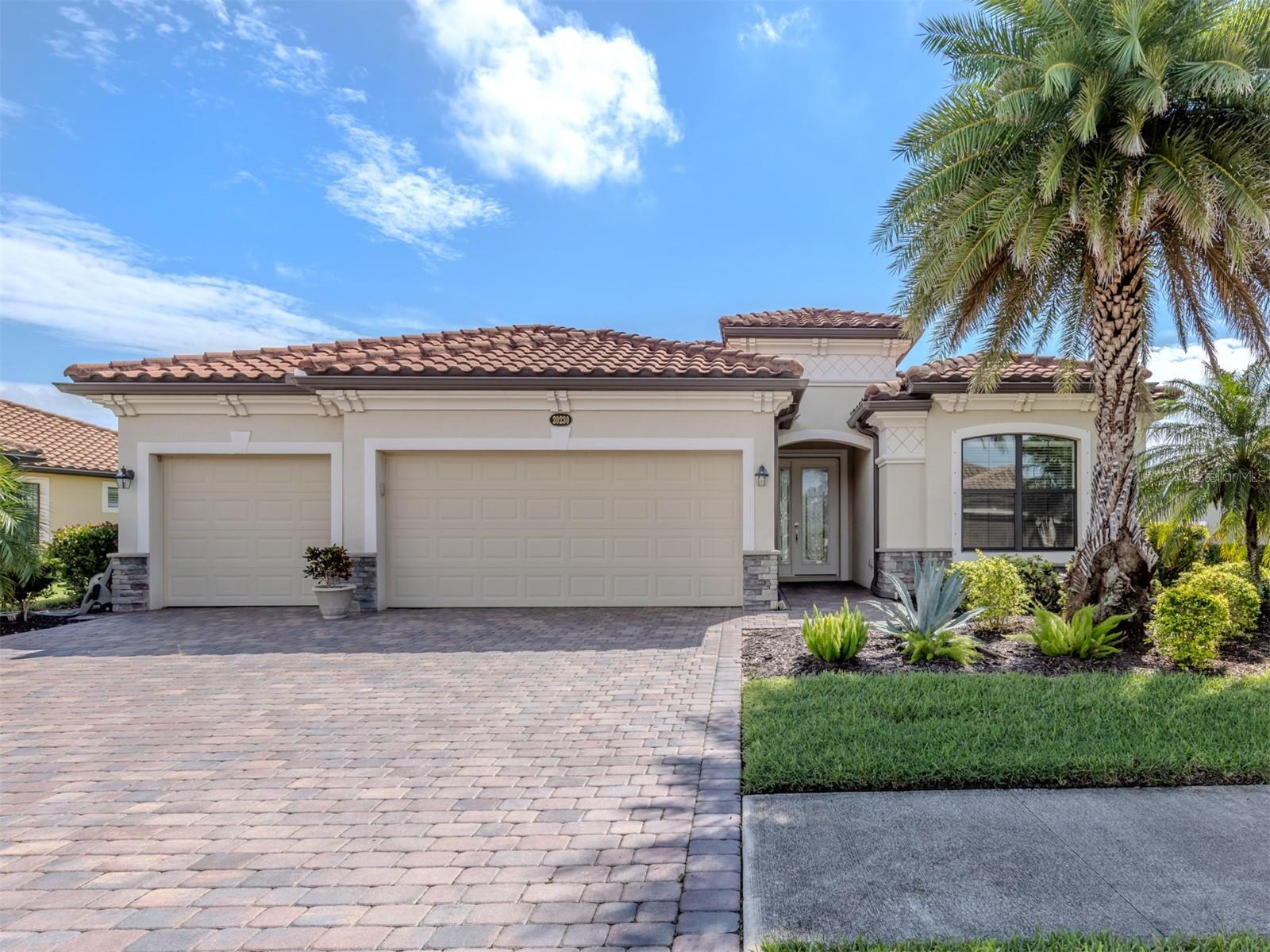 One or more photo(s) has been virtually staged. Experience refined living in this exquisite four-bedroom, three-bath residence in the coveted gated community of Gran Paradiso, where timeless elegance and modern design come together effortlessly. The primary suite is a sanctuary with serene lake views, a tray ceiling and a beautifully designed en-suite bath that promises relaxation at every turn. A secondary bedroom suite, complete with its own en-suite bath, offers the perfect private quarters for guests, ensuring comfort and style for all. The additional bedrooms are thoughtfully designed to accommodate both family and flexibility. At the heart of the home, the open kitchen boasts granite countertops, recessed lighting and a picturesque breakfast nook overlooking the lake, while the living room’s crown molding and tray ceiling add architectural charm. For unmatched comfort a state-of-the-art HVAC system, newly installed in November 2024, delivers year-round efficiency and cool, refreshing living—a feature that blends luxury with peace of mind to elevate everyday living. Step outside to the extended lanai and savor the peaceful water views that create the ultimate setting for entertaining or unwinding. A dedicated laundry room, a spacious three-car garage and the added peace of mind of hurricane shutters complete this exceptional home. Beyond your doorstep, Gran Paradiso offers a vibrant, resort-style lifestyle with a spectacular pool, tennis and pickleball courts, a clubhouse with a library, fitness center, scenic trails and endless social activities. Perfectly located just minutes to upscale dining, boutique shopping and lively entertainment close at hand. Live the life you’ve always imagined—stylish, effortless and unforgettable. Schedule your private showing today and start living the Gran Paradiso lifestyle—sunshine by the pool, pickleball with friends and a dream home that makes every day feel like vacation.