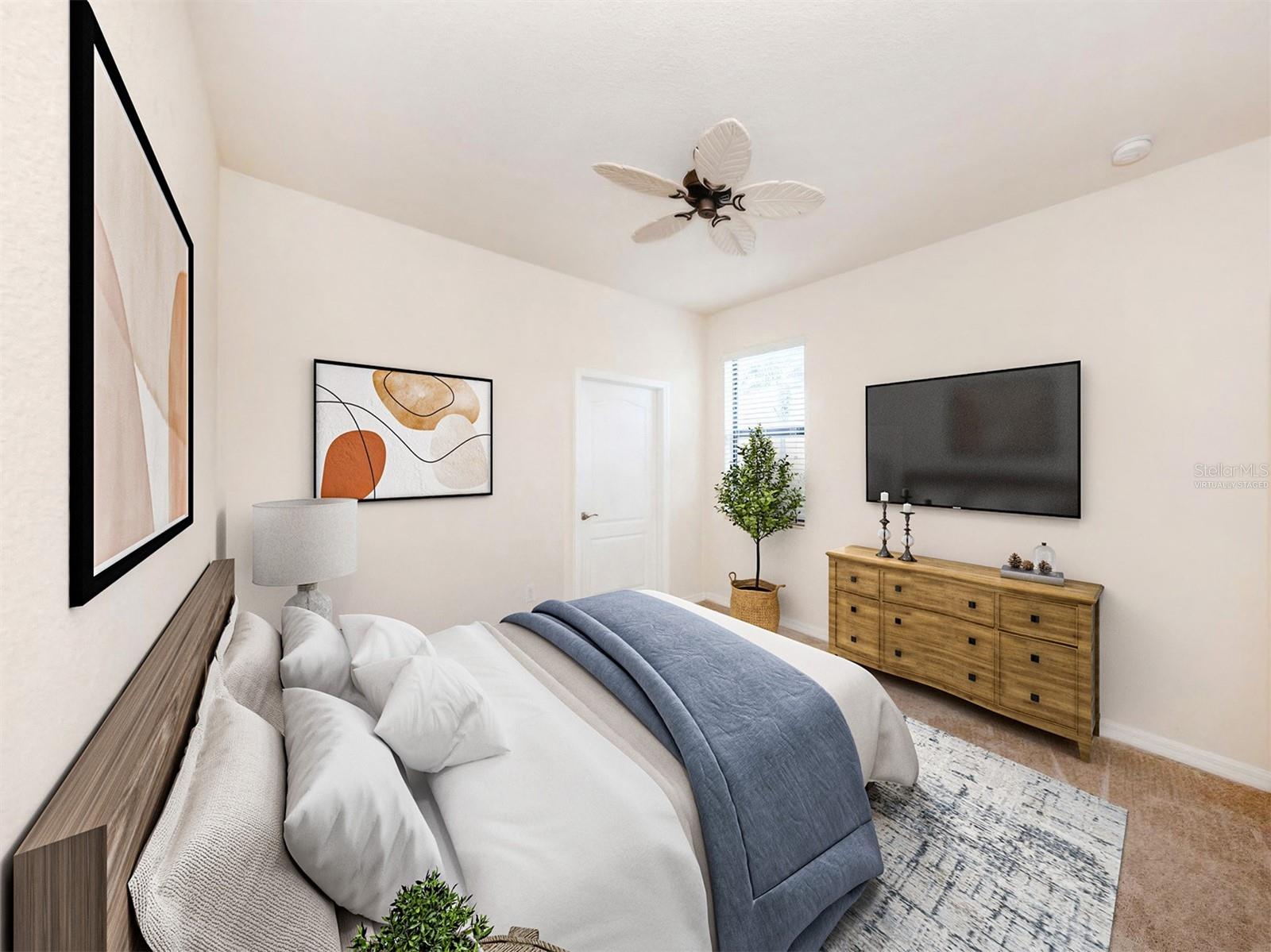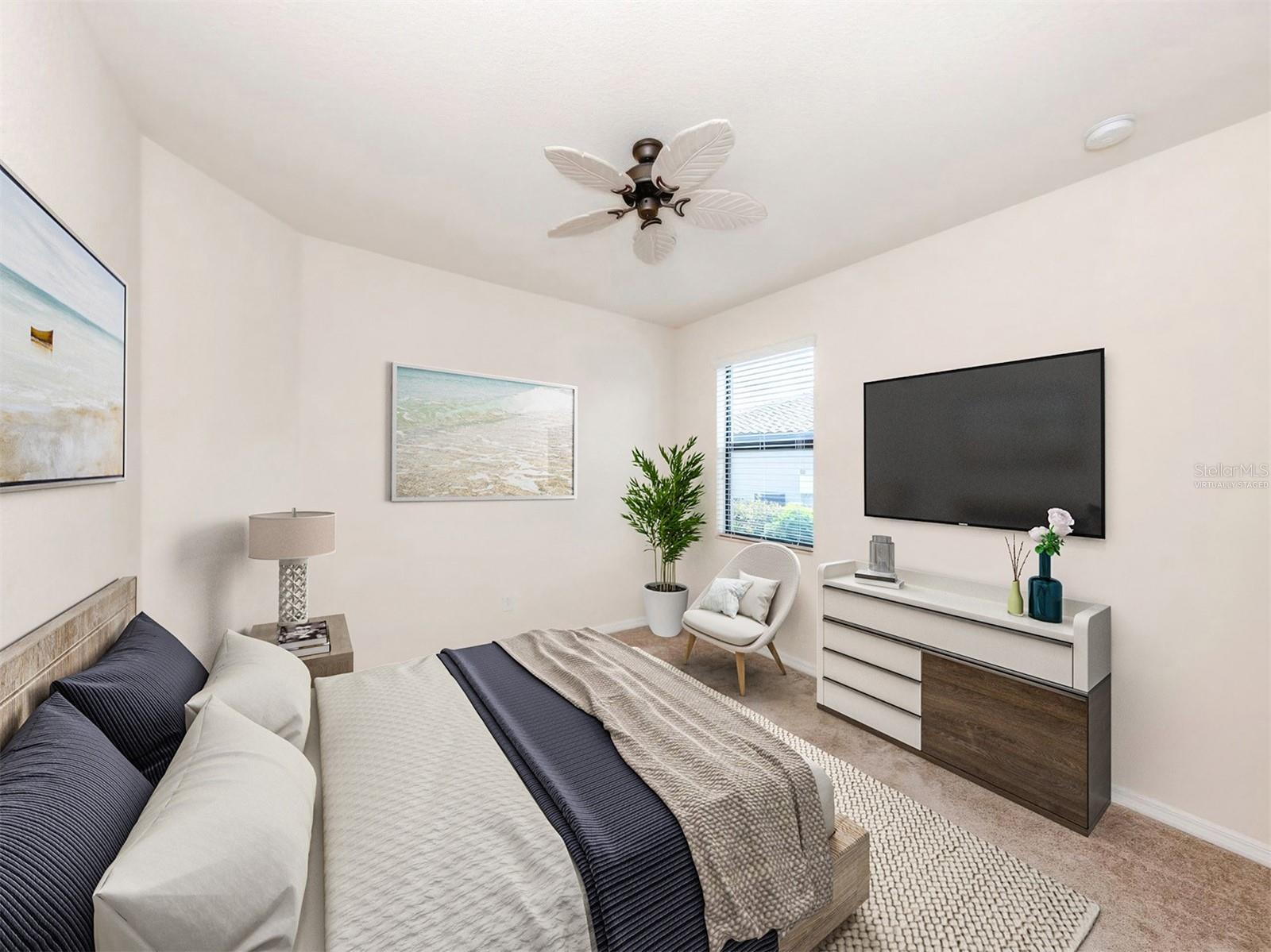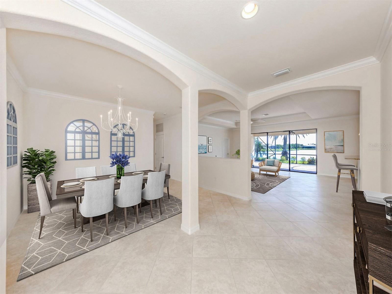 One or more photo(s) has been virtually staged. Experience refined living in this exquisite four-bedroom, three-bath residence in the coveted gated community of Gran Paradiso, where timeless elegance and modern design come together effortlessly. The primary suite is a sanctuary with serene lake views, a tray ceiling and a beautifully designed en-suite bath that promises relaxation at every turn. A secondary bedroom suite, complete with its own en-suite bath, offers the perfect private quarters for guests, ensuring comfort and style for all. The additional bedrooms are thoughtfully designed to accommodate both family and flexibility. At the heart of the home, the open kitchen boasts granite countertops, recessed lighting and a picturesque breakfast nook overlooking the lake, while the living room’s crown molding and tray ceiling add architectural charm. For unmatched comfort a state-of-the-art HVAC system, newly installed in November 2024, delivers year-round efficiency and cool, refreshing living—a feature that blends luxury with peace of mind to elevate everyday living. Step outside to the extended lanai and savor the peaceful water views that create the ultimate setting for entertaining or unwinding. A dedicated laundry room, a spacious three-car garage and the added peace of mind of hurricane shutters complete this exceptional home. Beyond your doorstep, Gran Paradiso offers a vibrant, resort-style lifestyle with a spectacular pool, tennis and pickleball courts, a clubhouse with a library, fitness center, scenic trails and endless social activities. Perfectly located just minutes to upscale dining, boutique shopping and lively entertainment close at hand. Live the life you’ve always imagined—stylish, effortless and unforgettable. Schedule your private showing today and start living the Gran Paradiso lifestyle—sunshine by the pool, pickleball with friends and a dream home that makes every day feel like vacation.