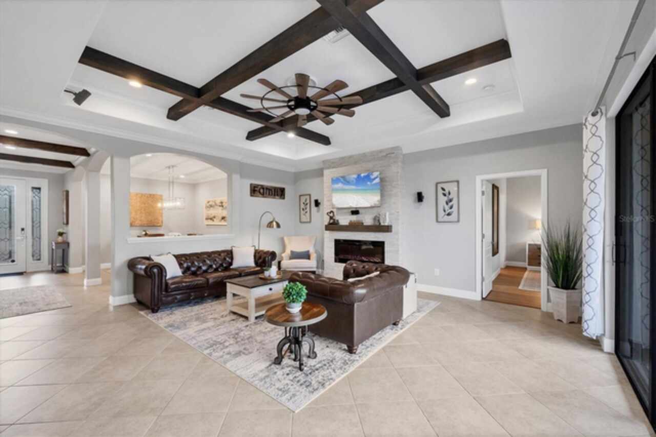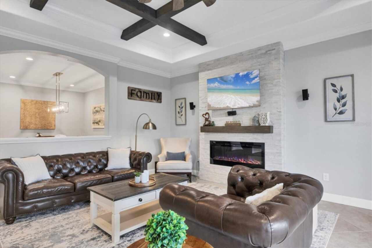 Experience luxurious Florida living in this beautifully designed home in the exclusive community of Gran Paradiso in Wellen Park. The “Princeton II” floor plan (see attached) offers 4 spacious bedrooms, including a deluxe primary room with an en suite bath, huge entertaining open concept living areas, 3 car garage, stone appointed front elevation and so much more! This property glows with so much natural sunlight coming in from the 3 panel sliding doors that lead out to the enormous extended lanai with gorgeous preserve views. Designer updates include a major kitchen renovation with gorgeous quartz countertops and all new appliances, custom molding and architectural beams in the living room and primary suite, both bathrooms have been renovated with Kohler fixtures and on trend tile throughout, beautiful engineered hardwood installed in all bedrooms, new lighting and ceiling fans, professionally upgraded landscaping and new exterior paint. If that wasn't enough, the owners have installed a new high efficiency variable speed HVAC system and completely rescreened the private lanai. Additional upgrades include a whole house water softener system, accordion hurricane shutters on all windows and sliders, custom closet organization in the primary bedroom, brand new water heater and overhead garage storage racks. The location of this property can’t be beat. After a short 5 minute walk, you will be able to enjoy all that Gran Paradiso offers morning, noon and night. The luxurious amenities include a beautiful clubhouse, an over-sized resort pool, spa and beach lounging area, meeting rooms, billiards and library, state-of-the-art fitness center, steam room, sauna, tennis & pickleball courts, basketball and playground. Gran Paradiso is conveniently located within the Wellen Park district with access to breathtaking Gulf beaches, historic downtown Venice and all its quaint shopping & restaurants, the new Atlanta Braves spring training stadium and campus as well as quick access to I-75. Don’t miss your chance to become a member of this thriving community. Book your showing today…….this one won’t last long! ***Home comes partially furnished. All contents present remain***