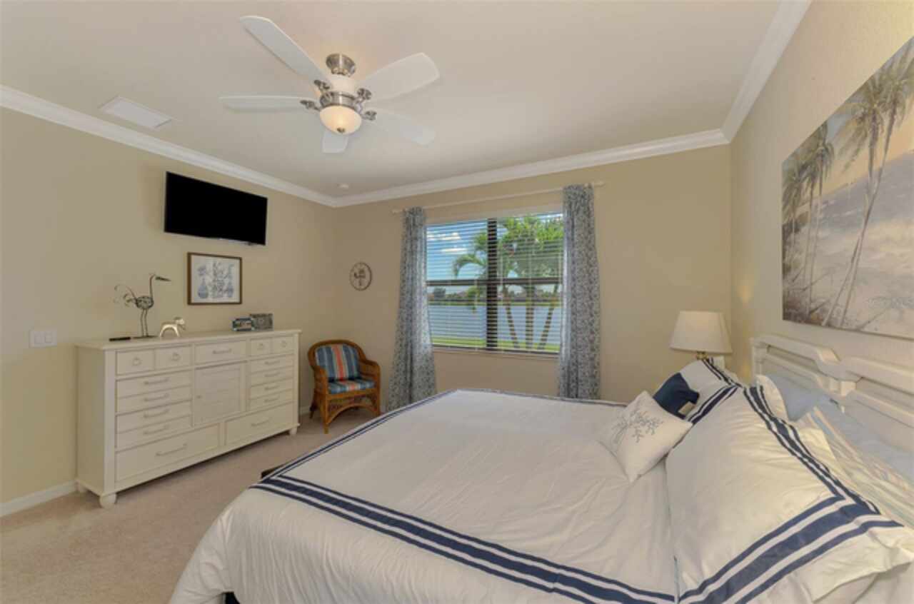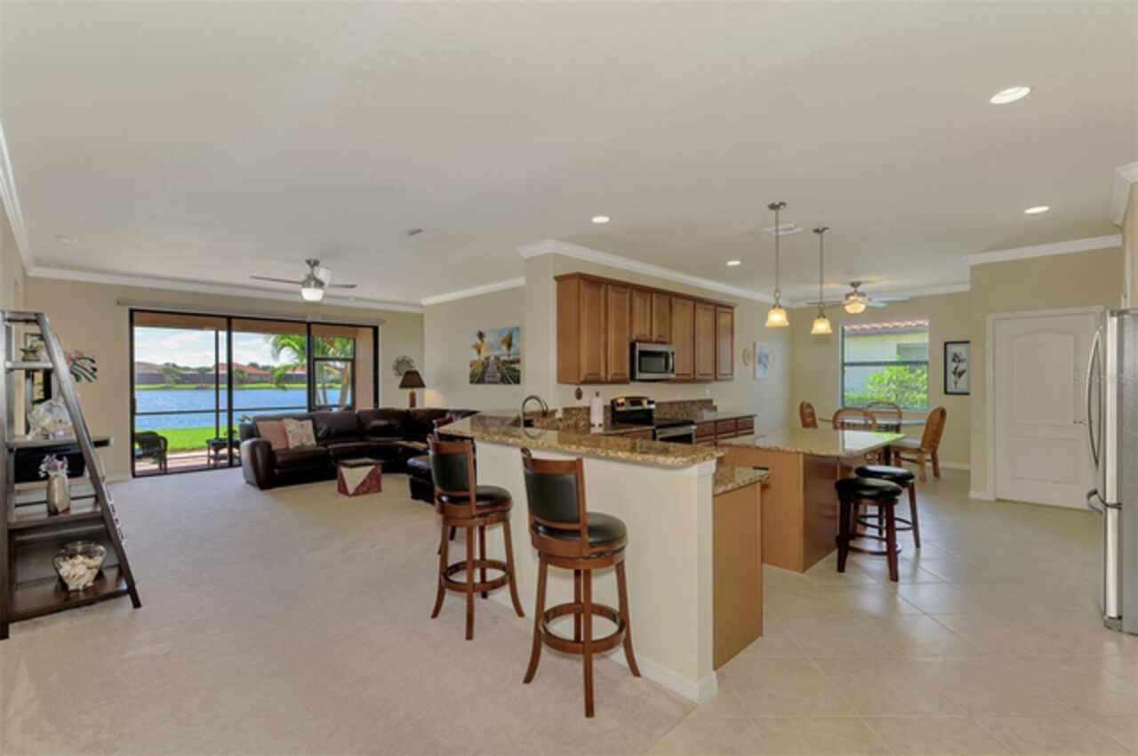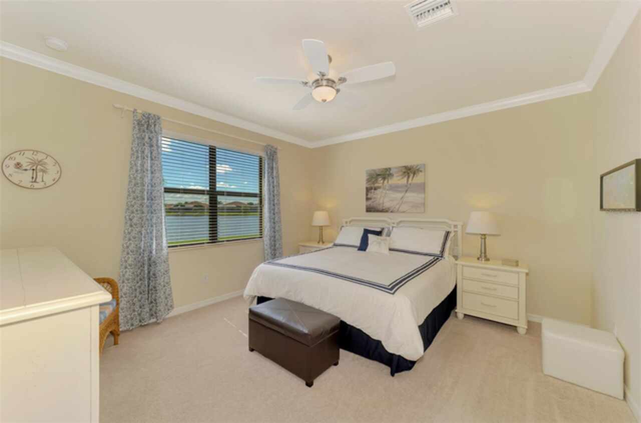 Priced to sell! Are you searching for incredible value? You’ll find it in this pristine 4-bedroom, 3-bath home located in the sought-after gated community of Gran Paradiso. Boasting 2, 254 square feet of thoughtfully designed living space, a serene water view, and a spacious 3-car garage, this home has it all. From the moment you step inside, you’ll notice the meticulous care and attention to detail throughout. Neutral tones and an open floor plan create a welcoming, airy feel. The layout includes a private guest suite with a full bath, perfect for visitors. Two additional bedrooms share a second full bath featuring dual sinks, offering comfort and convenience. The primary suite is a true retreat, with double windows that showcase the lake view and fill the space with natural light. The ensuite bath includes a double vanity, soaking tub, walk-in shower, linen closet, and spacious walk-in closet—you’ll feel like royalty here. At the heart of the home is an immense kitchen, complete with granite countertops, center island, ample cabinetry, and a cozy dining nook. Additional features include a closet pantry, breakfast bar, and a separate laundry room for ultimate functionality. Across from the kitchen, the formal dining room is ideal for hosting family dinners or entertaining guests. The great room offers plenty of space for large furniture and gatherings, and triple sliding doors lead to the covered lanai—a perfect place to relax with a book or beverage while enjoying long views of the community’s largest lake. This one-owner, non-smoking, pet-free home includes recent updates such as a new HVAC system (within the last 6 months), fresh exterior paint, and a screened front entry—all adding to the move-in-ready appeal. Gran Paradiso offers resort-style living, with amenities that include a full-time activity director, zero-entry pool, tennis and pickleball courts, basketball, sauna, hot tub, playground, clubhouse, miles of walking trails, and countless social events to connect with neighbors. Located just minutes from Wellen Park, the Atlanta Braves Stadium, Downtown Wellen, Gulf beaches, shopping, and fine dining, this home is the ideal combination of comfort, luxury, and lifestyle. Don’t miss your chance to own a slice of paradise—schedule your private showing today!