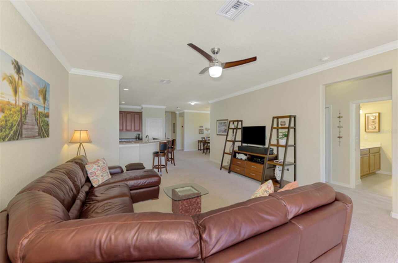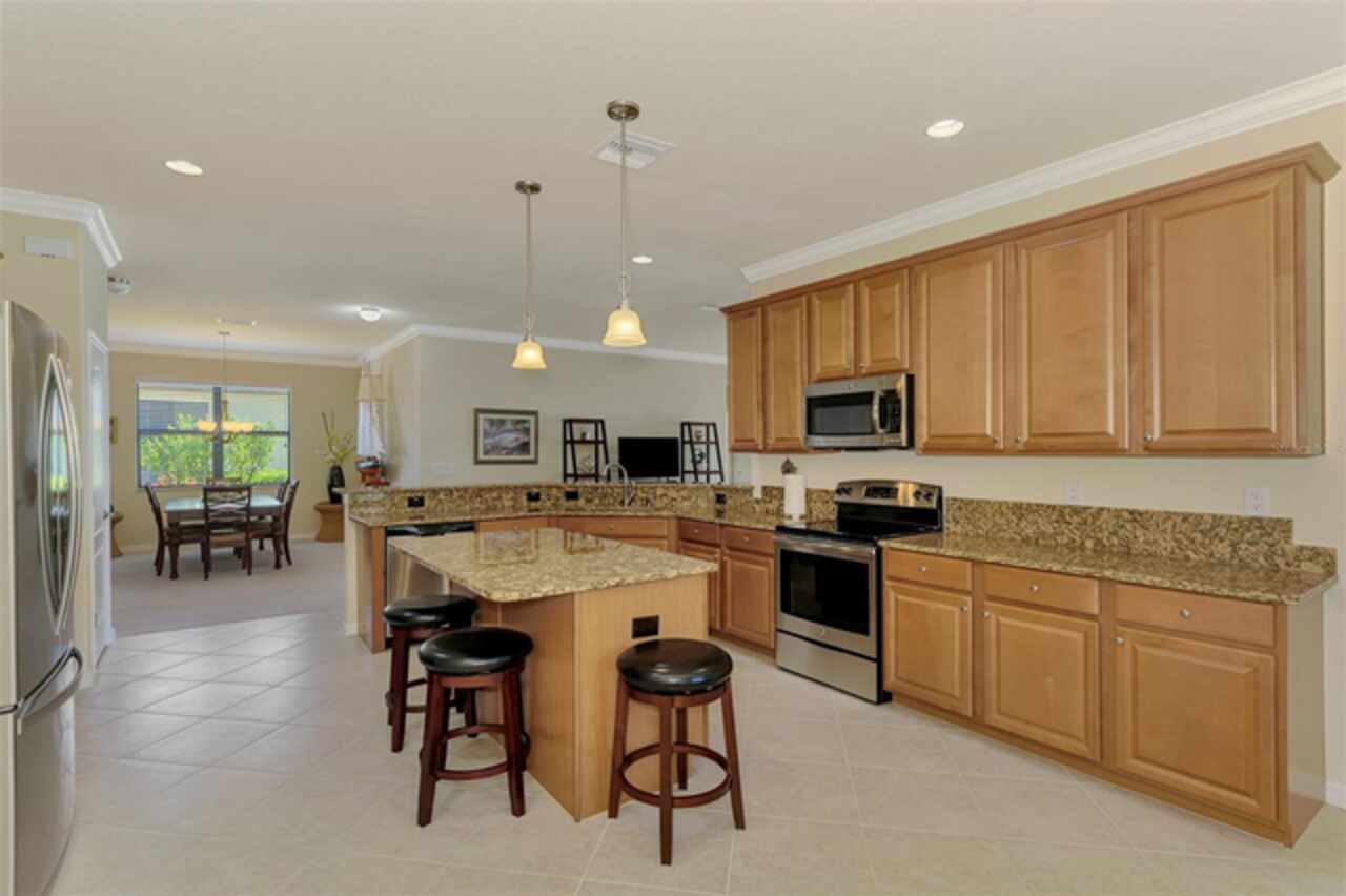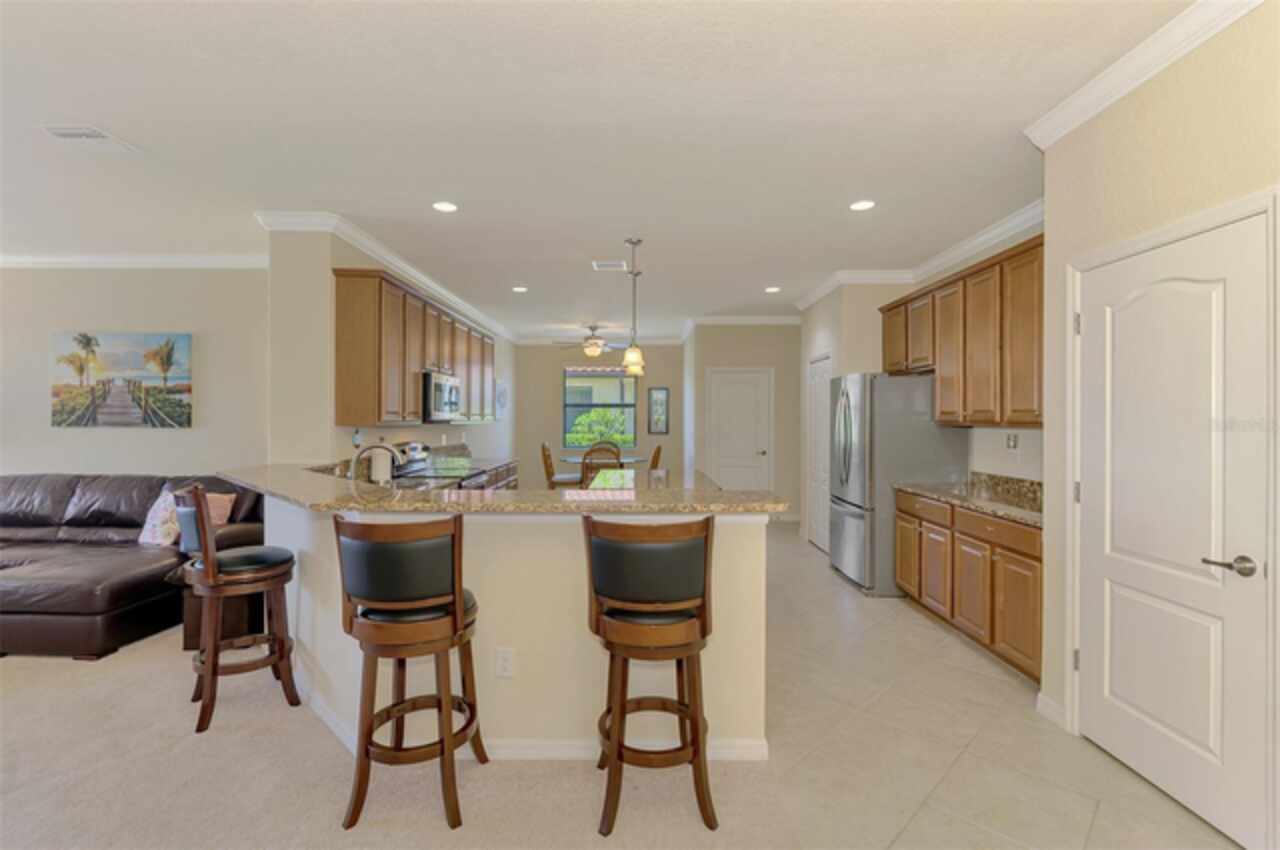 Priced to sell! Are you searching for incredible value? You’ll find it in this pristine 4-bedroom, 3-bath home located in the sought-after gated community of Gran Paradiso. Boasting 2, 254 square feet of thoughtfully designed living space, a serene water view, and a spacious 3-car garage, this home has it all. From the moment you step inside, you’ll notice the meticulous care and attention to detail throughout. Neutral tones and an open floor plan create a welcoming, airy feel. The layout includes a private guest suite with a full bath, perfect for visitors. Two additional bedrooms share a second full bath featuring dual sinks, offering comfort and convenience. The primary suite is a true retreat, with double windows that showcase the lake view and fill the space with natural light. The ensuite bath includes a double vanity, soaking tub, walk-in shower, linen closet, and spacious walk-in closet—you’ll feel like royalty here. At the heart of the home is an immense kitchen, complete with granite countertops, center island, ample cabinetry, and a cozy dining nook. Additional features include a closet pantry, breakfast bar, and a separate laundry room for ultimate functionality. Across from the kitchen, the formal dining room is ideal for hosting family dinners or entertaining guests. The great room offers plenty of space for large furniture and gatherings, and triple sliding doors lead to the covered lanai—a perfect place to relax with a book or beverage while enjoying long views of the community’s largest lake. This one-owner, non-smoking, pet-free home includes recent updates such as a new HVAC system (within the last 6 months), fresh exterior paint, and a screened front entry—all adding to the move-in-ready appeal. Gran Paradiso offers resort-style living, with amenities that include a full-time activity director, zero-entry pool, tennis and pickleball courts, basketball, sauna, hot tub, playground, clubhouse, miles of walking trails, and countless social events to connect with neighbors. Located just minutes from Wellen Park, the Atlanta Braves Stadium, Downtown Wellen, Gulf beaches, shopping, and fine dining, this home is the ideal combination of comfort, luxury, and lifestyle. Don’t miss your chance to own a slice of paradise—schedule your private showing today!