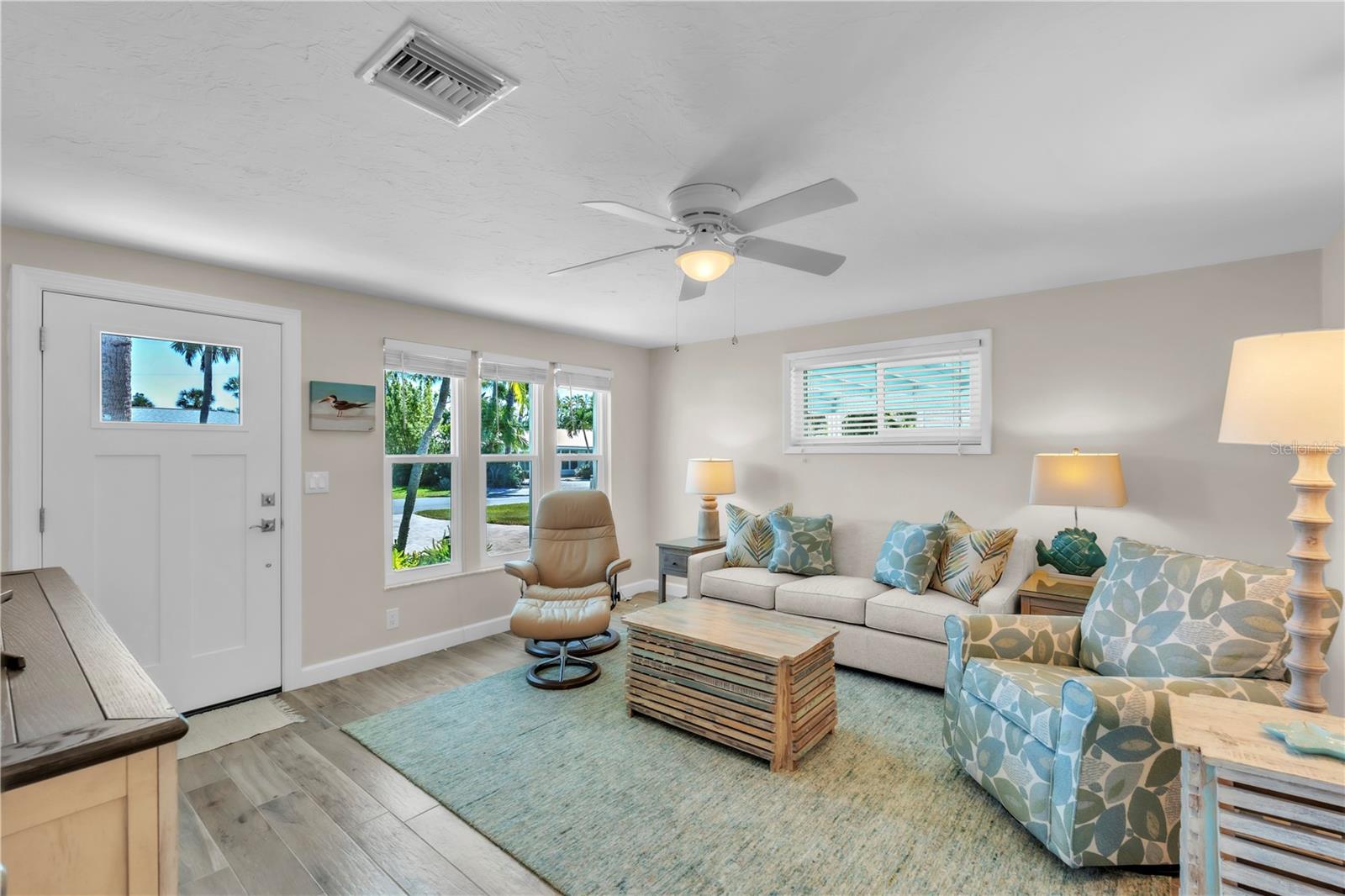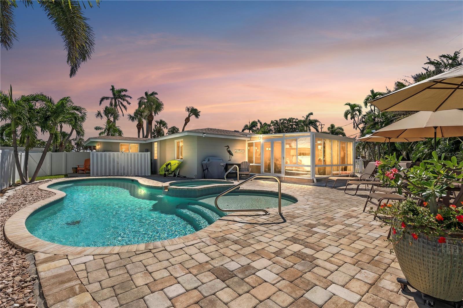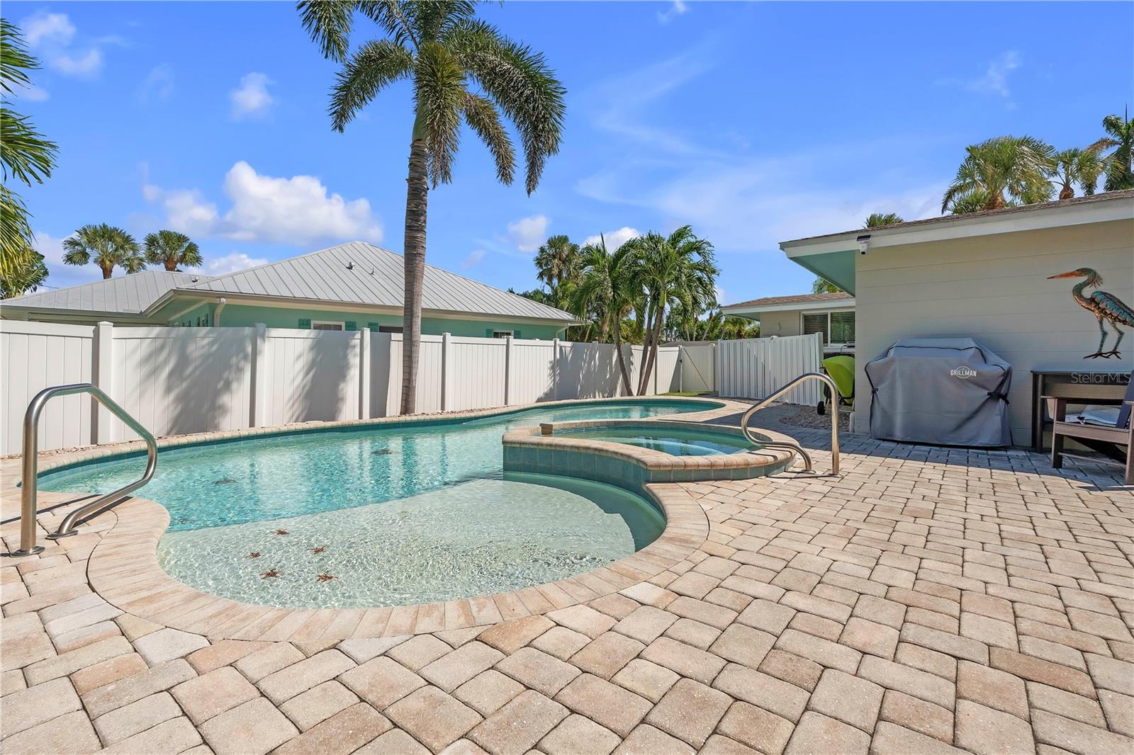This beautifully updated 3BD/2BA coastal home located on a large 10, 709 lot captures the essence of laid back island living with a bright, open interior and a backyard designed for total relaxation. Inside, warm wood-style flooring runs throughout, setting a comfortable tone that pairs perfectly with the home’s coastal palette. The kitchen is crisp and inviting, featuring sleek quartz countertops, stainless steel appliances, and a sea glass toned backsplash that adds a subtle pop of color. Just off the kitchen, the dining area flows into a spacious living room with sunroom style windows that fill the space with natural light and frame views of the lush, tropical landscaping. All bedrooms are generously sized, offering plenty of natural light and a sense of comfort. Sewer line has been scoped, updated electric, new Hvac and all new PEX plumbing. Step outside to discover your own private paradise. The heated pool and spa are surrounded by a spacious paver patio and swaying palms, offering the ideal backdrop for entertaining, unwinding, or soaking up the Florida sun. A detached shed with finished interiors adds flexibility to suit your lifestyle. There also is a boat slip with water, electric and a 10, 000 lb lift available for separate purchase right up the street. Located just a short stroll or bike ride to the sugar white sands of the Gulf and the vibrant shops, restaurants, and beachy charm of Anna Maria Island, this home offers the perfect blend of comfort, convenience, and coastal character.