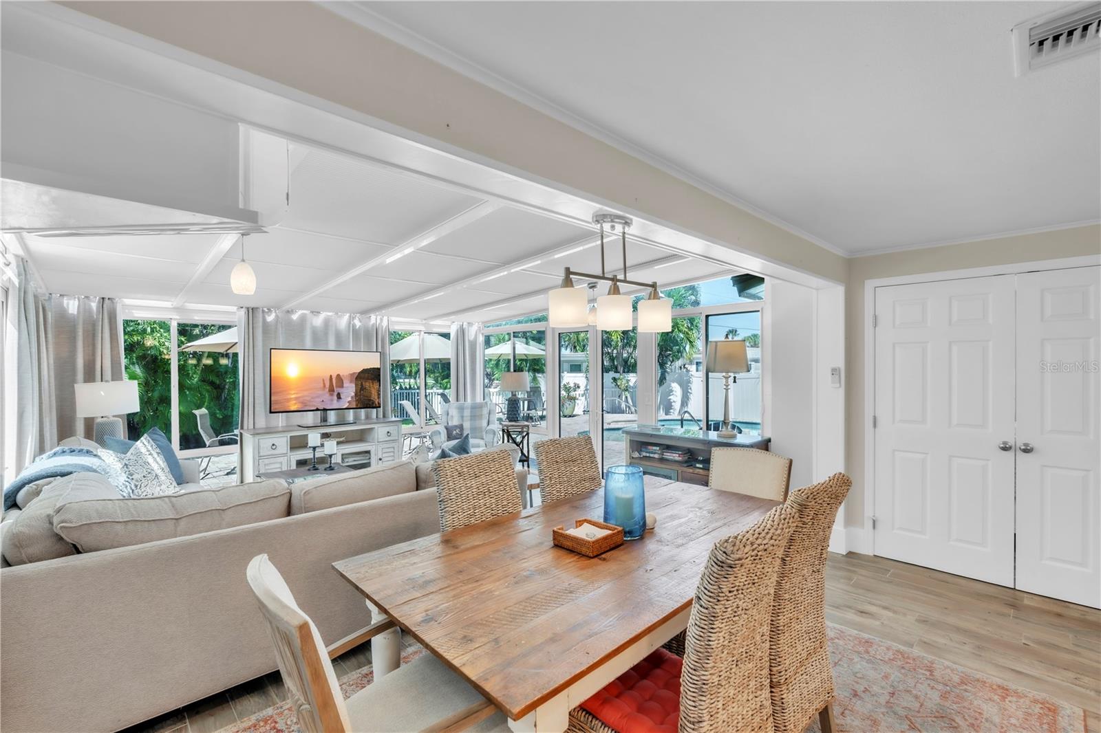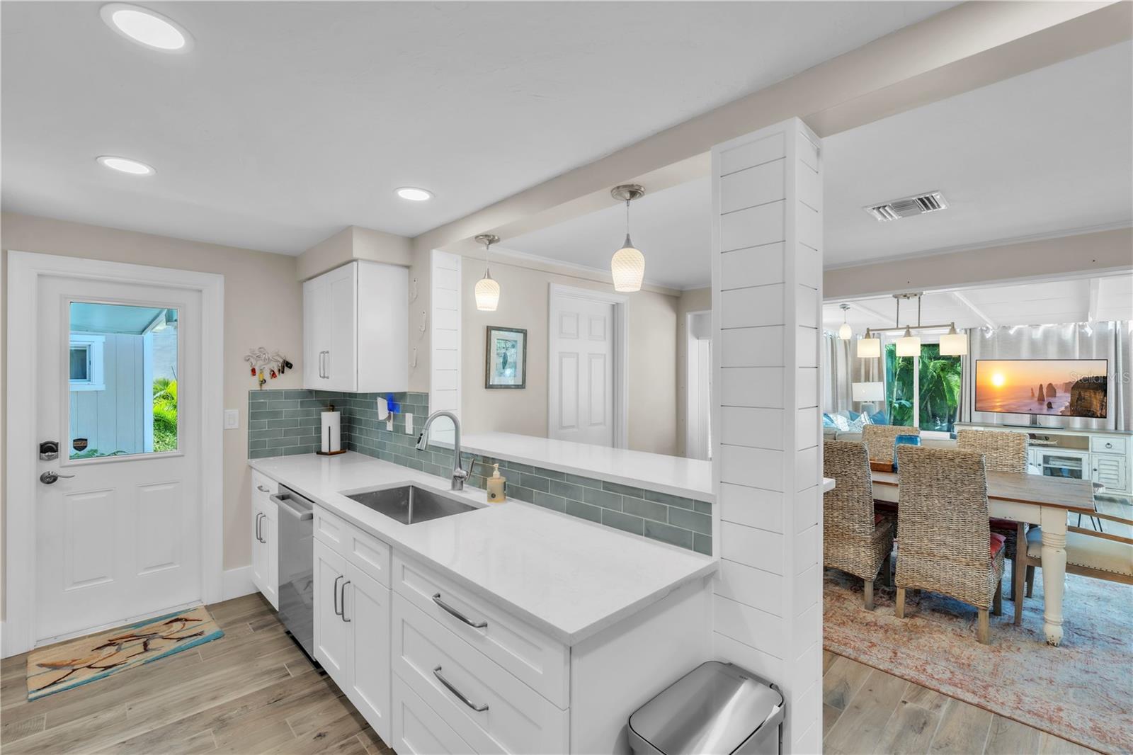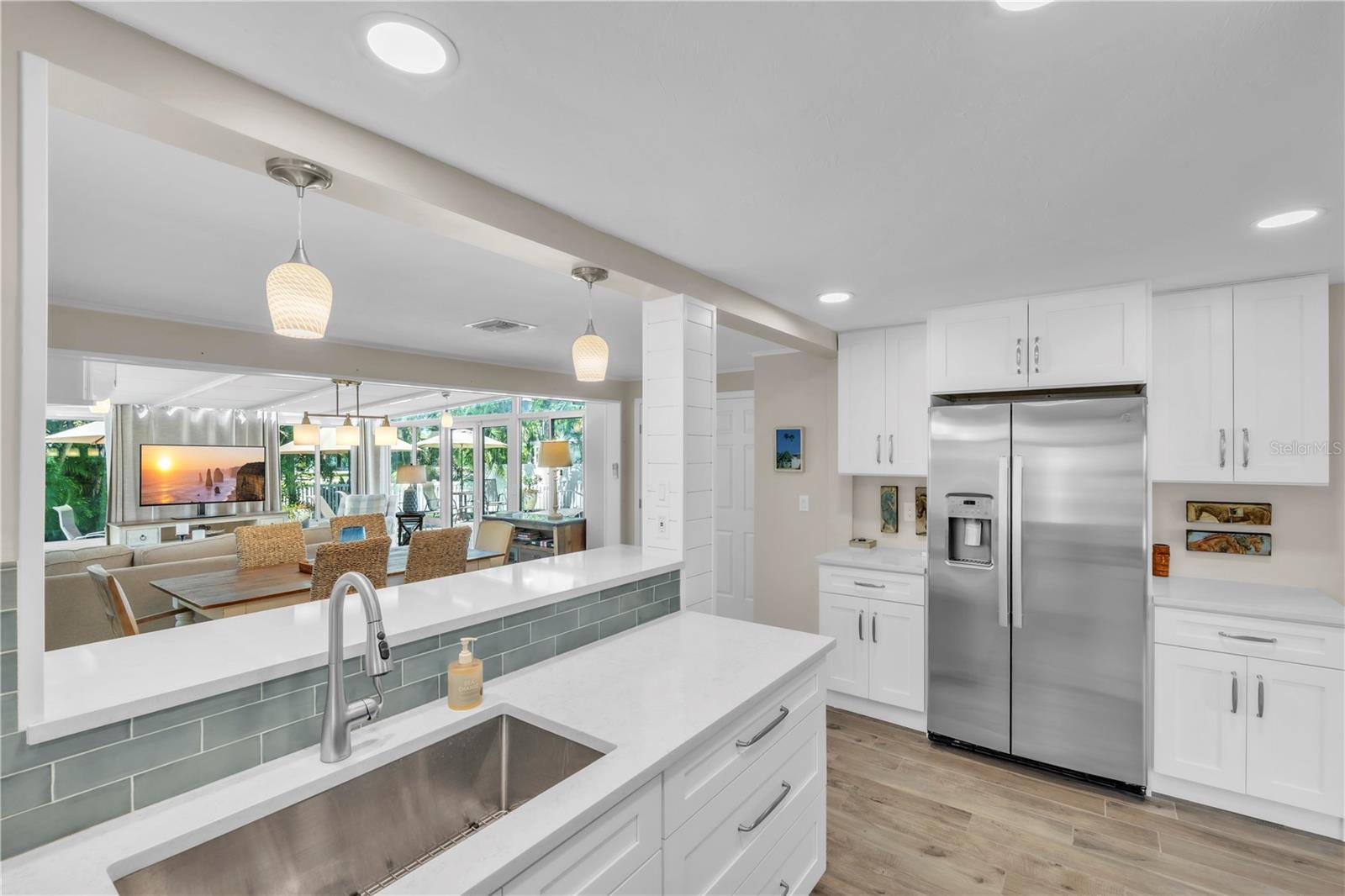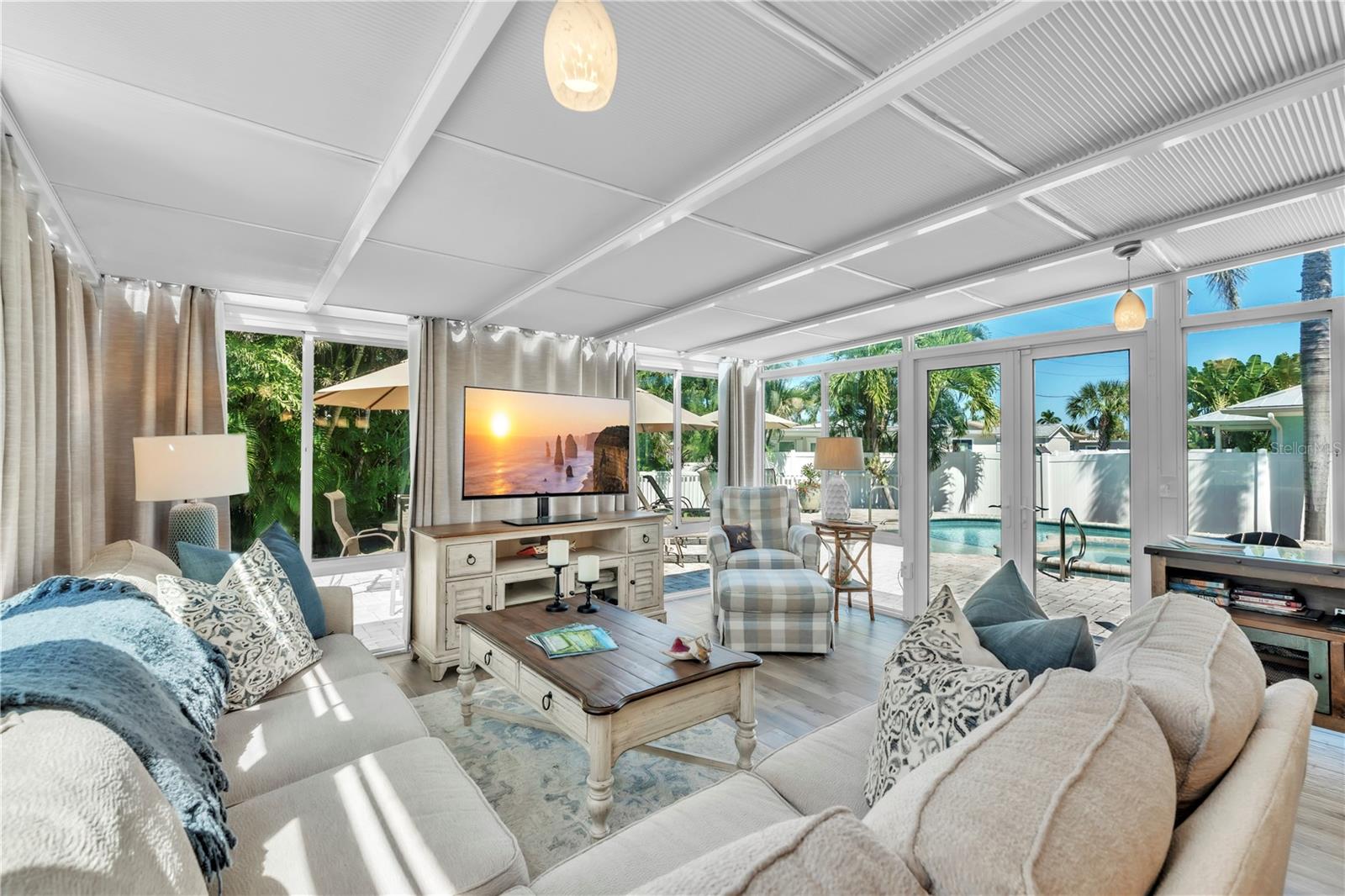 This beautifully updated 3BD/2BA coastal home located on a large 10, 709 lot captures the essence of laid back island living with a bright, open interior and a backyard designed for total relaxation. Inside, warm wood-style flooring runs throughout, setting a comfortable tone that pairs perfectly with the home’s coastal palette. The kitchen is crisp and inviting, featuring sleek quartz countertops, stainless steel appliances, and a sea glass toned backsplash that adds a subtle pop of color. Just off the kitchen, the dining area flows into a spacious living room with sunroom style windows that fill the space with natural light and frame views of the lush, tropical landscaping. All bedrooms are generously sized, offering plenty of natural light and a sense of comfort. Sewer line has been scoped, updated electric, new Hvac and all new PEX plumbing. Step outside to discover your own private paradise. The heated pool and spa are surrounded by a spacious paver patio and swaying palms, offering the ideal backdrop for entertaining, unwinding, or soaking up the Florida sun. A detached shed with finished interiors adds flexibility to suit your lifestyle. There also is a boat slip with water, electric and a 10, 000 lb lift available for separate purchase right up the street. Located just a short stroll or bike ride to the sugar white sands of the Gulf and the vibrant shops, restaurants, and beachy charm of Anna Maria Island, this home offers the perfect blend of comfort, convenience, and coastal character.
