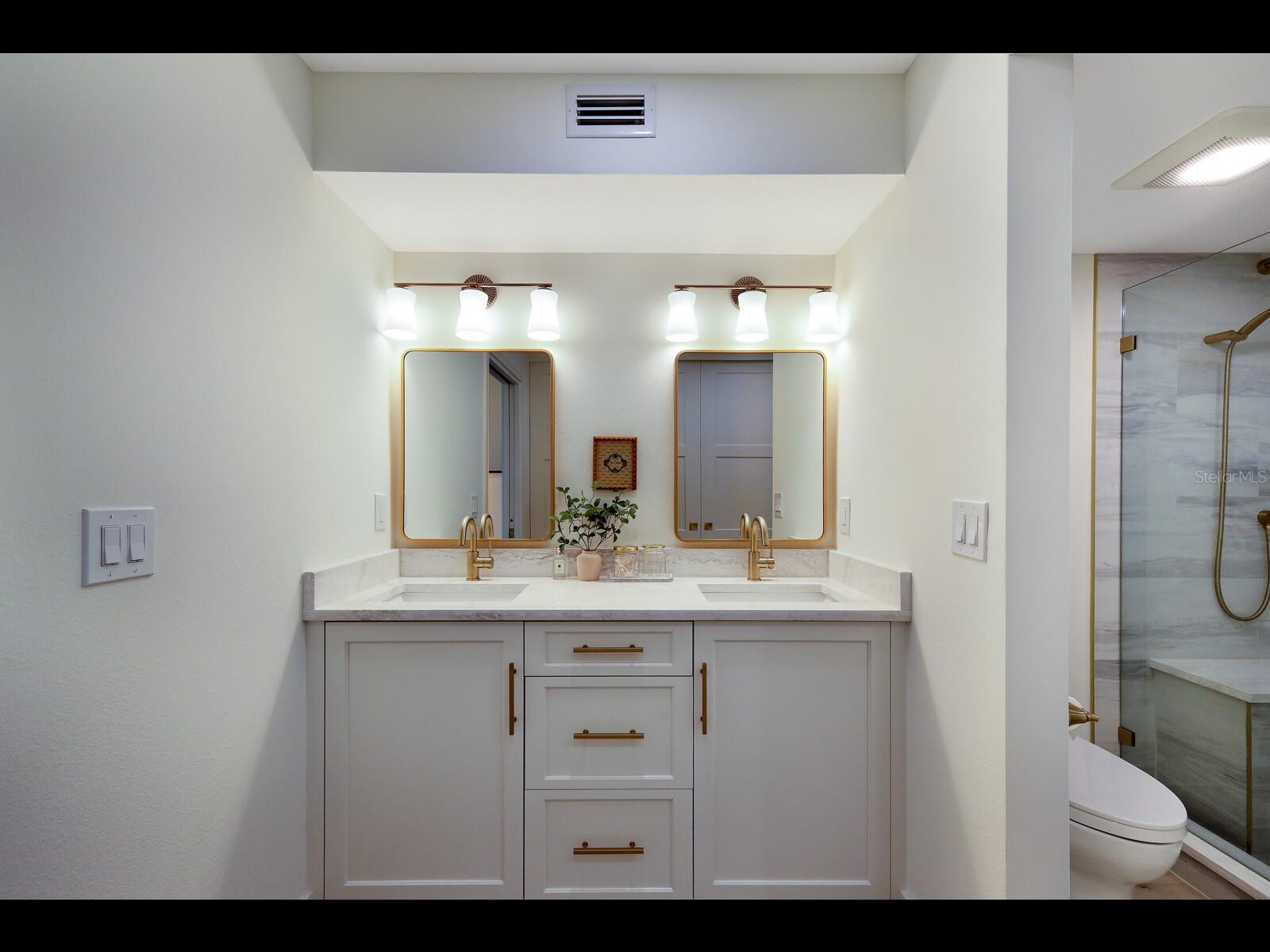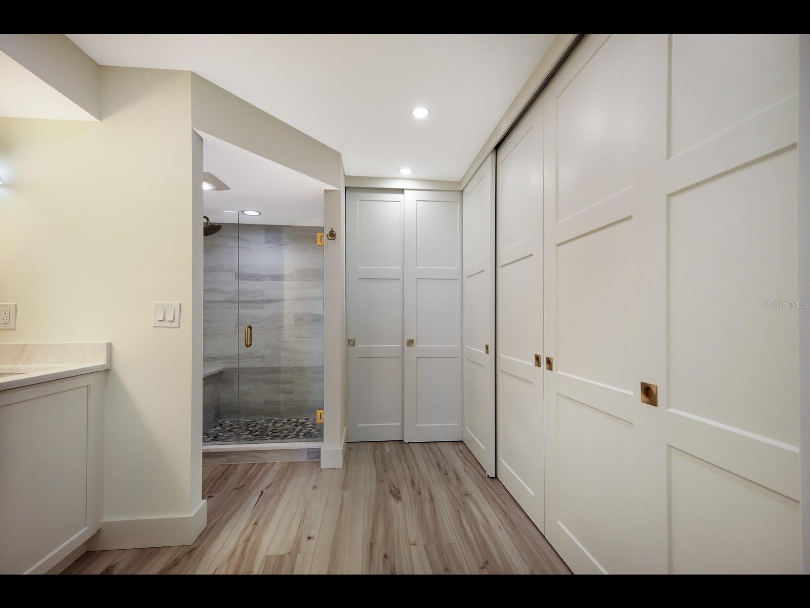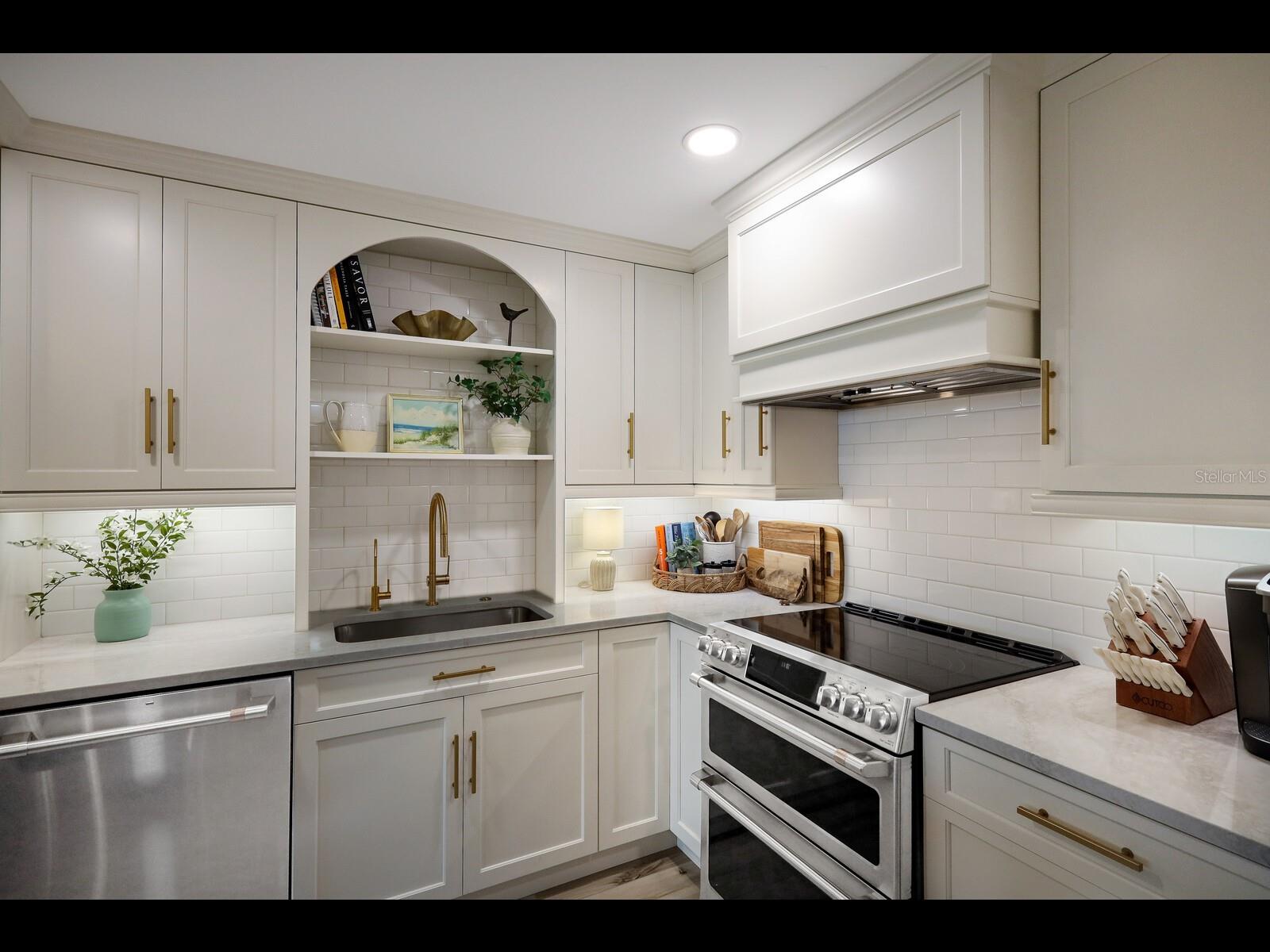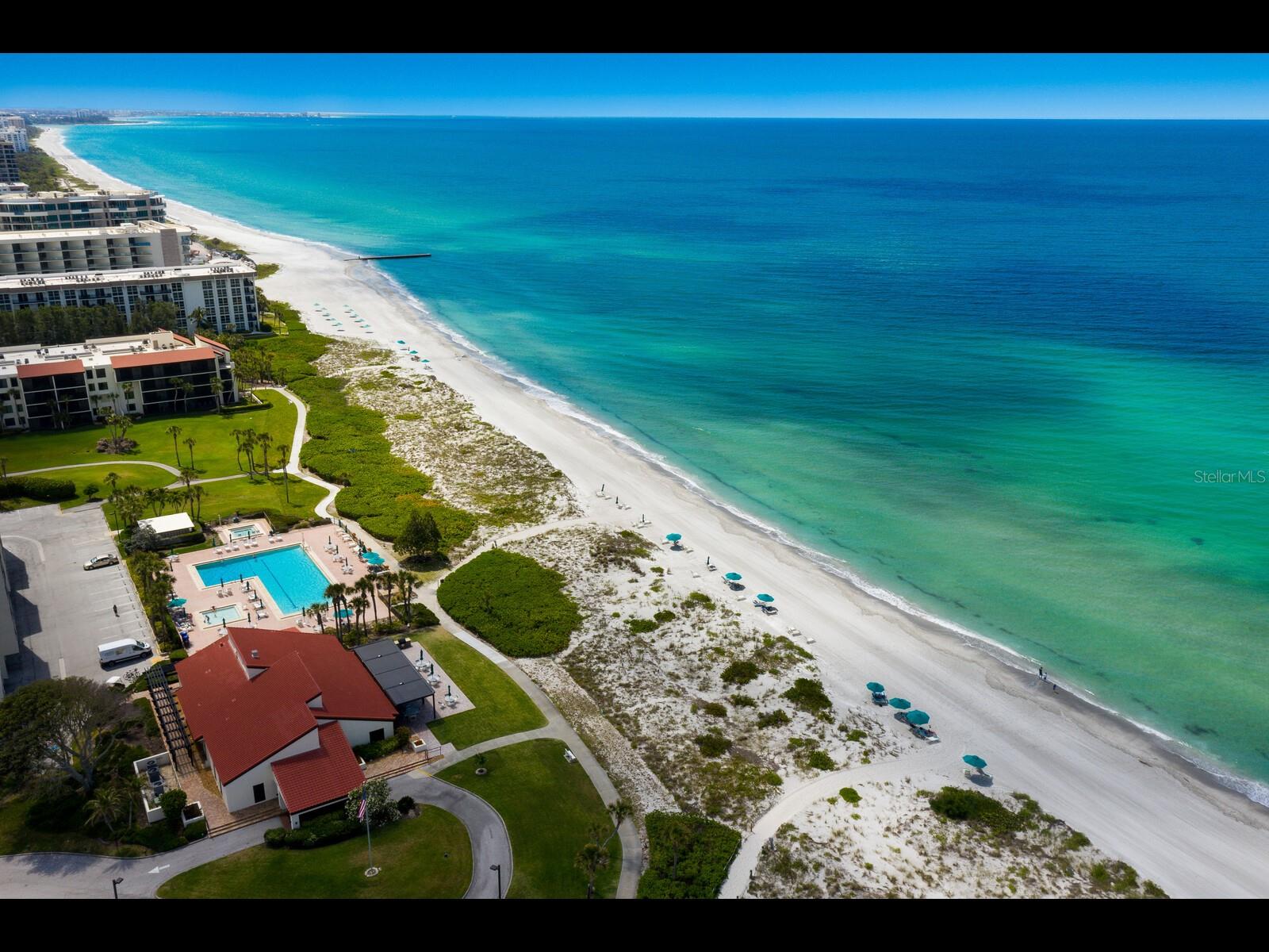 Fully RE-DESIGNED and RENOVATED 2-bedroom, 2-bath condo in Seaplace with PARTIAL GULF VIEWS. Completed in 2023, this residence showcases over $200K in UPSCALE UPGRADES AND FINISHES. Crafted for both elegance and durability, the home features HURRICANE IMPACT-rated windows and sliding glass doors, providing enhanced storm protection, improved energy efficiency, and year-round peace of mind. The spacious QUARTZ KITCHEN ISLAND serves as both a functional hub and an artistic focal point, anchoring the open-concept living area with style and intention. The island includes seating and additional storage underneath. The kitchen is outfitted with HIGH-END GE Café Series APPLIANCES, including a dual oven, refrigerator with beverage drawer and flex zones, dishwasher, microwave, and wine fridge. Locally crafted CUSTOM SHAKER CABINETRY with soft-close drawers, a subway tile backsplash, Falmec hood, and designer gold plumbing fixtures and cabinet pulls complete the space. A thoughtfully crafted ENTERTAINMENT BAR with floating shelves, glass-front cabinets, and a built-in WINE FRIG adds flair and functionality—an efficient and elegant use of space.The spacious screened lanai, fitted with no-see-um proof screens, offers Gulf views and ample room for dining and relaxation.The primary suite is designed as a private retreat, with a spa-like bathroom featuring dual vanities, a Toto toilet, and a frameless glass shower with smooth pebblestone flooring, in-line drains, and a built-in bench seat.Custom tray ceilings in the living room and bedrooms add architectural interest, complemented by modern ceiling fans and enhanced LED lighting. All closets and the fully equipped laundry room are customized by Closets by Design for optimal storage. LG ThinQ smart washer and dryer included. Throughout the home, you’ll find luxury waterproof vinyl flooring and electric room-darkening shades in both bedrooms. A dedicated covered parking spot under the building—a rare and valuable feature—comes with the unit. Seaplace association has approved BRAND NEW front doors for each residence, which once installed will modernize the look of the complex as well as allow more light to filter into the unit through translucent impact glass panels. Seaplace residents enjoy a half-mile of private beachfront with beach chairs and umbrellas, two swimming pools, two spas, a kiddie pool, three Har-Tru tennis courts, a playground, and a one-mile walking trail. The updated clubhouse includes a fitness center, sauna, library, catering kitchen, AV lounge, and a Gulf-front patio with multiple grills.With effortless access to fine dining, shopping, and Sarasota’s world-class arts and culture, this Seaplace condo offers a rare opportunity for refined island living.