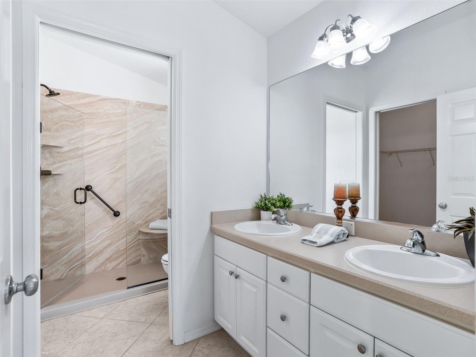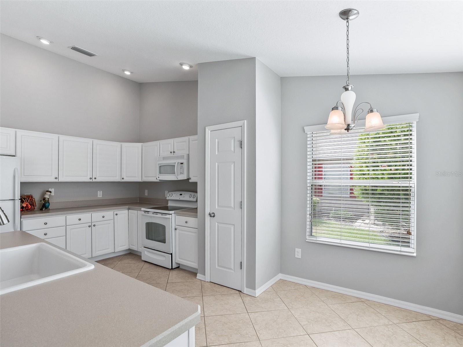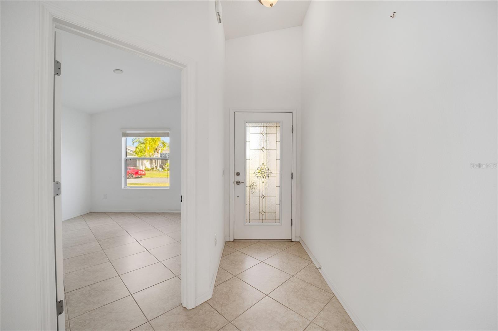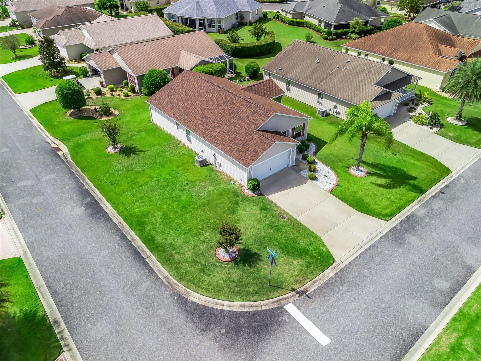 One or more photo(s) has been virtually staged. BOND PAID! BRAND NEW ROOF! BRAND NEW HOT WATER HEATER! LOW SUMTER TAXES! HOME WARRANTY INCLUDED! Welcome to this beautifully well-maintained AT-EASE Cottage model, offering comfort, updates, and a prime location in the heart of The Villages (between CR466 and CR466A). This bright and spacious home features vaulted ceilings throughout (no popcorn ceilings) and a freshly painted interior accent walls. Tile flooring flows seamlessly through the home, while the eat-in kitchen offers abundant cabinet space with pull-outs, a pantry closet, and sliding doors that open to the screened lanai. The primary suite boasts a large walk-in closet and an en suite bath with dual sinks and a custom Jetta Stone walk-in shower. The second bedroom sits conveniently near the guest bath—perfect for visitors. The third bedroom, located at the front of the home, provides flexibility as a guest room or home office. All bedrooms have closets. Step outside to the roofed, screened lanai with privacy shades and a concrete patio (ideal for an added birdcage). The corner lot adds privacy and space as well as beauty. The two-car garage and indoor laundry complete the thoughtful design. Close to shopping, rec centers, golf, pools, country clubs, restaurants - and more! Schedule your showing today!