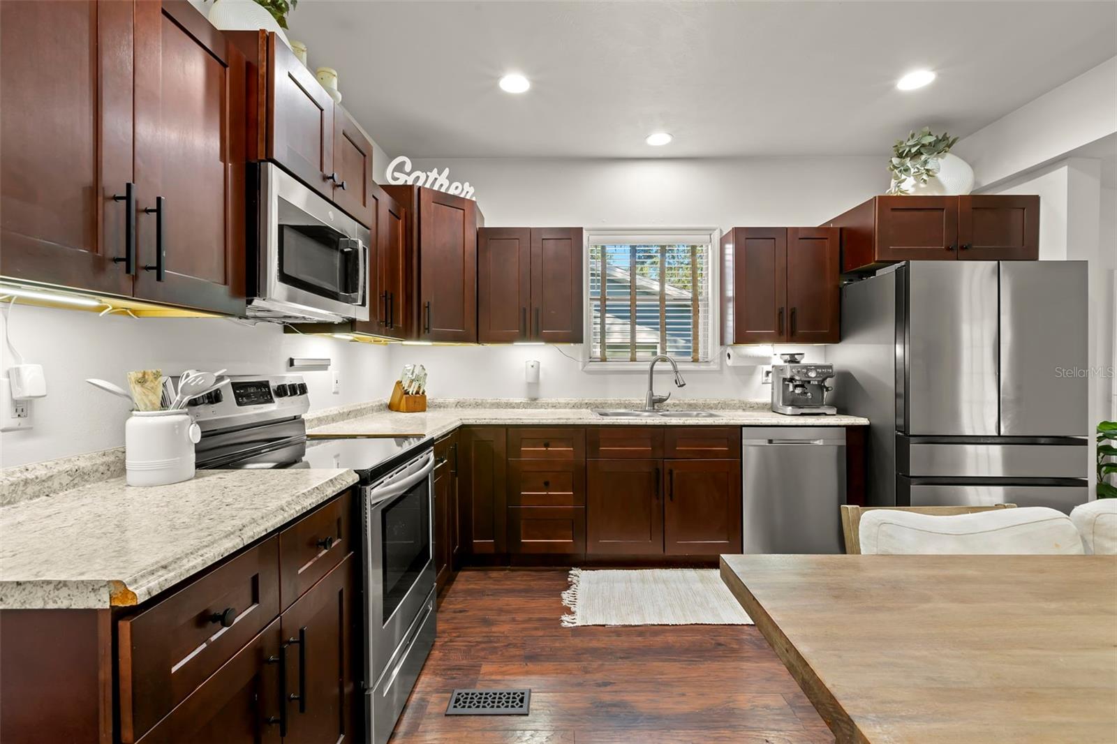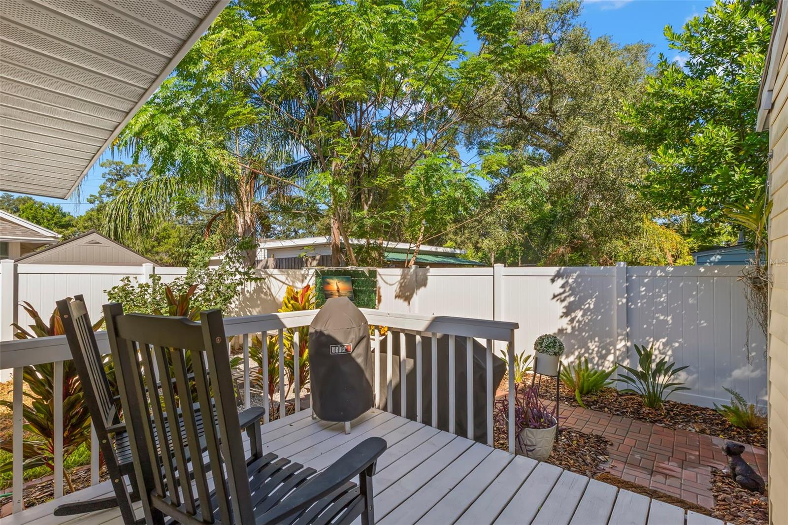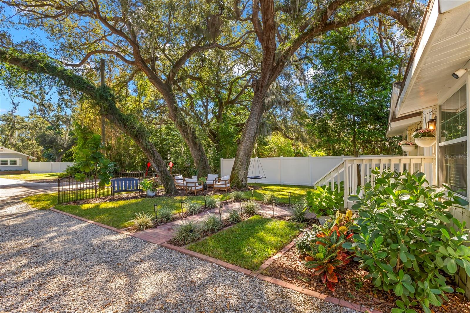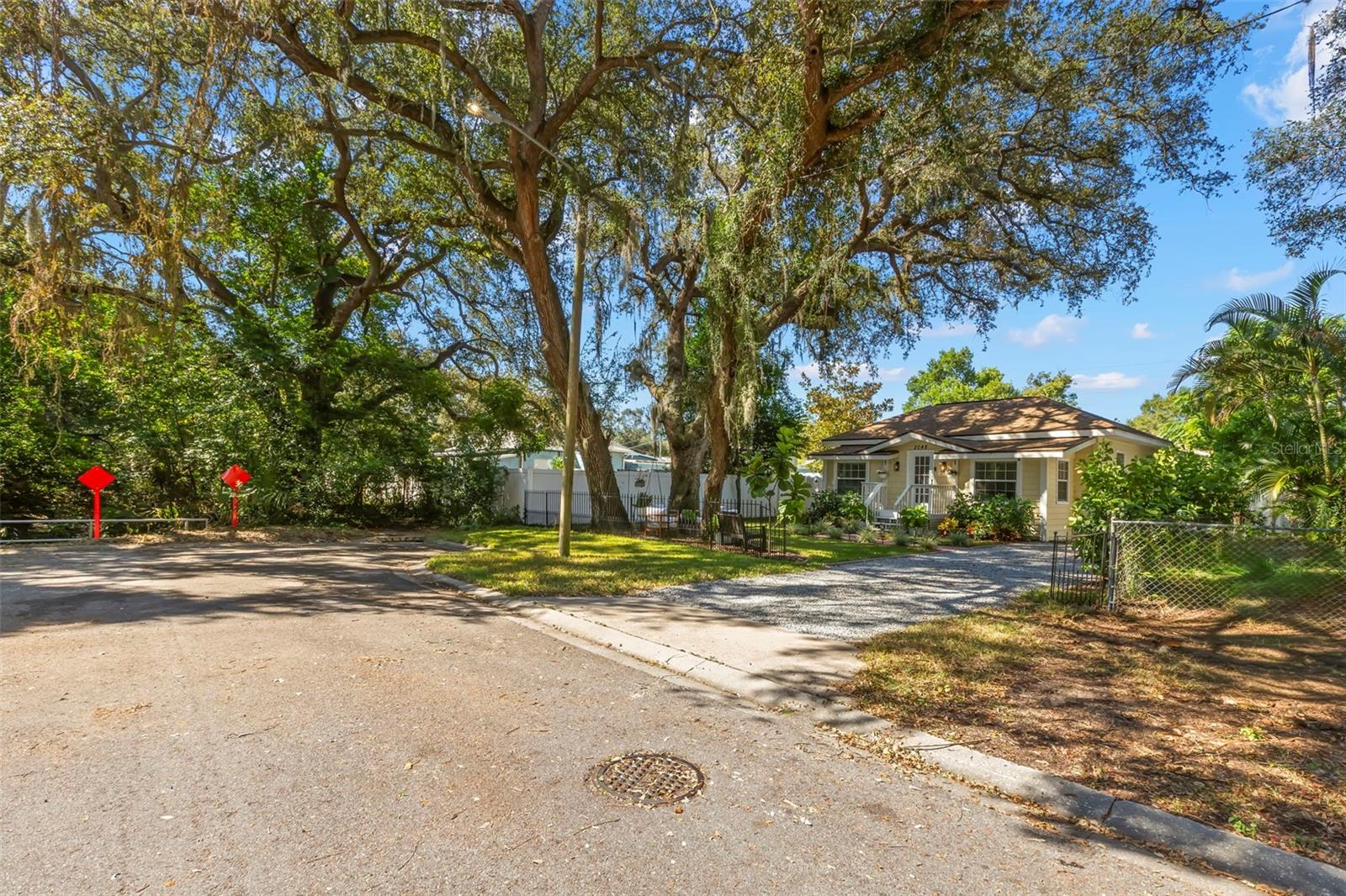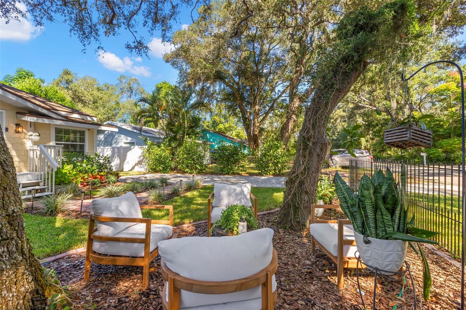 Under contract-accepting backup offers. NO HOA AND NON-FLOOD ZONE! HUGE STORAGE SHED INCLUDED! LOCATED ONE BLOCK FROM DUNEDIN and only 5 MINUTES TO VIBRANT DOWNTOWN DUNEDIN, this FULLY UPGRADED 3-bedroom / 2-bath 1930's BUNGALOW perfectly blends HISTORIC CHARM with modern comforts. Tucked quietly at the end of the street, this home’s curb appeal shines with a BRICK PAVERED WALKWAY accented by landscape lighting, and a spacious front yard with classic wrought-iron fence separating the front yard from the street. Mature shade trees with vines create a storybook setting with room for outdoor seating and even a tree swing. A welcoming front porch and decorative glass front door set the tone. Inside, an inviting OPEN FLOOR PLAN filled with warmth and character showcases gorgeous TEXTURED WIDE-PLANK LAMINATE WOOD FLOORING throughout the main living areas. Timeless WOOD-TRIMMED WINDOW CASINGS on all windows add character and window blinds are installed throughout. The UPGRADED EAT-IN KITCHEN features MULTI-LEVEL WOOD CABINETRY, STAINLESS STEEL APPLIANCES and a pantry. The primary bedroom suite includes a BUILT-IN CLOSET SYSTEM with drawers and shelves and a modern EN SUITE BATH with a tiled step-in shower. Two additional bedrooms share a beautifully updated full bath with DECORATIVE WAINSCOTING, a tub/shower combo, and linen storage. The 3rd bedroom stands out with CROWN MOLDING, WAINSCOTING and a COZY WINDOW BENCH making the perfect reading nook! EVERY CLOSET THROUGHOUT THE HOME HAS BEEN THOUGHTFULLY CUSTOMIZED WITH BUILT-IN SHELVING for maximum organization. The OVERSIZED INTERIOR LAUNDRY ROOM (WITH FULL-SIZE WASHER AND DRYER INCLUDED) offers extra space that can EASILY DOUBLE AS AN OFFICE/DEN, extra storage or additional closet. Step outside to a VINYL FENCED PRIVATE BACKYARD OASIS partially XERISCAPED with LUSH LANDSCAPING, BRICK PAVERED WALKWAYS, wooden benches, planters, and a huge detached storage shed with tall ceilings — perfect for bikes, tools, hobbies, or recreational gear. ADDITIONAL UPGRADES INCLUDE: NEW VINYL FENCE (2024), NEWER DOUBLE PANE WINDOWS, NEWER HVAC (2020), NEW TANKLESS WATER HEATER, NEW STAINLESS DISHWASHER & FRIDGE (2023), CUSTOM BUILT SHELVES IN GUEST BEDROOM CLOSETS, LINEN CLOSETS AND PANTRY, NEW SUBFLOOR IN PRIMARY SUITE, NEW TOILETS IN BATHROOMS, RESEALED TUB IN GUEST BATH, SIX-PANEL INTERIOR DOORS THROUGHOUT, RECESSED LIGHTING, WINDOW BLINDS THROUGHOUT, NEW PLUSH CARPETS IN BEDROOMS, NEWER WASHER & DRYER (2023), NEW TILE FLOOR IN LAUNDRY ROOM and ROOF ONLY 6 YEARS OLD (2019)! TRANSFERRABLE TERMITE BOND WITH TERMINIX INCLUDED! Enjoy the Florida lifestyle JUST A COUPLE MINUTES FROM THE PINELLAS TRAIL and the WATERFRONT EDGEWATER DRIVE for DOLPHIN WATCHING and BREATHTAKING SUNSETS! 5 MINUTES TO DOWNTOWN DUNEDIN to enjoy SHOPS, RESTAURANTS and EVENTS! 15 MINUTES TO THE BEAUTIFUL GULF BEACHES OF HONEYMOON ISLAND AND CLEARWATER BEACH! This home checks every box — location, charm, upgrades, and outdoor living — all wrapped in the heart of Dunedin’s coastal community. Welcome home!