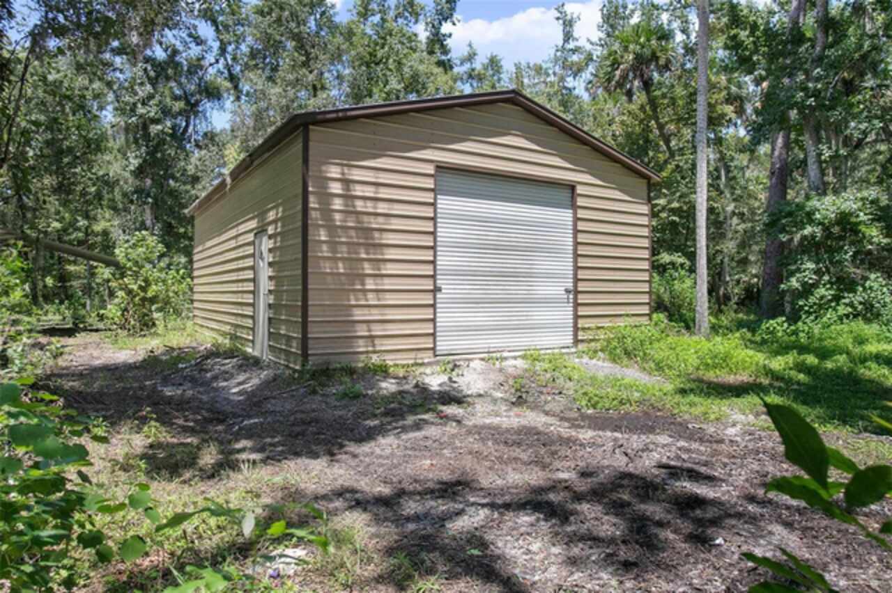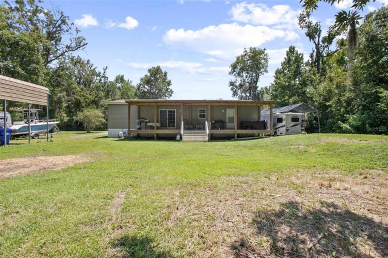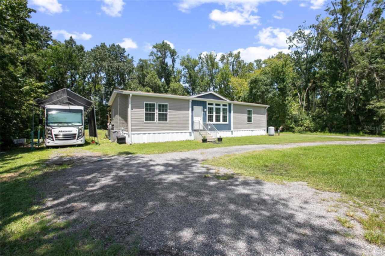 Discover the perfect blend of comfort and country charm in this private New Smyrna Beach retreat on 2.29 ACRES! This Jacobsen Homes model modular home, built in 2018 and first occupied in 2019, feels like new and offers a spacious layout designed for modern living. Inside, you’ll find a large open-concept living, family, and dining area, anchored by a chef’s kitchen with an oversized island and a walk-through pantry that’s as functional as it is impressive. The primary suite features a spa-style en-suite with a walk-in shower, ample storage, and plenty of space to unwind. Step outside to enjoy the expansive deck with a hot tub—the perfect spot for relaxation or entertaining. The property also includes a pole barn (25’x35’x12’) with RV parking, a workshop (24’x35’x11’), and an additional storage covering (22’x20’), offering endless room for hobbies, tools, and equipment. Two fenced paddocks make it ideal for animals or those seeking a mini-farm agricultural lifestyle—all while being just minutes from the best of New Smyrna Beach, intercostal waters with public boat ramp, and the East Central Regional Rail Trail for even more outdoor fun!