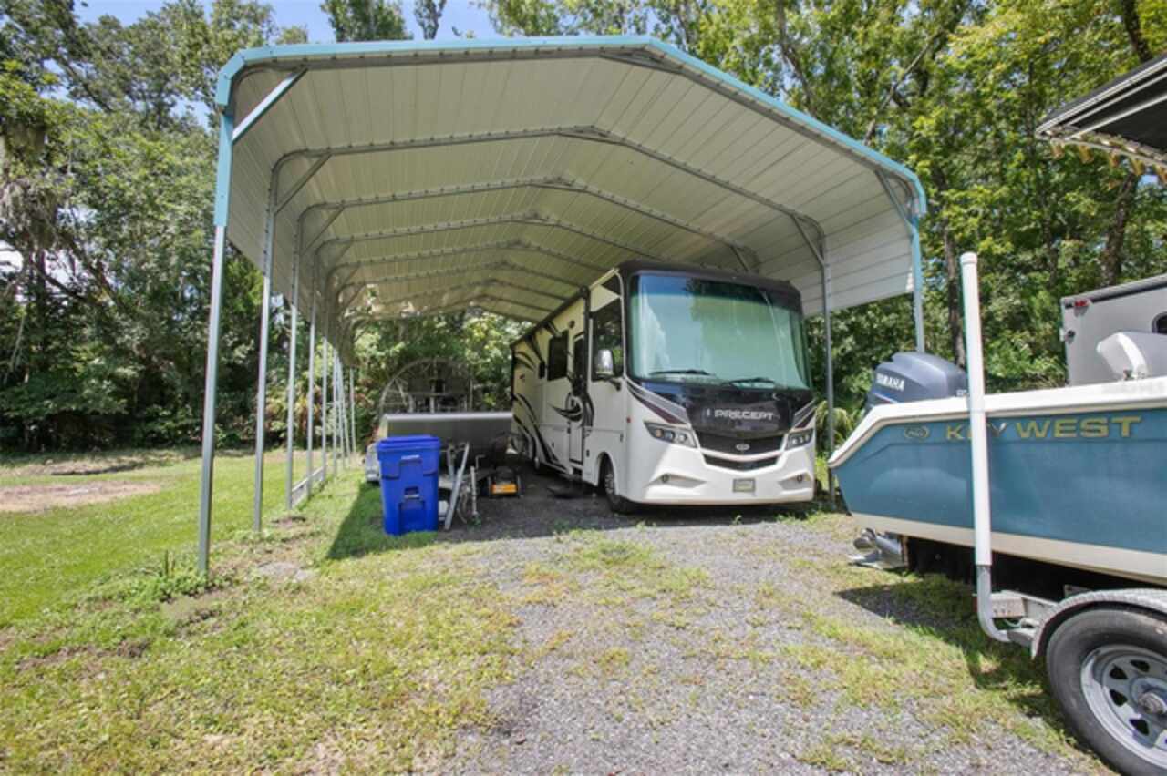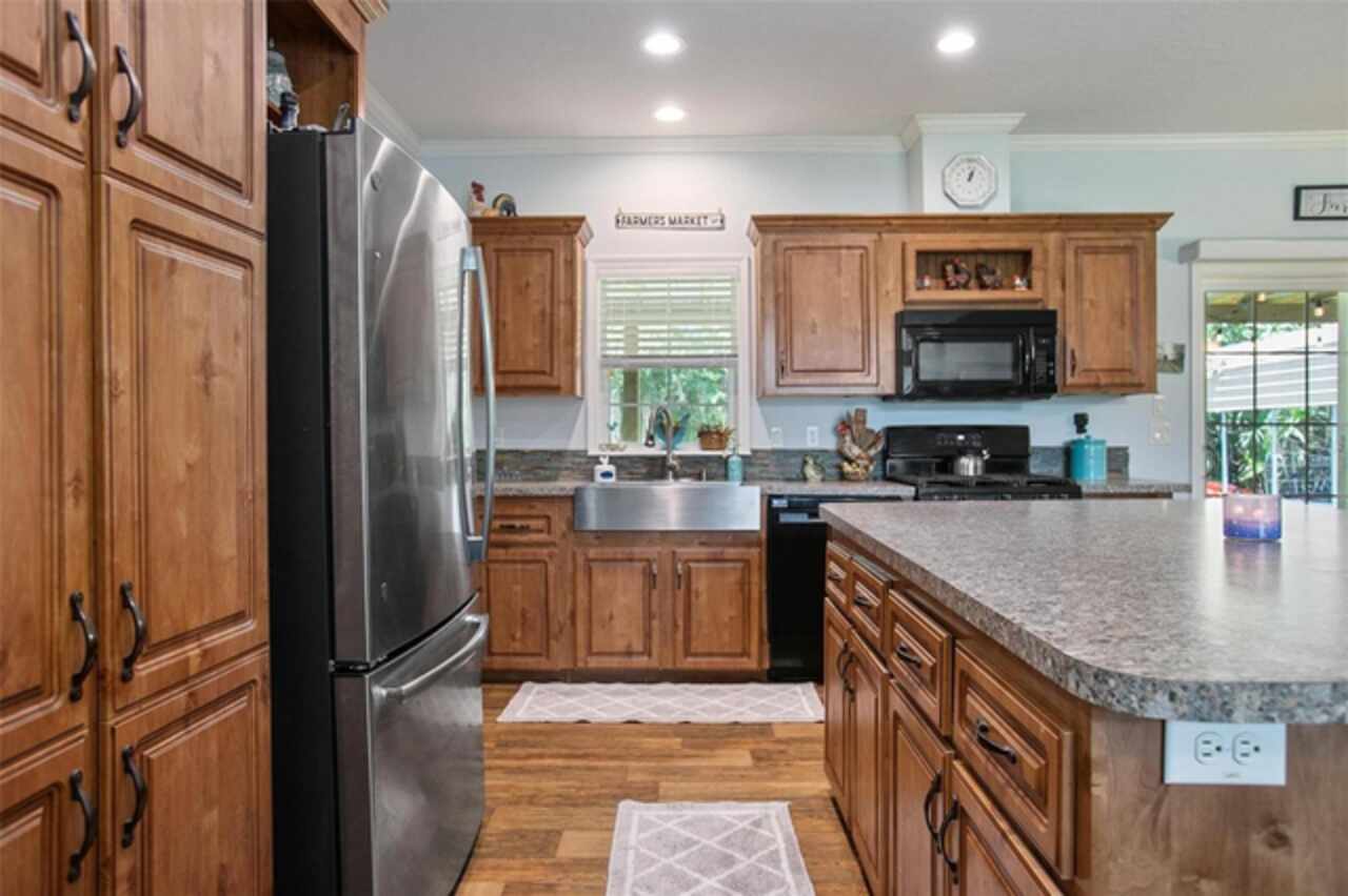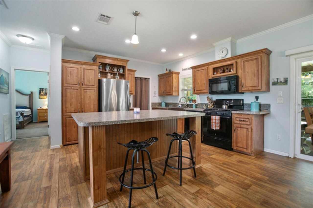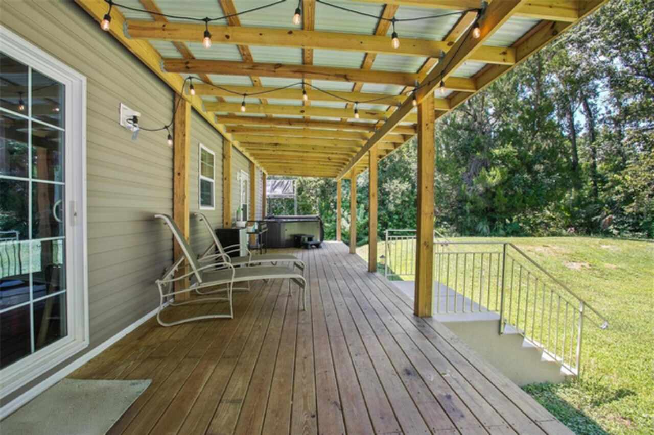Discover the perfect blend of comfort and country charm in this private New Smyrna Beach retreat on 2.29 ACRES! This Jacobsen Homes model modular home, built in 2018 and first occupied in 2019, feels like new and offers a spacious layout designed for modern living. Inside, you’ll find a large open-concept living, family, and dining area, anchored by a chef’s kitchen with an oversized island and a walk-through pantry that’s as functional as it is impressive. The primary suite features a spa-style en-suite with a walk-in shower, ample storage, and plenty of space to unwind. Step outside to enjoy the expansive deck with a hot tub—the perfect spot for relaxation or entertaining. The property also includes a pole barn (25’x35’x12’) with RV parking, a workshop (24’x35’x11’), and an additional storage covering (22’x20’), offering endless room for hobbies, tools, and equipment. Two fenced paddocks make it ideal for animals or those seeking a mini-farm agricultural lifestyle—all while being just minutes from the best of New Smyrna Beach, intercostal waters with public boat ramp, and the East Central Regional Rail Trail for even more outdoor fun!