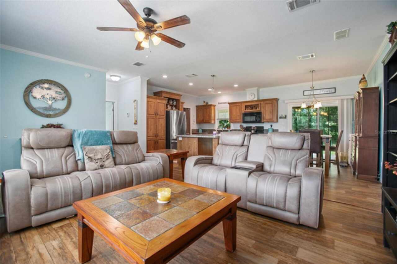 Ceiling Fans(s), Eat-in Kitchen, High Ceilings, Kitchen/Family Room Combo, Living Room/Dining Room Combo, Open Floorplan, Primary Bedroom Main Floor