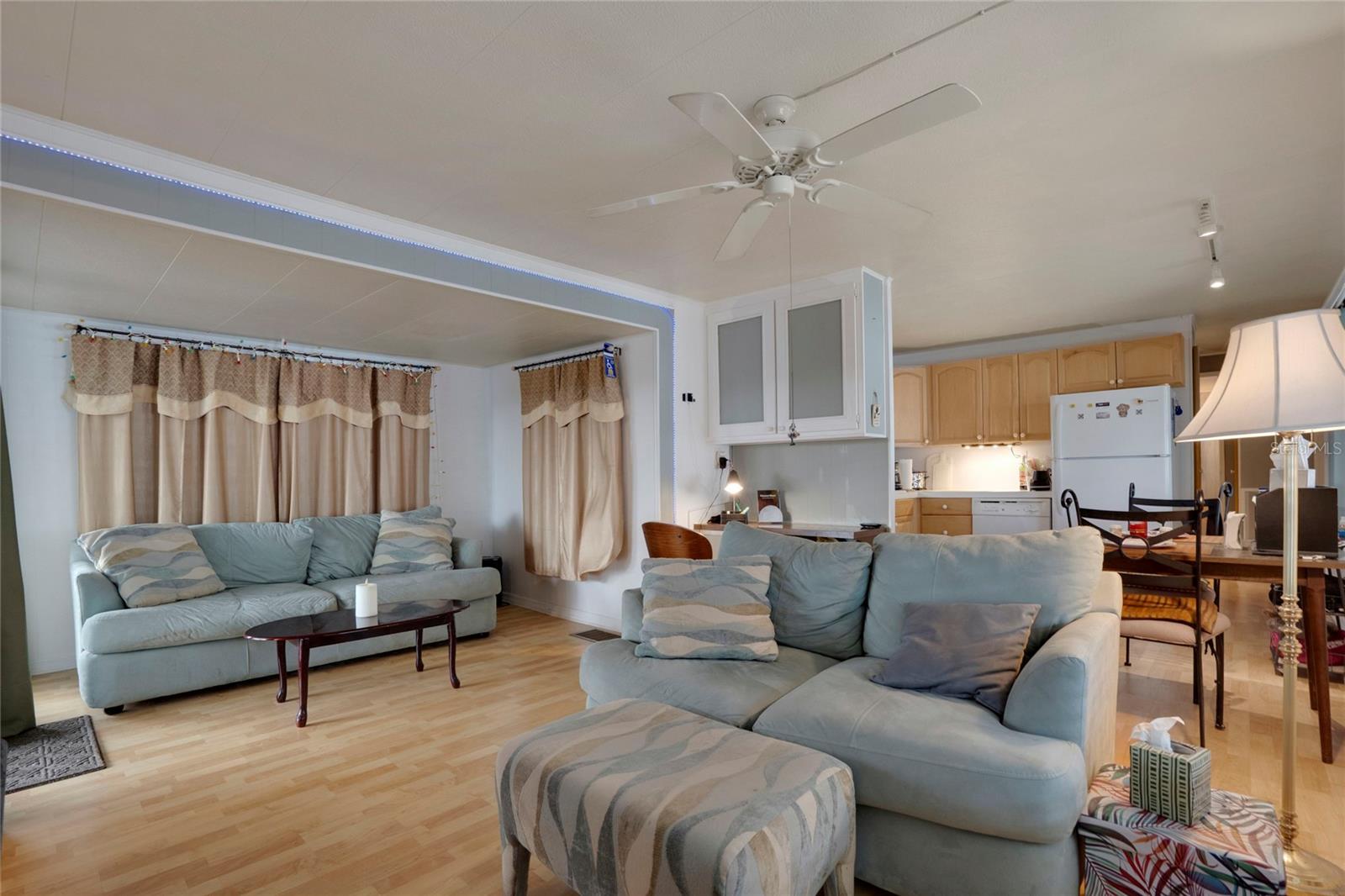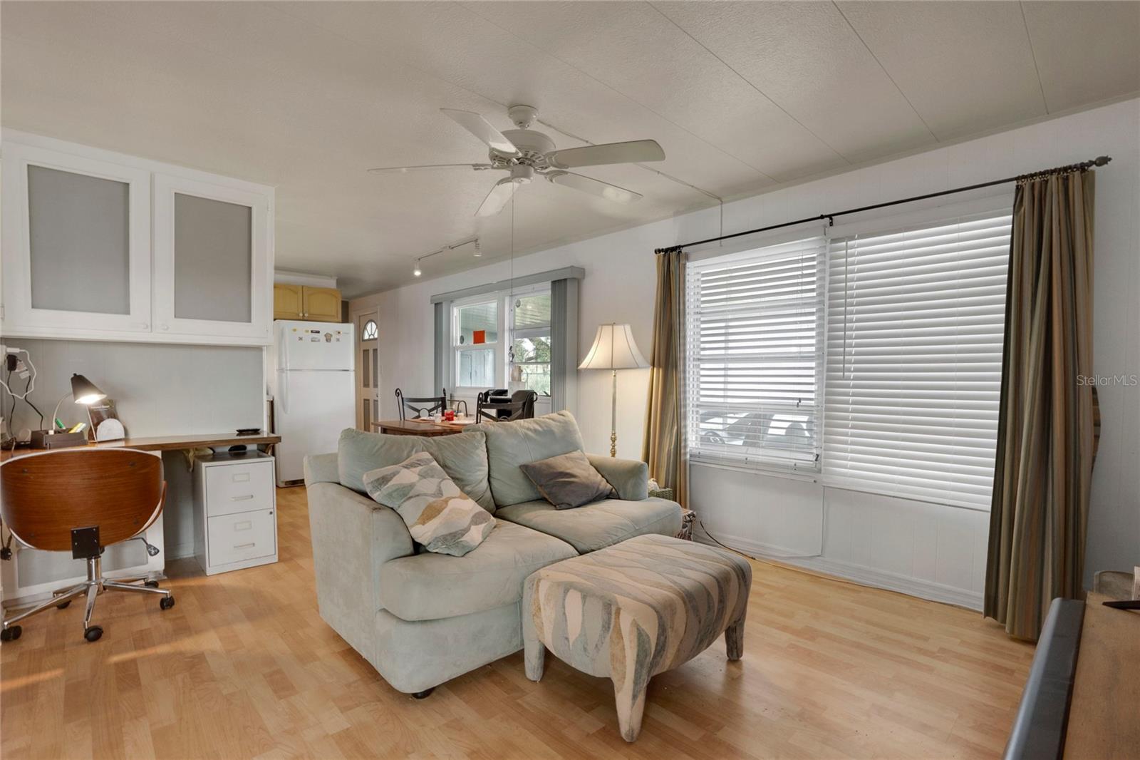 Built-in Features, Ceiling Fans(s), Eat-in Kitchen, Living Room/Dining Room Combo, Open Floorplan, Primary Bedroom Main Floor, Split Bedroom, Thermostat, Window Treatments