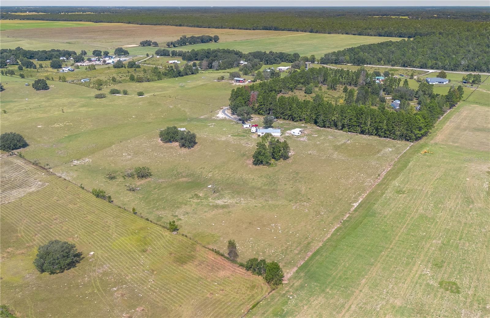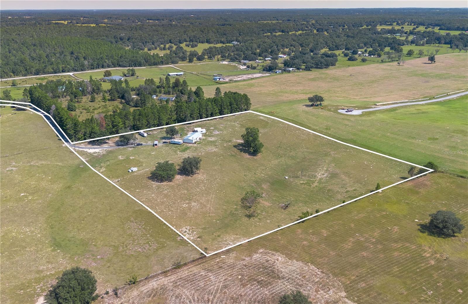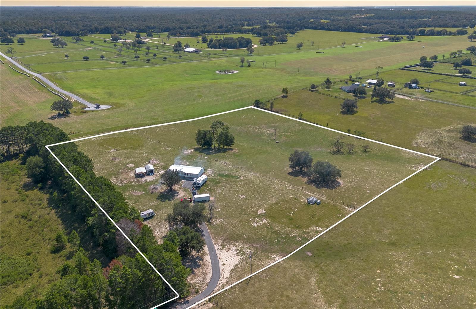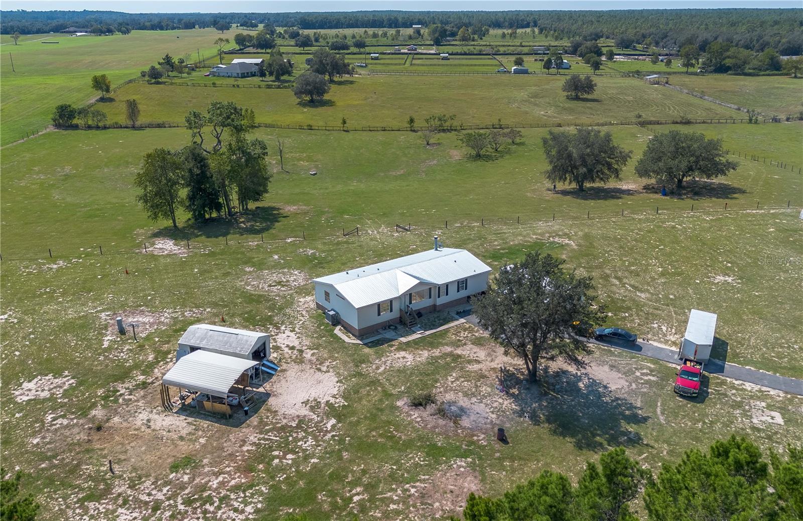 Welcome to a world of opportunity and this sprawling 10-acre hilltop property that offers 360-degree views and a fully fenced yard that is ready for horses. Features gently rolling terrain, perimeter fencing, and two outbuildings ideal for tack, feed, or equipment. Zoned A-1 with no HOA, giving flexibility to add barns, paddocks, or an arena. Just over 11 miles from the World Equestrian Center. The 3 bedroom, 2 bath home offers an open floor plan, fireplace, skylights, screened porch, and inside laundry. A private flag lot setting makes this an excellent equestrian retreat with plenty of room to create your dream farm.