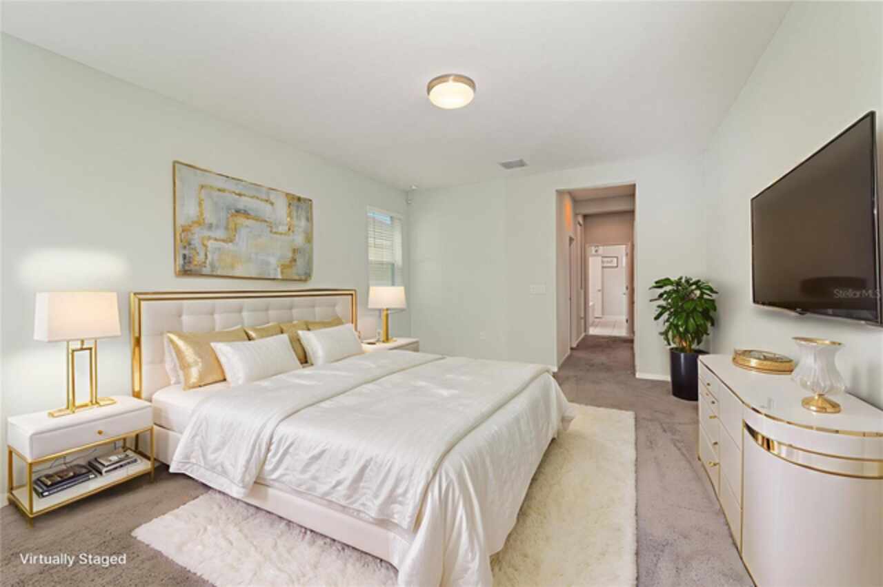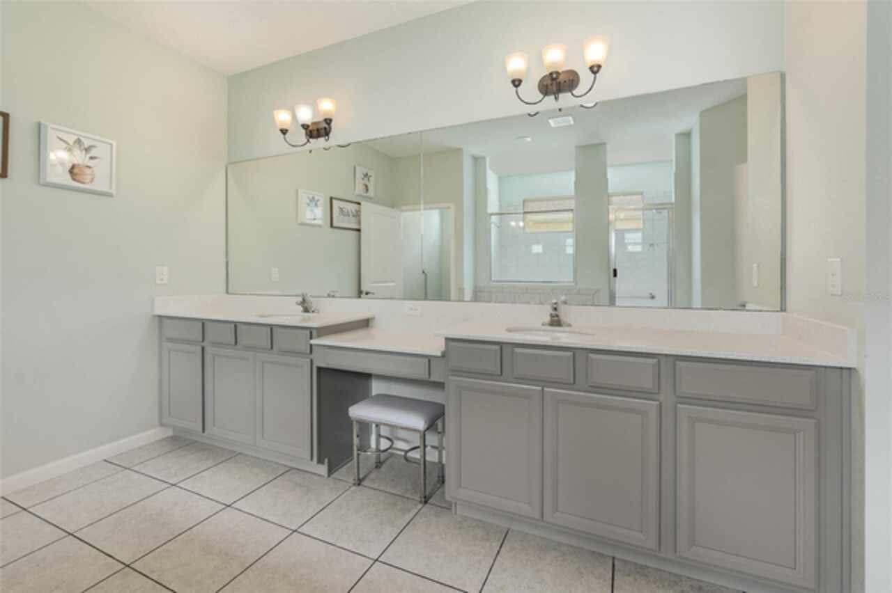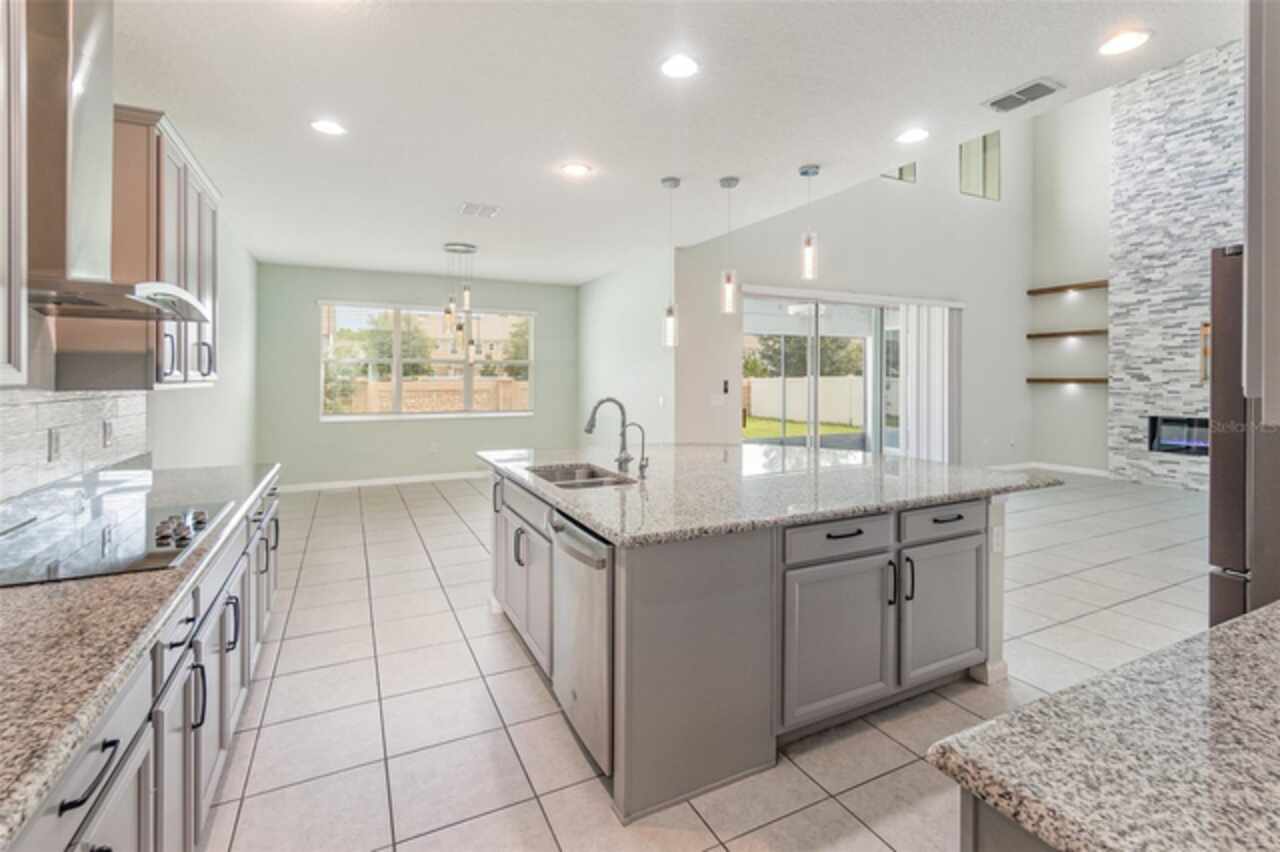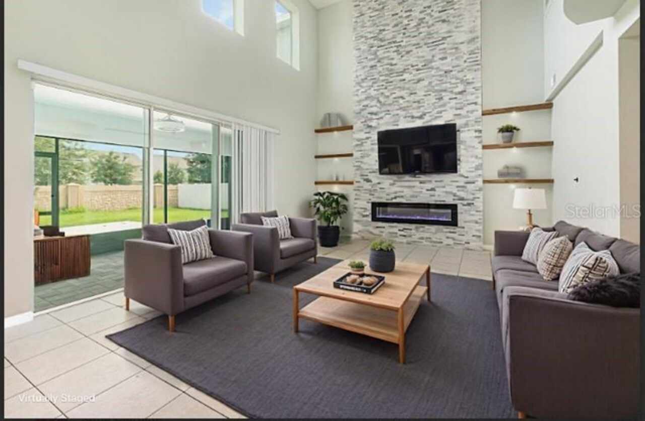 Welcome to Sawgrass Plantation Estates. Step into this stunning 5-bedroom, 3.5-bath turn-key estate home featuring soaring ceilings, elegant finishes, and a thoughtfully designed layout perfect for modern living. The main floor boasts a private office, formal dining room, and a spacious family room highlighted by a dramatic floor-to-ceiling stone fireplace. The gourmet kitchen is a chef’s dream with granite countertops, tile backsplash, double ovens, hooded range, walk-in pantry, and an oversized island with additional dining space. Retreat to the main-floor primary suite featuring French doors, two closets, and a spa-like bath with quartz double vanities, a garden tub, and a luxurious dual-head tiled shower. Upstairs, you'll find a versatile loft, three additional bedrooms, and a second primary suite with a private bath and walk-in closet—ideal for guests or multigenerational living. Additional highlights include a main-floor laundry room with built-ins and laundry chute, whole-house water softener, extended paver driveway, screened lanai, and an oversized backyard perfect for entertaining.Prime location in the desirable 32824 zip code—just 15 minutes to Orlando International Airport, 8 minutes to Lake Nona, and 22 minutes to Disney. Unmatched access to Orlando’s top destinations! Schedule your tour today! One or more photos are virtually stage.