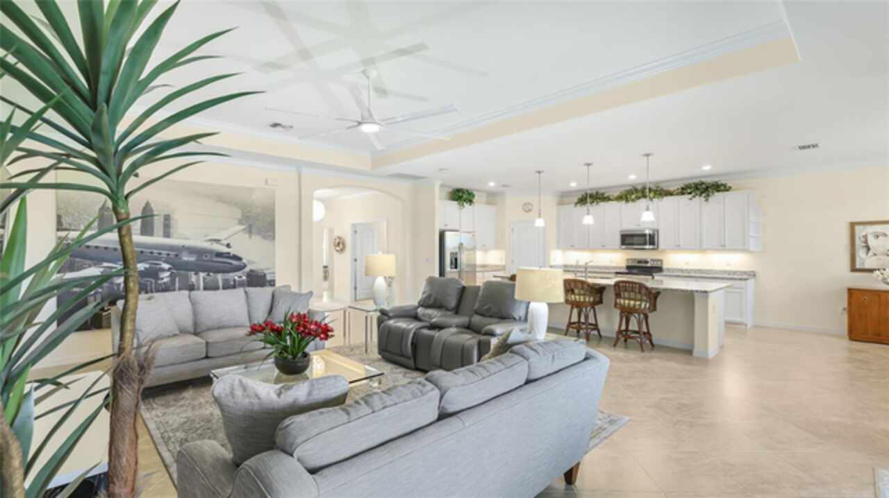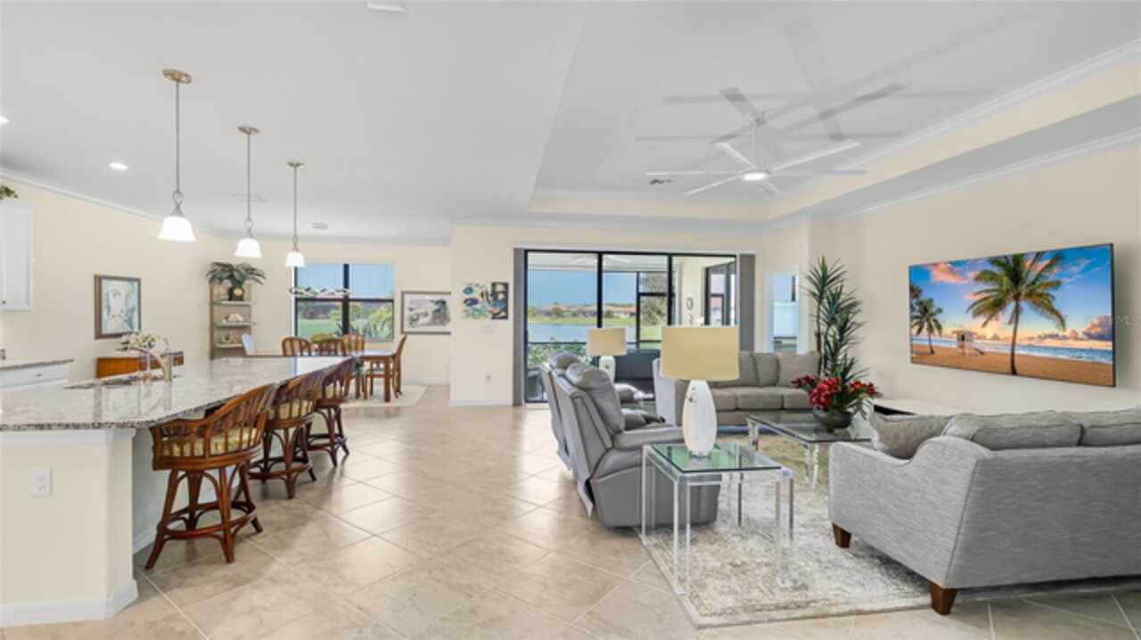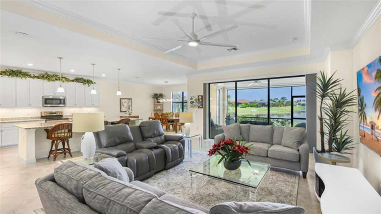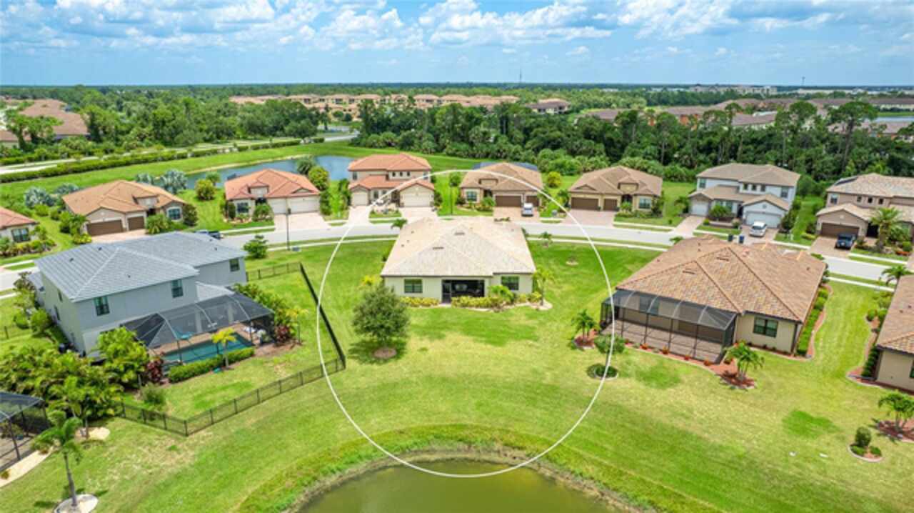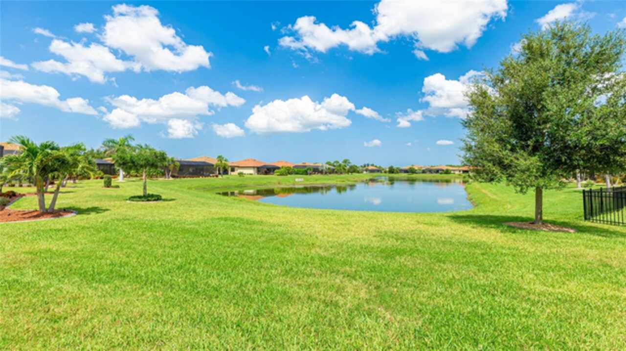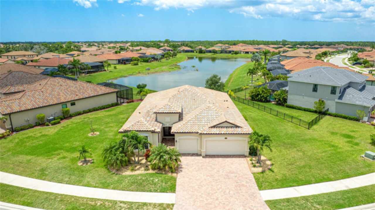 This is one of the most popular floorplans ever built in Gran Paradiso and this is the ONLY ONE currently on the market. The homesite is one of a kind and the location is ideal. Nestled in the distinguished gated community of Gran Paradiso within Wellen Park, Florida, this lovingly maintained Summerville floorplan home is a rare find, offering an expansive 1/3-acre lot—one of the largest in the community—at a highly competitive price. With living space spanning 2, 444 sq.ft., this meticulously designed residence features 3 bedrooms, 3 bathrooms, a versatile den, and a spacious 3-car garage, making it one of the most sought-after floorplans in Gran Paradiso, seldom available on the market. The kitchen is equipped with updated soft-close technology cabinets, under cabinet lighting, a unique Rev-a Lift Mixer Cabinet, and Shelf-Genie custom cabinet pull-out shelves. Soft-close cabinets were also installed in the master bath, plus custom closets all 3 bedrooms. Storm Smart hurricane shutters were installed with the lanai screen/shade on a remote. Shelf-Genie pull out shelves were added to the master bath. Other features include: garage storage shelve, custom book shelf and desk in den, pull down attic access in garage, Kinetico R/O drinking water system in kitchen, Kinetico whole home water softener, full gutters, and French drains The open-concept great room, accentuated by elegant tray ceilings, boasts a large kitchen island, ideal for entertaining and daily living, with an impressive double door entry welcoming you into a bright and airy interior. Tile flooring throughout living area adds sophistication and low-maintenance luxury. The luxurious master suite, also featuring tray ceilings, leads to a spa-like master bath with his and her walk-in closets, separate vanities, a large garden tub, and a spacious walk-in shower. The oversized lot offers a serene long pond view and ample space for a pool, a fenced pet area, or other outdoor amenities. Equipped with roll-down shutters on the lanai and easy-to-close storm shutters on every window, this home ensures peace of mind during storm season. Homeowners are in process of correcting flood zone to X, have land survey that shows elevation above flood zone, and are getting elevation certificate and submitting to FEMA to get the correction made. Residents of Gran Paradiso enjoy resort-style amenities, including a clubhouse, pool, fitness center, and tennis courts, all within the vibrant Wellen Park community, close to shopping, dining, top-rated schools, and Florida’s beautiful Gulf Coast beaches. Don’t miss this exceptional opportunity to own a Summerville masterpiece on an unparalleled lot at an unbeatable value—schedule your private tour today!
