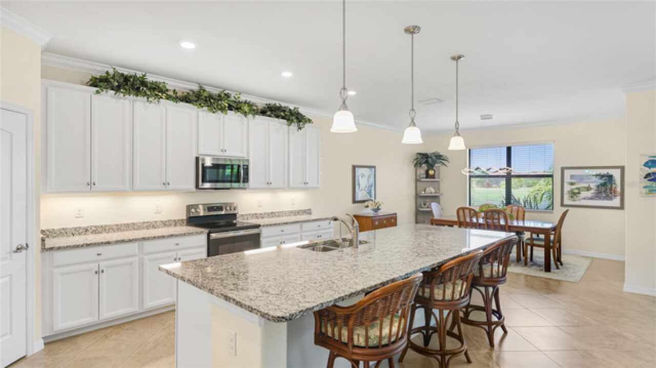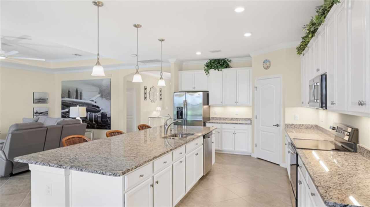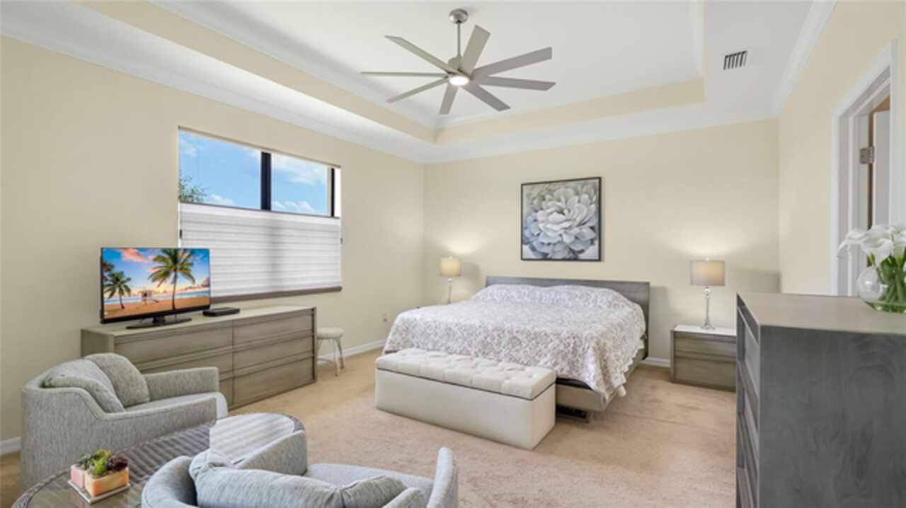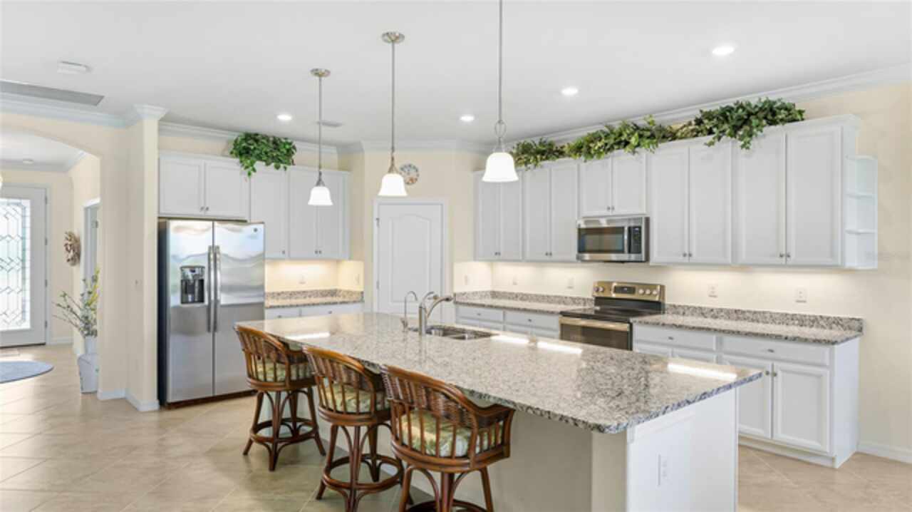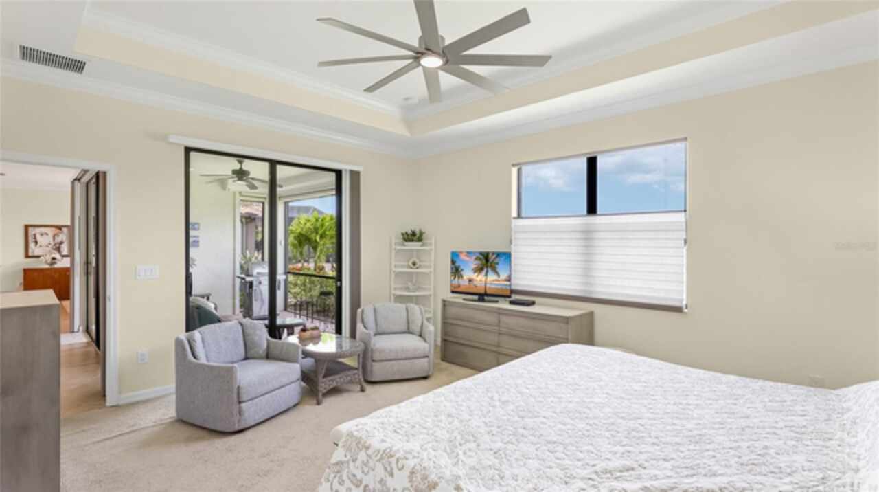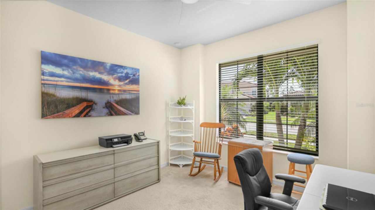 This is one of the most popular floorplans ever built in Gran Paradiso and this is the ONLY ONE currently on the market. The homesite is one of a kind and the location is ideal. Nestled in the distinguished gated community of Gran Paradiso within Wellen Park, Florida, this lovingly maintained Summerville floorplan home is a rare find, offering an expansive 1/3-acre lot—one of the largest in the community—at a highly competitive price. With living space spanning 2, 444 sq.ft., this meticulously designed residence features 3 bedrooms, 3 bathrooms, a versatile den, and a spacious 3-car garage, making it one of the most sought-after floorplans in Gran Paradiso, seldom available on the market. The kitchen is equipped with updated soft-close technology cabinets, under cabinet lighting, a unique Rev-a Lift Mixer Cabinet, and Shelf-Genie custom cabinet pull-out shelves. Soft-close cabinets were also installed in the master bath, plus custom closets all 3 bedrooms. Storm Smart hurricane shutters were installed with the lanai screen/shade on a remote. Shelf-Genie pull out shelves were added to the master bath. Other features include: garage storage shelve, custom book shelf and desk in den, pull down attic access in garage, Kinetico R/O drinking water system in kitchen, Kinetico whole home water softener, full gutters, and French drains The open-concept great room, accentuated by elegant tray ceilings, boasts a large kitchen island, ideal for entertaining and daily living, with an impressive double door entry welcoming you into a bright and airy interior. Tile flooring throughout living area adds sophistication and low-maintenance luxury. The luxurious master suite, also featuring tray ceilings, leads to a spa-like master bath with his and her walk-in closets, separate vanities, a large garden tub, and a spacious walk-in shower. The oversized lot offers a serene long pond view and ample space for a pool, a fenced pet area, or other outdoor amenities. Equipped with roll-down shutters on the lanai and easy-to-close storm shutters on every window, this home ensures peace of mind during storm season. Homeowners are in process of correcting flood zone to X, have land survey that shows elevation above flood zone, and are getting elevation certificate and submitting to FEMA to get the correction made. Residents of Gran Paradiso enjoy resort-style amenities, including a clubhouse, pool, fitness center, and tennis courts, all within the vibrant Wellen Park community, close to shopping, dining, top-rated schools, and Florida’s beautiful Gulf Coast beaches. Don’t miss this exceptional opportunity to own a Summerville masterpiece on an unparalleled lot at an unbeatable value—schedule your private tour today!