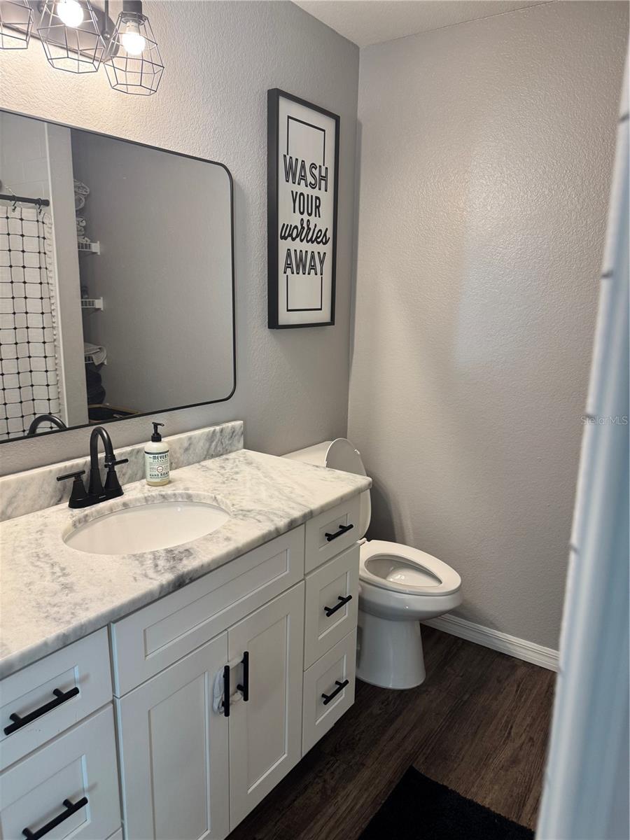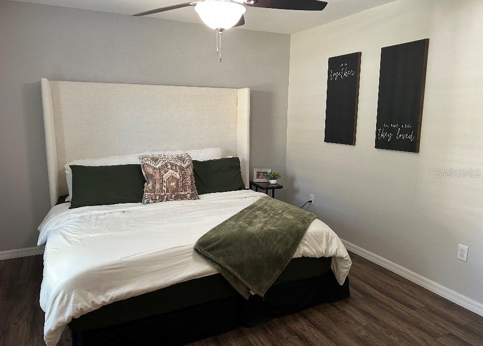 ASSUMABLE 2.875% rate. Adorable move in ready. 3 bedrooms, 2 bath, 1 car garage, concrete block home with Impact ~Low E windows and doors. Located in a NON flood zone centrally located between Peachland and Veterans Hwy on city water. Home offers covered front porch, a great room with cathedral ceilings, a functional kitchen with moveable island, Granite counters, all wood cabinetry with soft close shaker style cabinets, LVP vinyl floors throughout, a walk in closet in the master with pocket doors for the closet and the master bathroom. Master bathroom is Granite and has subway tiles in the shower. Barn door leads to the interior laundry room. The exterior is fenced in, and offers a concrete slab that runs the entire back of the house for patio space. There is a custom metal pan roof and wood beam structure over lanai that is also fenced.