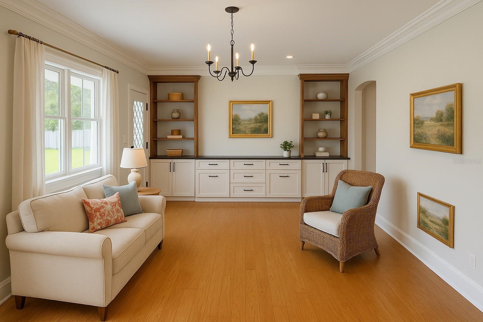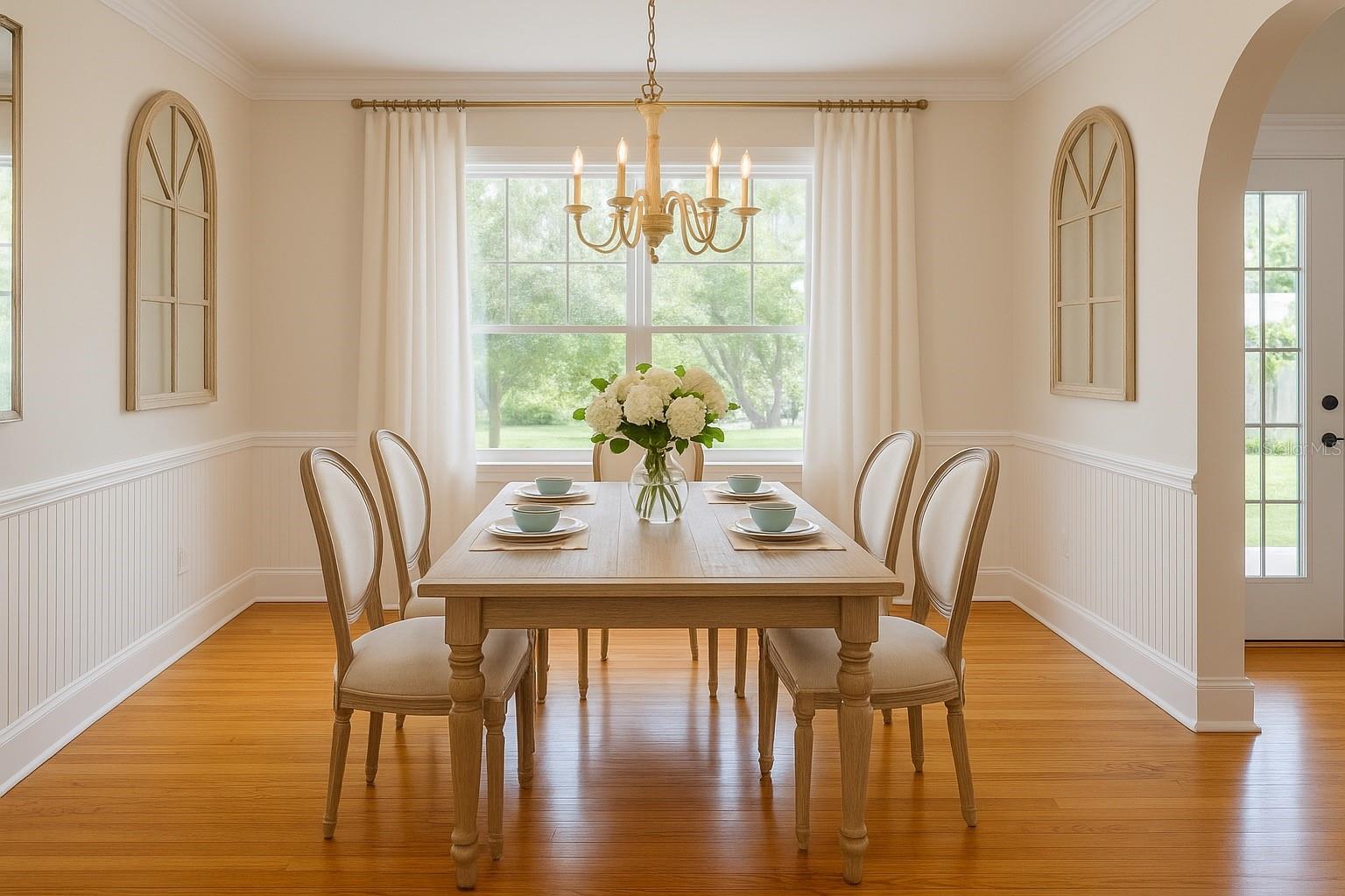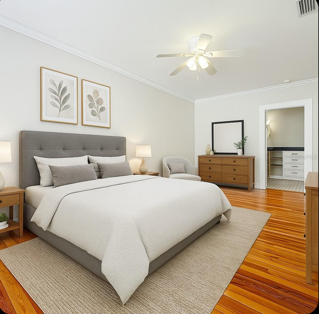 Built-in Features, Ceiling Fans(s), Chair Rail, Crown Molding, Solid Surface Counters, Thermostat, Walk-In Closet(s), Window Treatments