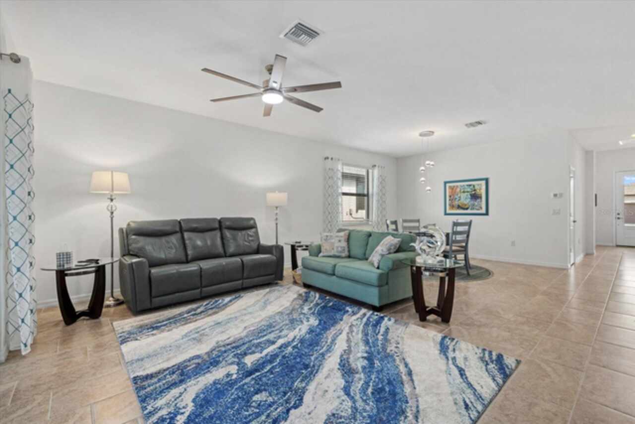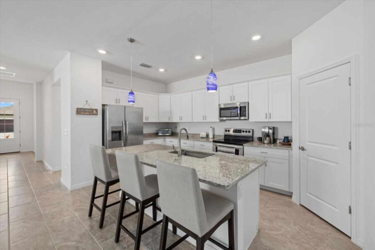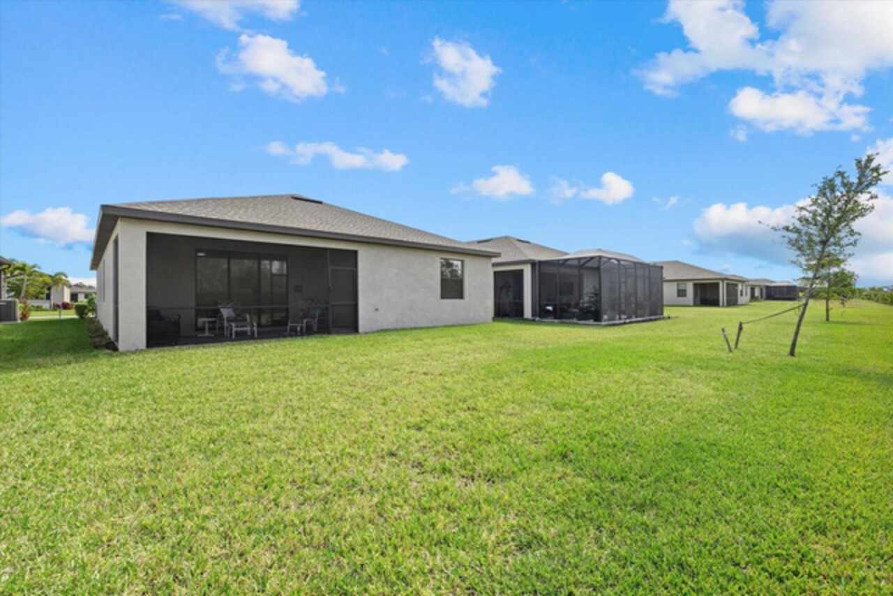 Welcome to this beautiful, nearly new 4-bedroom, 3-bathroom home in the highly desirable Biscayne Landing community in Port Charlotte, Florida. Spanning 2, 032 square feet, this home offers an open, spacious layout ideal for family living and entertaining. As well, the sellers are willing to negotiate all furnishings with the sale of the home. Enter through the 8' full glass door and enjoy the clear views of the home’s open floor plan and large sliding glass doors leading to the backyard. Inside, you'll find sleek tile floors throughout, creating a modern and elegant atmosphere - both durable and easy to clean. The bright kitchen features granite countertops, stainless steel appliances, and ample cabinet space for all your culinary essentials. The home also includes a washer and dryer for your convenience. Located on a private homesite that doesn’t back to other homes, you'll enjoy a serene retreat in your backyard. The screened-in lanai provides a perfect spot for relaxing or entertaining. At the front, an elegant stone accent adds to the home's curb appeal. Equipped with smart home technology, this home features a Ring doorbell, security features, a WiFi-programmable thermostat, and a WiFi-enabled garage door opener, offering ultimate convenience and peace of mind. The homeowners association takes care of lawn maintenance, internet, and cable, giving you a stress-free lifestyle. You'll also have access to fantastic community amenities, including a fitness center, heated pool, two pickleball courts, and a covered gathering area for events – all easily accessible by sidewalks throughout the community. Just over two years old, this home is virtually brand new with minimal wear and tear, as the current owners are seasonal. It’s conveniently located near Charlotte Sports Park, North Port, and everything Port Charlotte has to offer. Don’t miss the chance to live in one of the area's most sought-after neighborhoods! Put this on your list of must-see's!!!