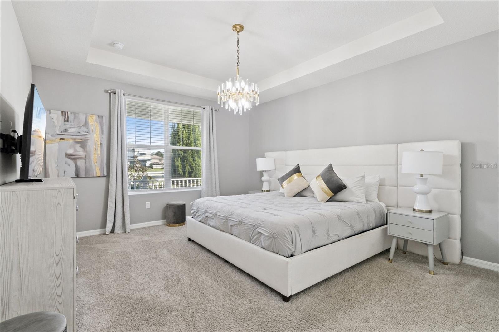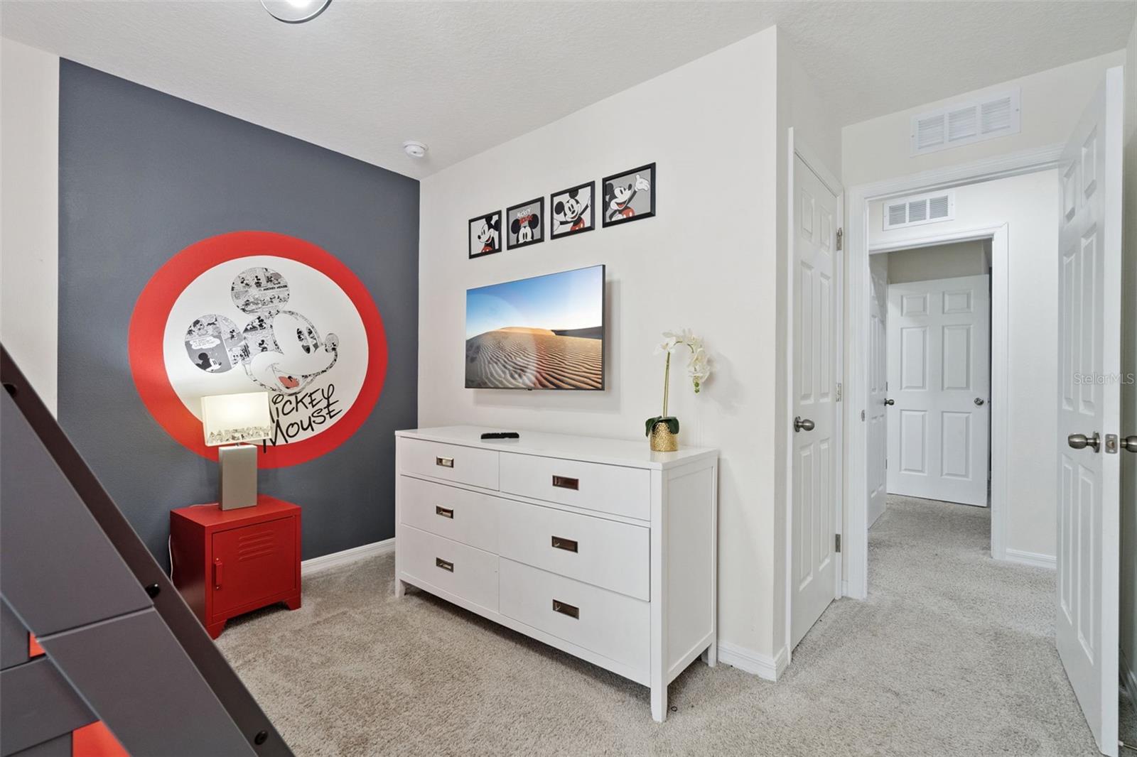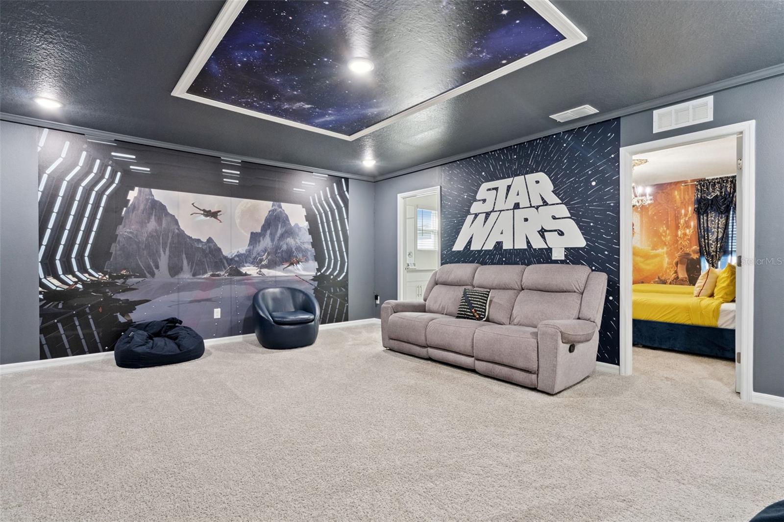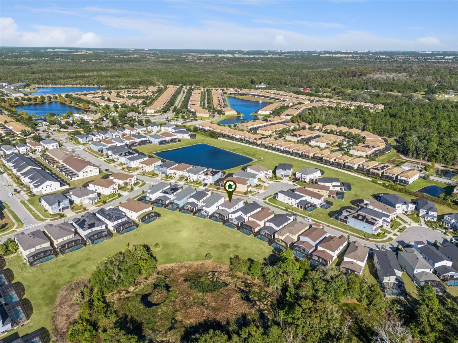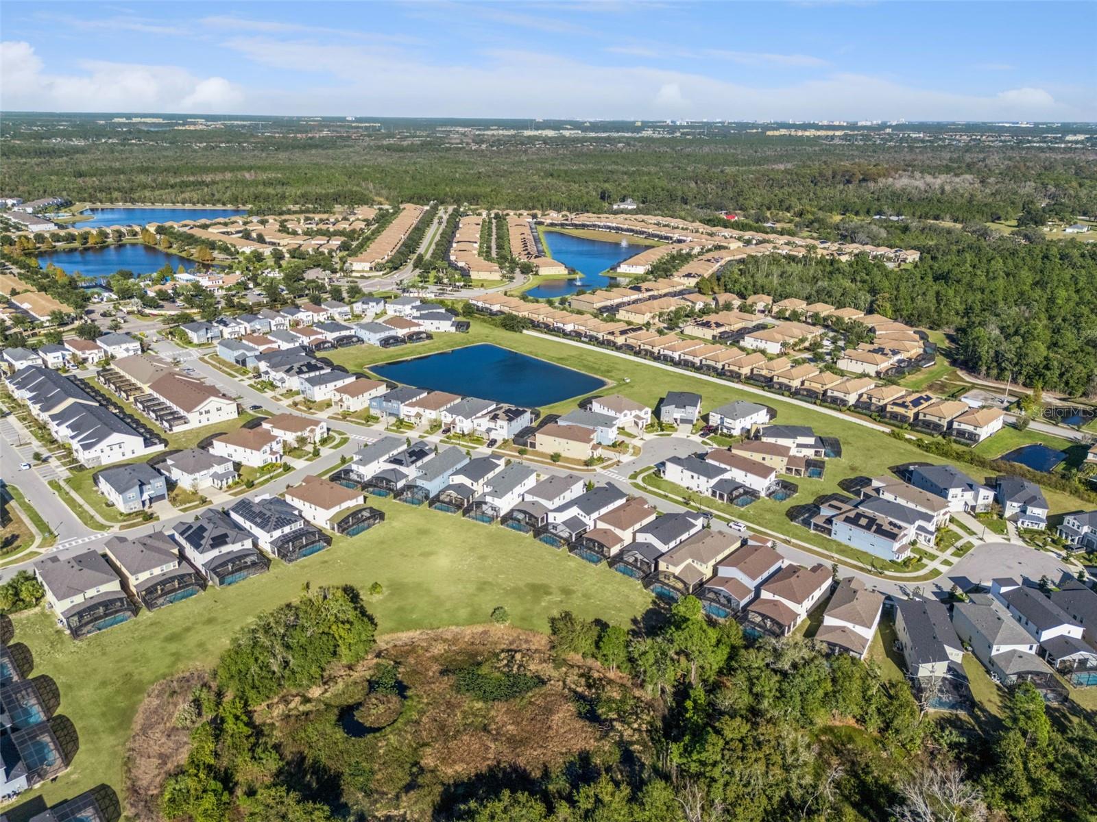Stunning upgrades & a private pool await in this fully furnished 6-bedroom home in the amenity-rich Solara Resort community. Host up to 13 guests! Step inside from the welcoming front porch to find an open main level with tile floors, high ceilings, modern fixtures and lots of natural light. The timeless kitchen features granite countertops, stainless appliances, a pantry and a massive island with seating for a crowd. The kitchen overlooks both the dining area (table for 8!) and the stylish living room. Just steps away, the spacious lanai offers even more dining, entertaining and lounging space. After a long day at Disney, you can relax in your screened-in pool & elevated spa. Plus, you enjoy extra privacy here, as the property has no back neighbors and conservation views! Back inside, the main level includes the primary bedroom with a spa-like ensuite, as well as an additional guest suite. Head upstairs to find a large loft with another TV and lots of room for family games. You must see each themed room in person (wow!), and don’t forget about the bonus rec room in the converted garage. Located less than 15 mins from Disney and all the other theme parks, Solara Resort is a gated community that lives up to its name, with amazing community amenities like multiple pools (one with beach entry), a surfing simulator, splash pad, sports fields (soccer, volleyball, basketball), playgrounds, walking trails, a fitness center, clubhouse, an on-site restaurant & sundry shop and more. This home makes an ideal short-term rental investment or personal vacation getaway; this property is ready to impress! Come take a tour.