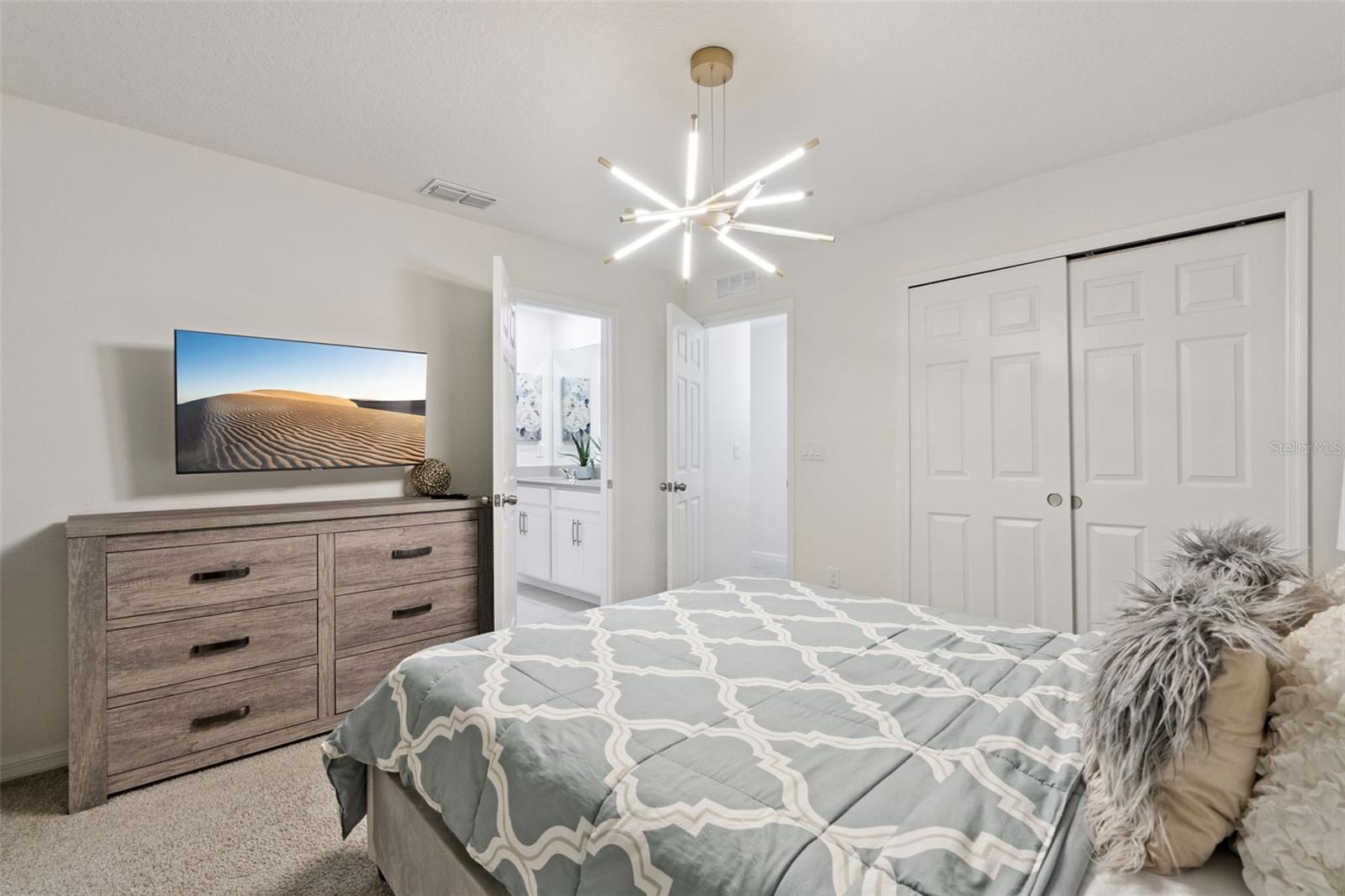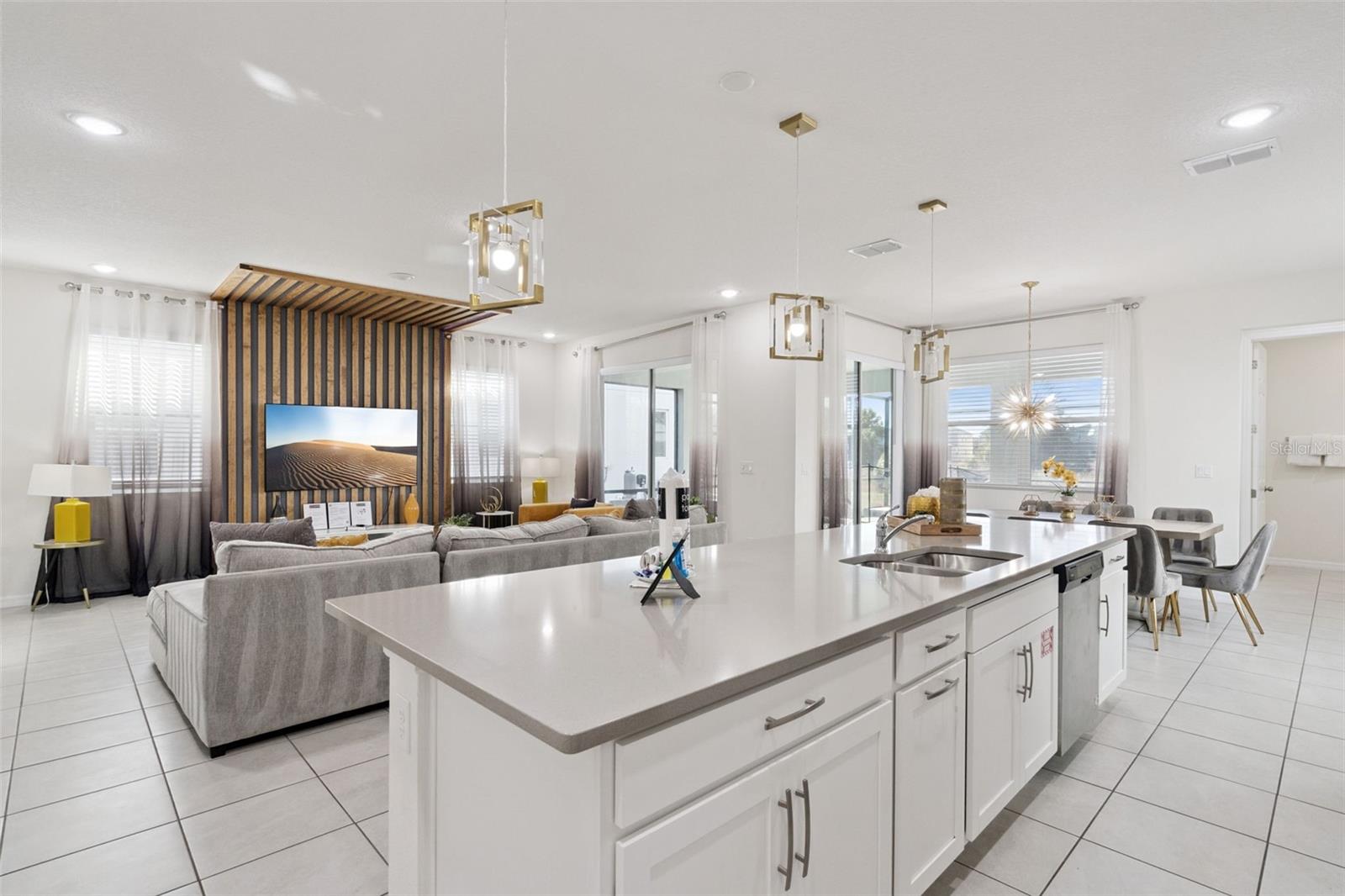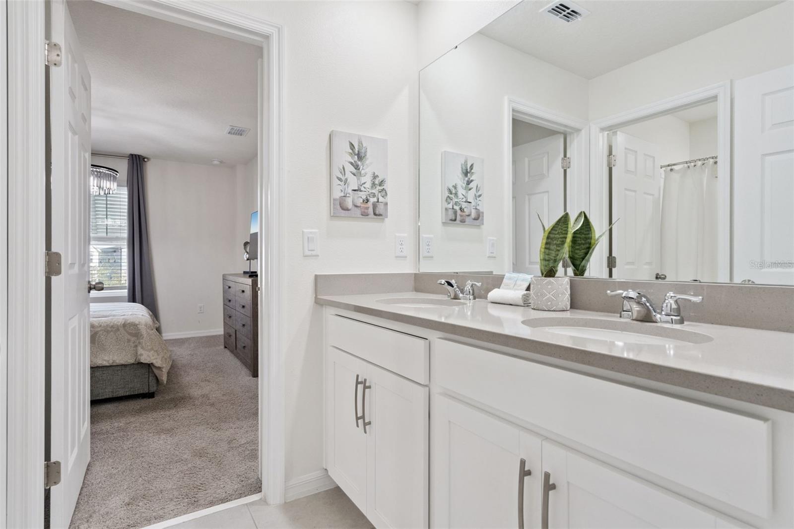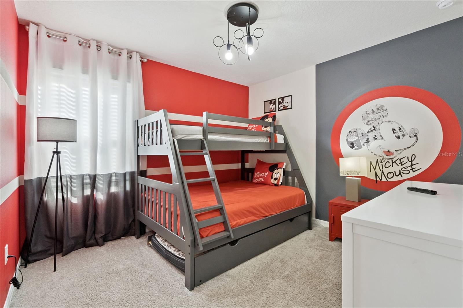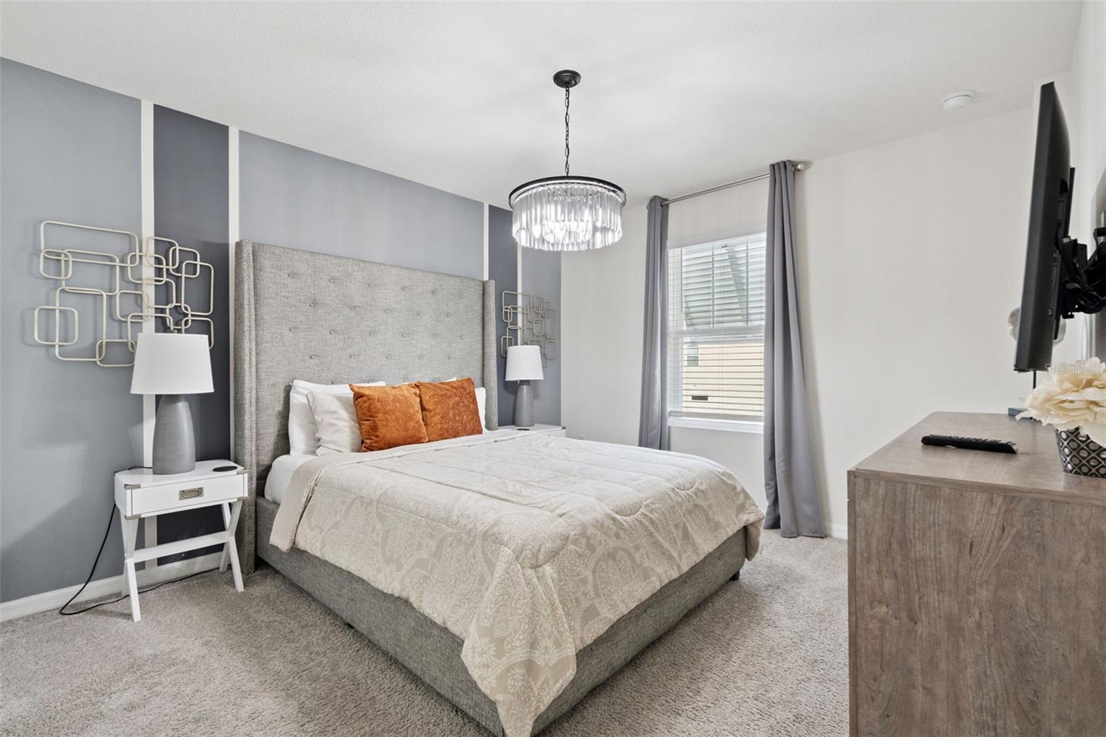 Stunning upgrades & a private pool await in this fully furnished 6-bedroom home in the amenity-rich Solara Resort community. Host up to 13 guests! Step inside from the welcoming front porch to find an open main level with tile floors, high ceilings, modern fixtures and lots of natural light. The timeless kitchen features granite countertops, stainless appliances, a pantry and a massive island with seating for a crowd. The kitchen overlooks both the dining area (table for 8!) and the stylish living room. Just steps away, the spacious lanai offers even more dining, entertaining and lounging space. After a long day at Disney, you can relax in your screened-in pool & elevated spa. Plus, you enjoy extra privacy here, as the property has no back neighbors and conservation views! Back inside, the main level includes the primary bedroom with a spa-like ensuite, as well as an additional guest suite. Head upstairs to find a large loft with another TV and lots of room for family games. You must see each themed room in person (wow!), and don’t forget about the bonus rec room in the converted garage. Located less than 15 mins from Disney and all the other theme parks, Solara Resort is a gated community that lives up to its name, with amazing community amenities like multiple pools (one with beach entry), a surfing simulator, splash pad, sports fields (soccer, volleyball, basketball), playgrounds, walking trails, a fitness center, clubhouse, an on-site restaurant & sundry shop and more. This home makes an ideal short-term rental investment or personal vacation getaway; this property is ready to impress! Come take a tour.